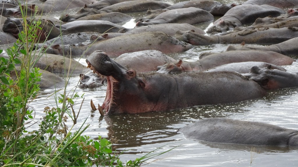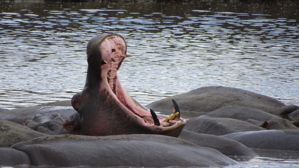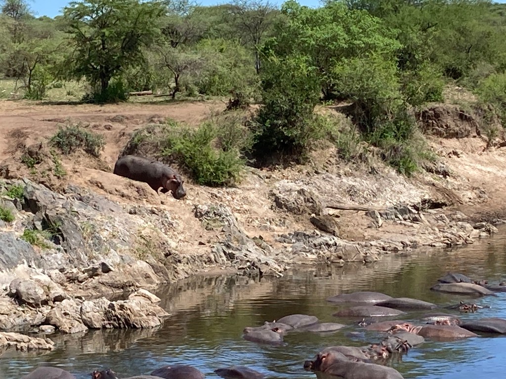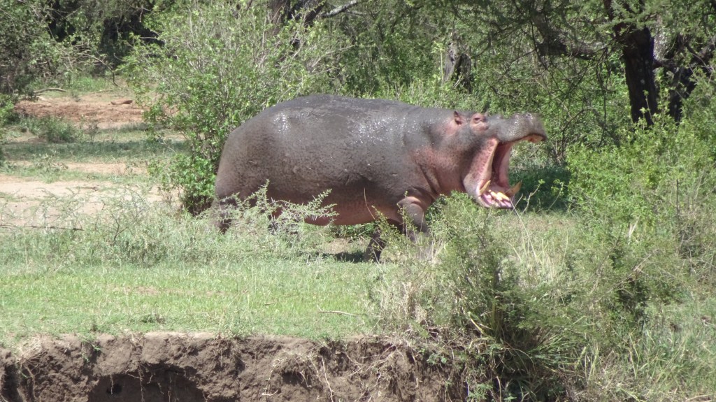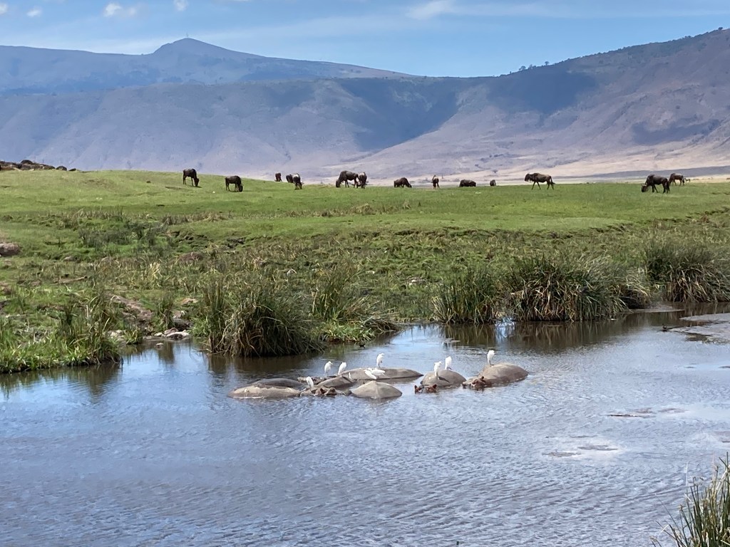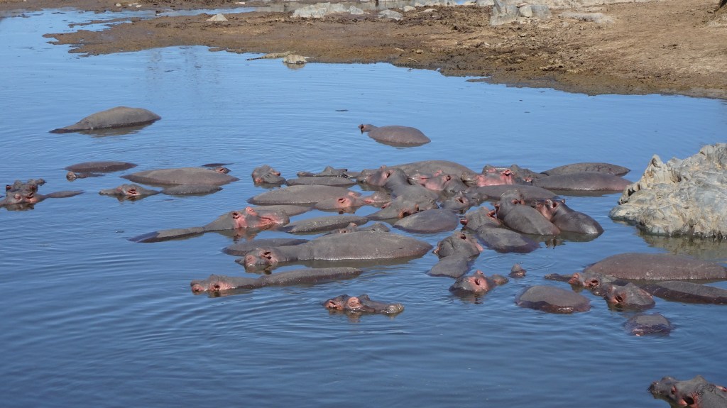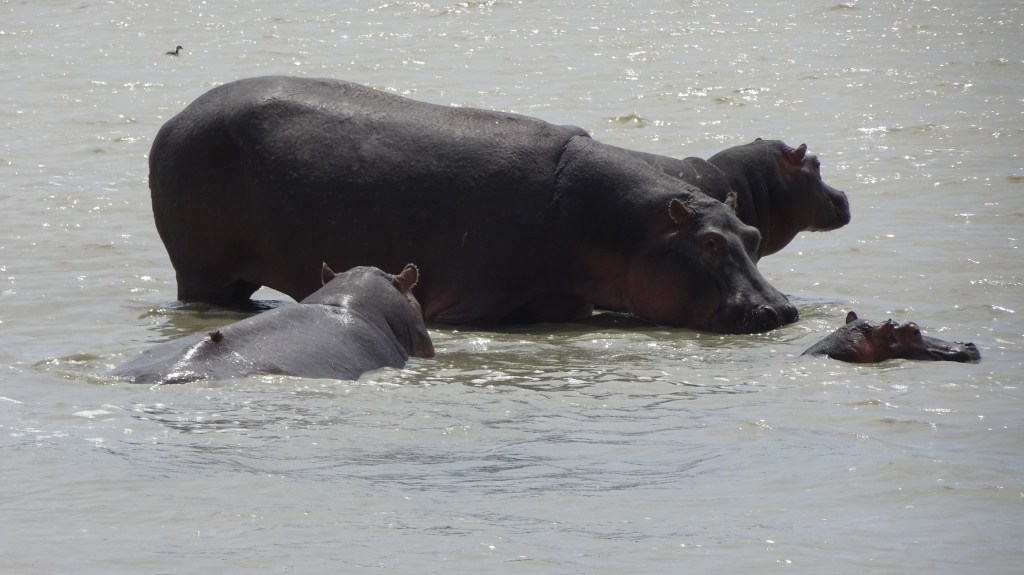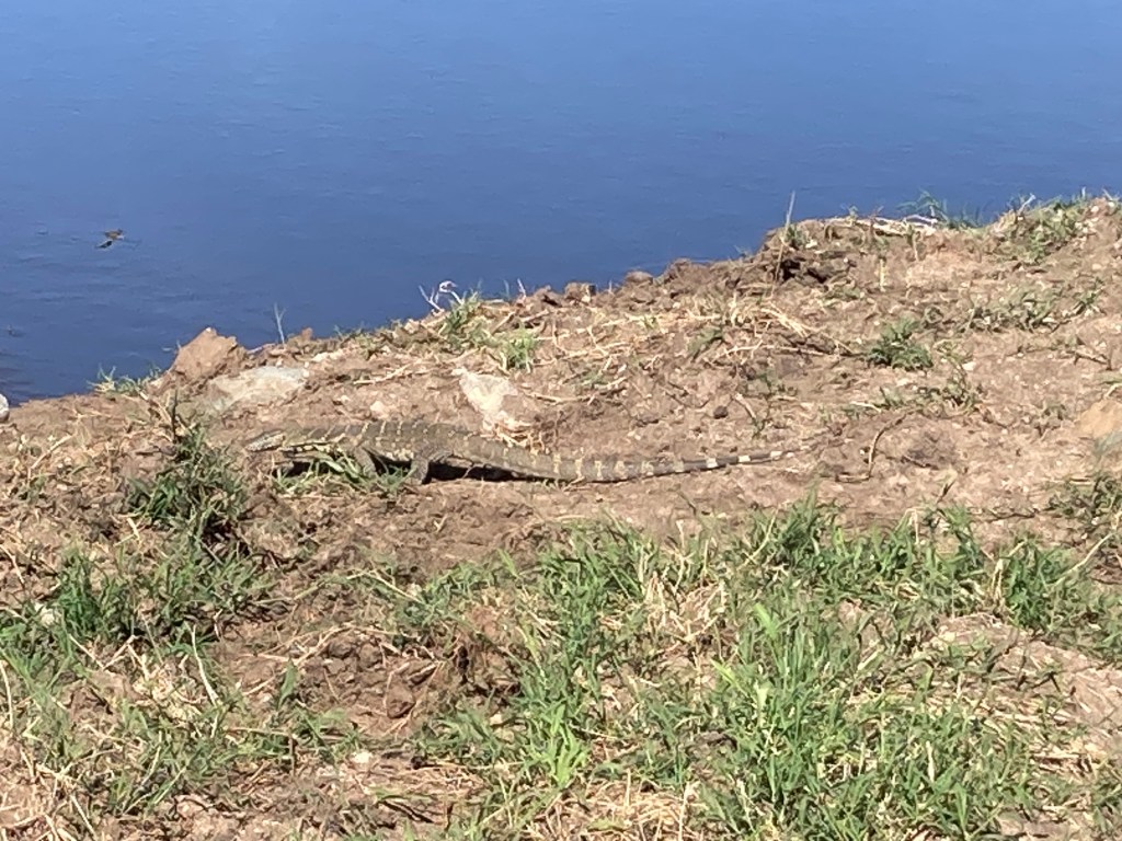 Nous finissons la matinée au bord d’un étang avec des hippopotames et des crocodiles.