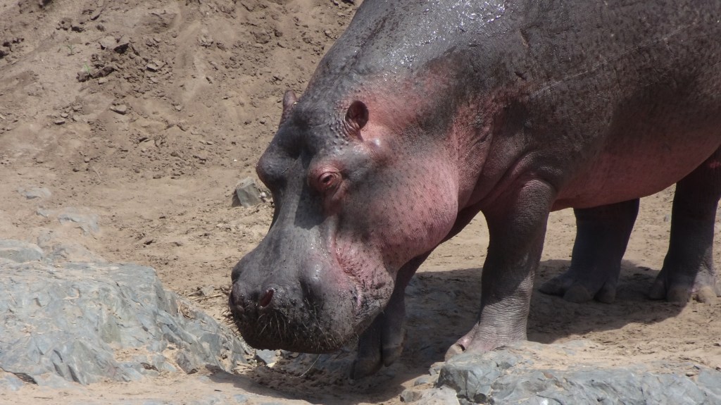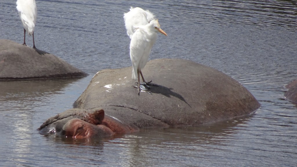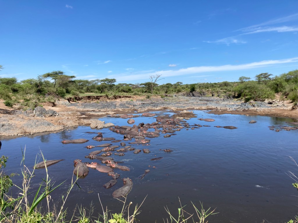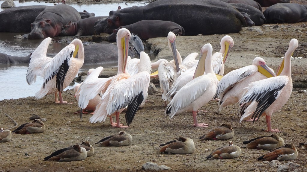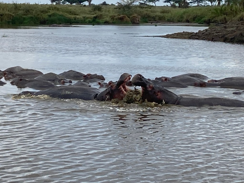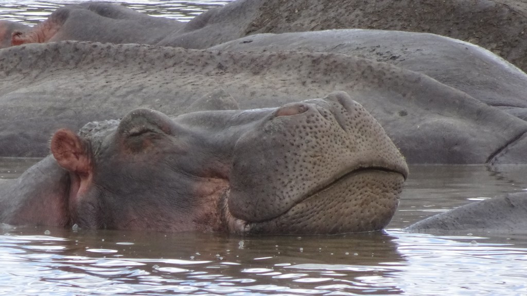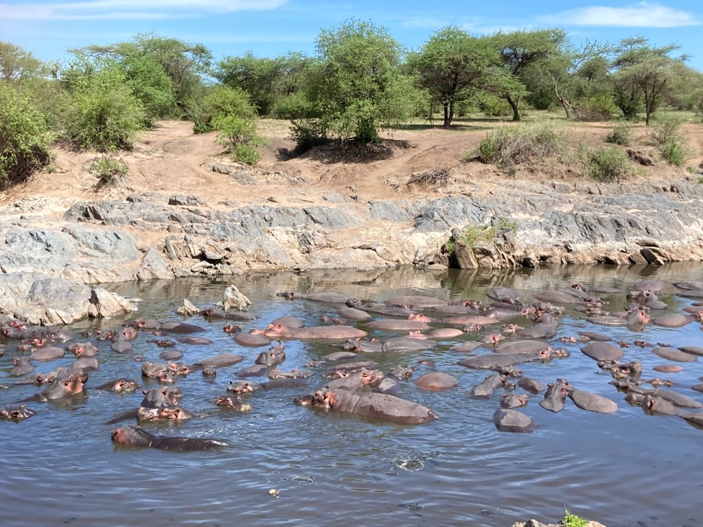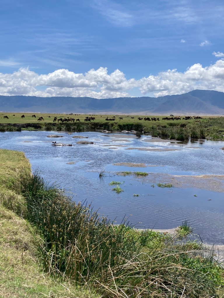 Nous finissons la matinée au bord d’un étang avec des hippopotames et des crocodiles.