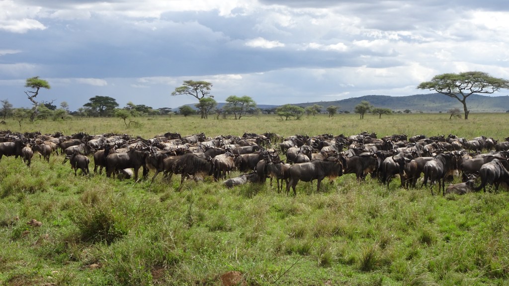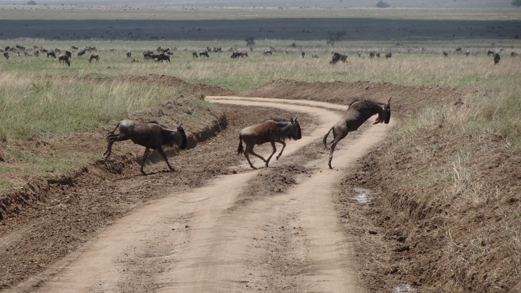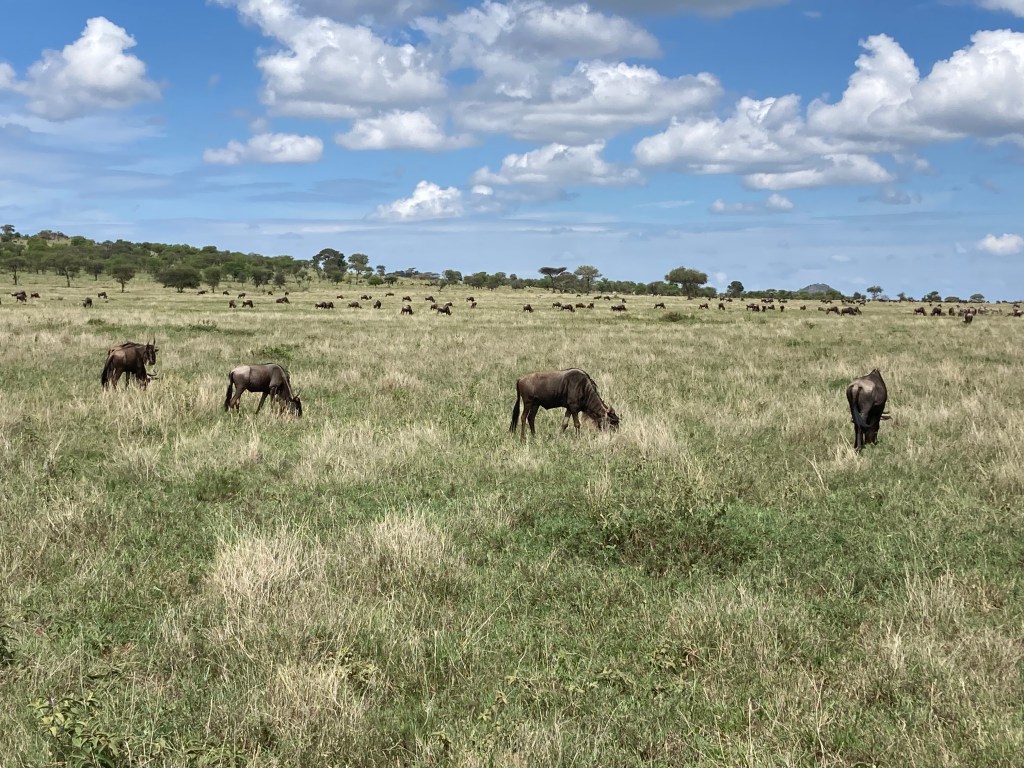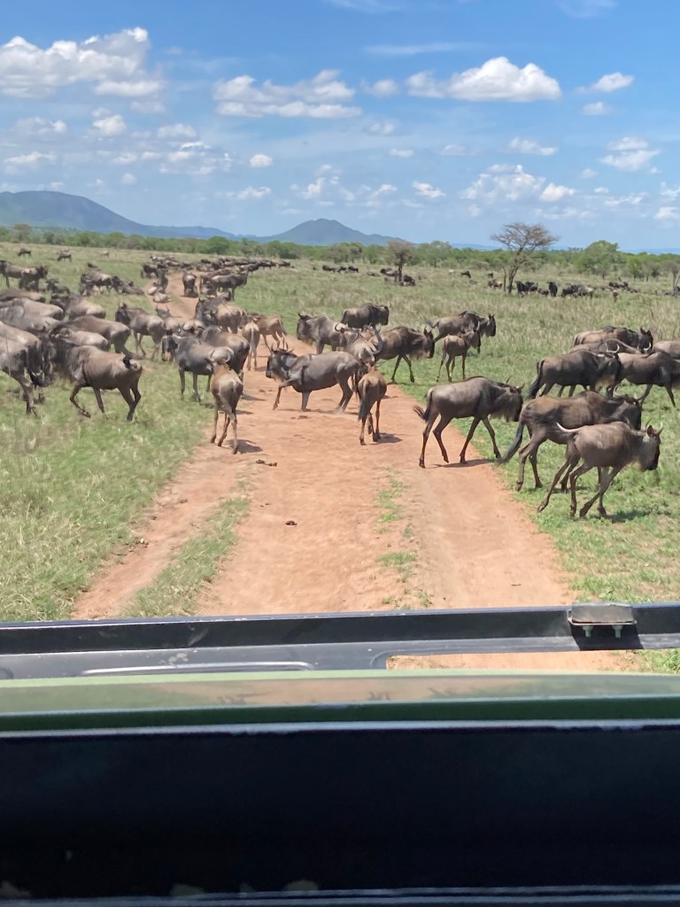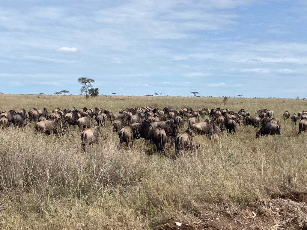 En ce moment, c’est la période de migration. Tous les gnous et les zèbres ont quitté le Kenya pour suivre les pluies qui arrivent maintenant en Tanzanie. On croise donc régulièrement des hordes de gnous et de zèbres, c’est impressionnant !