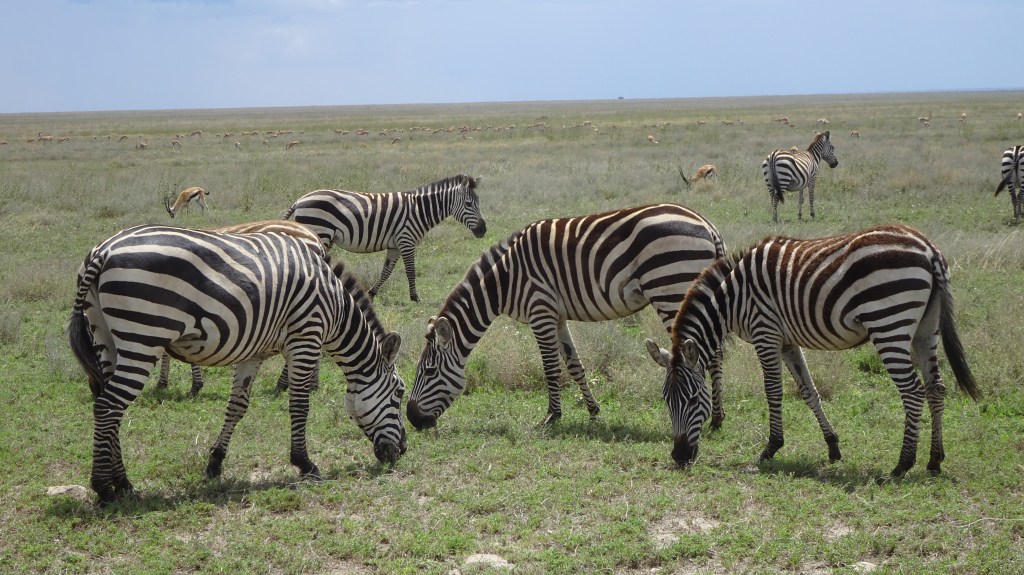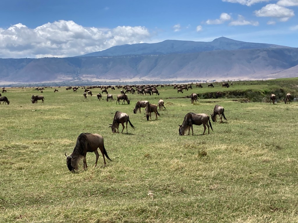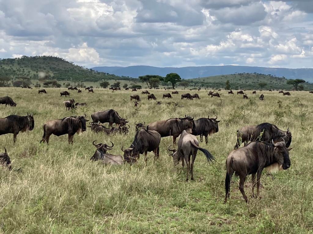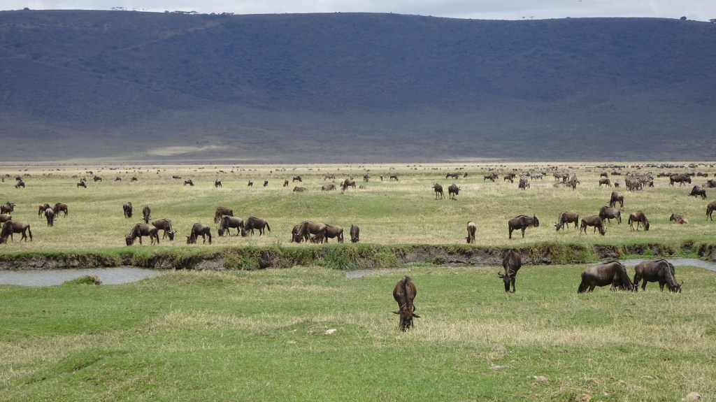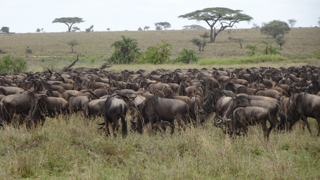 En ce moment, c’est la période de migration. Tous les gnous et les zèbres ont quitté le Kenya pour suivre les pluies qui arrivent maintenant en Tanzanie. On croise donc régulièrement des hordes de gnous et de zèbres, c’est impressionnant !