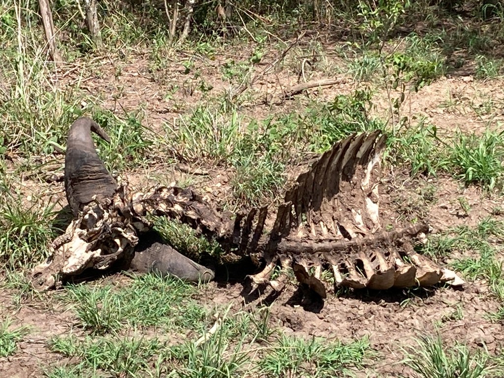 Régulièrement nous voyons des carcasses d’animaux. Voici celle d’un buffle.