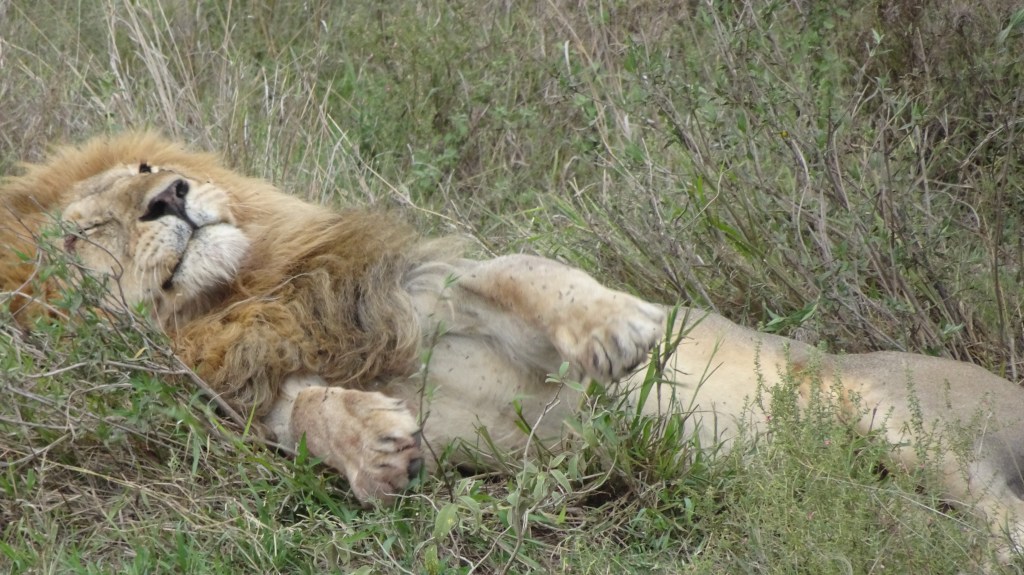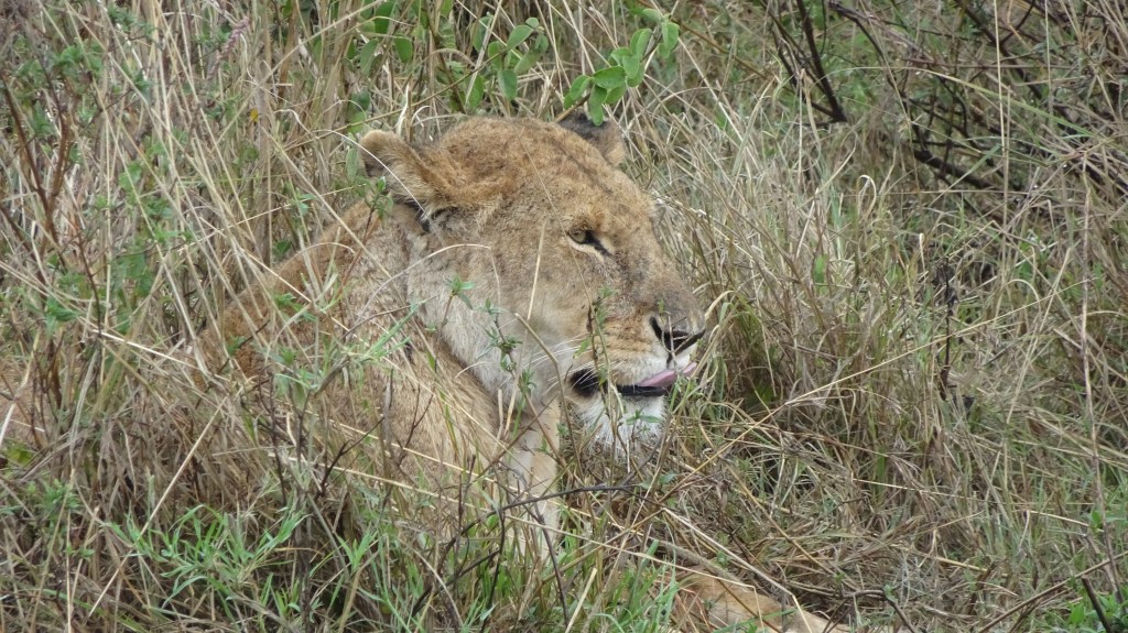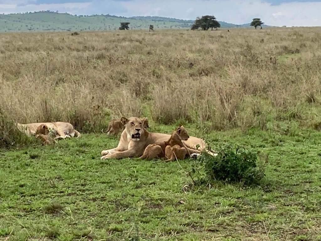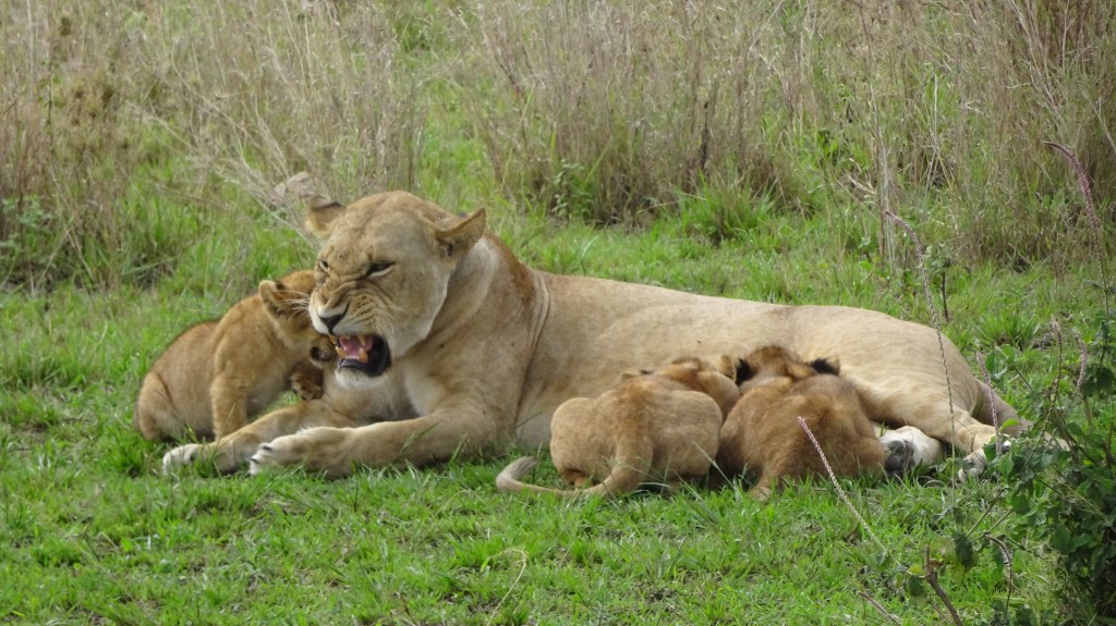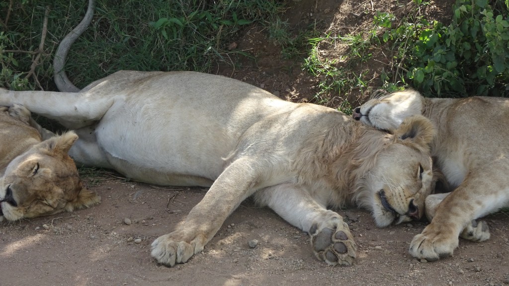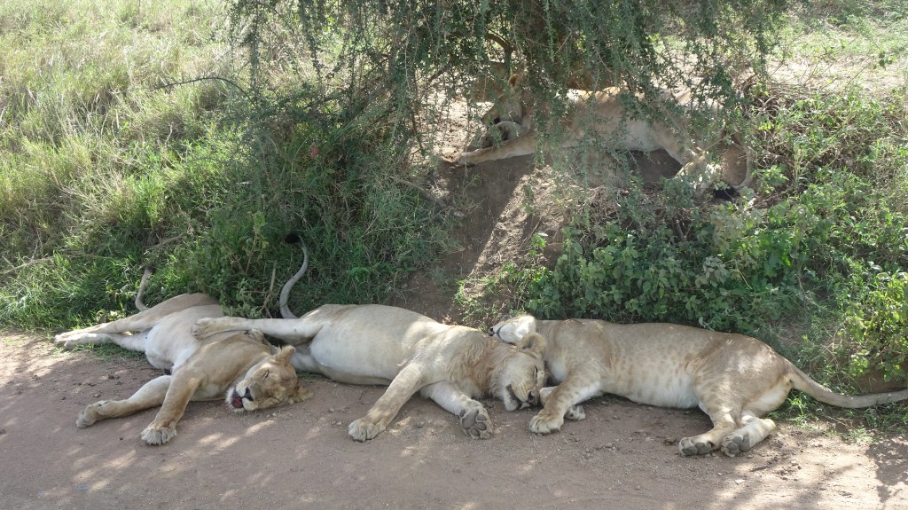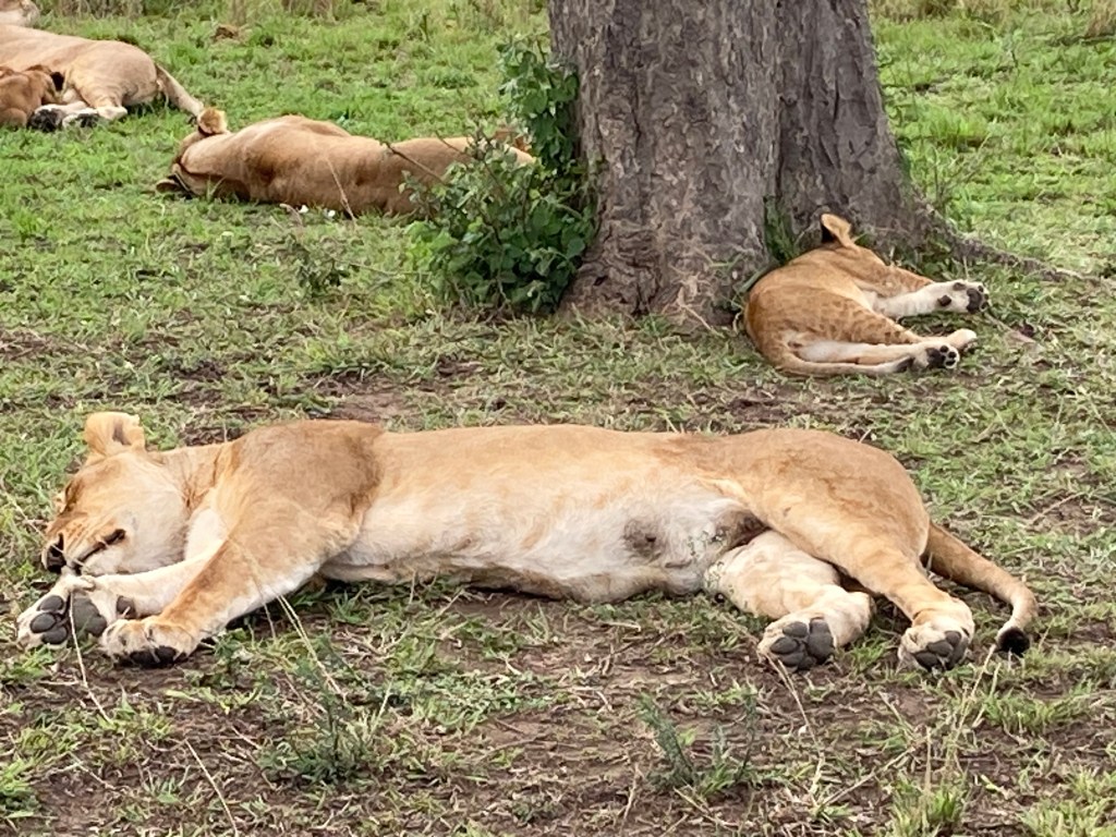 Et comme c’était la journée de rencontre avec les lions, on a vu toute une famille de lionnes avec des lionceaux couchés dans l’herbe.