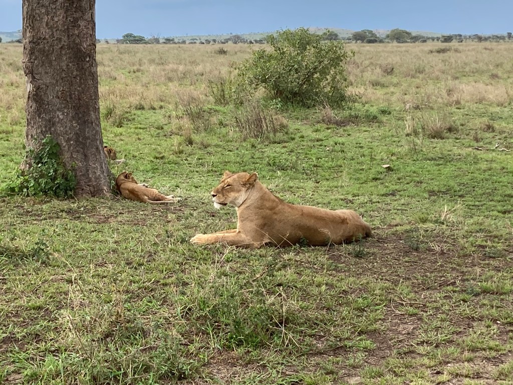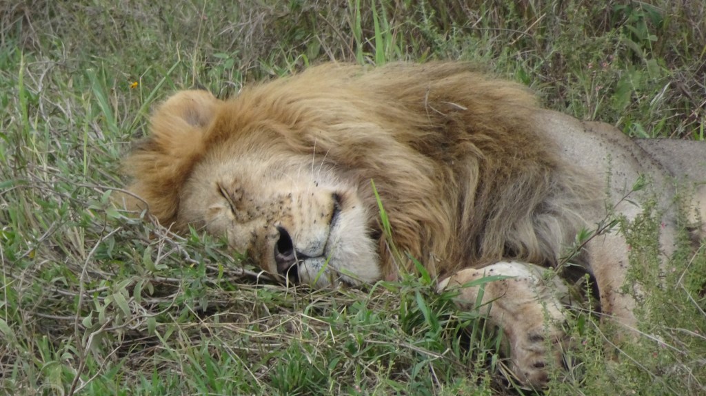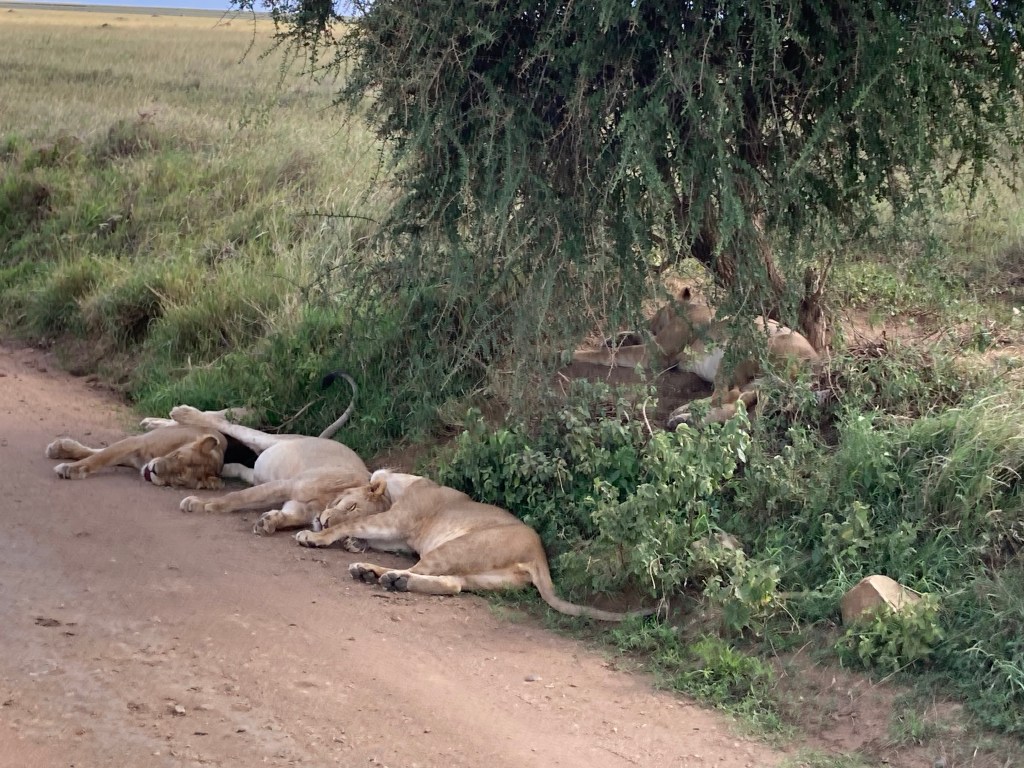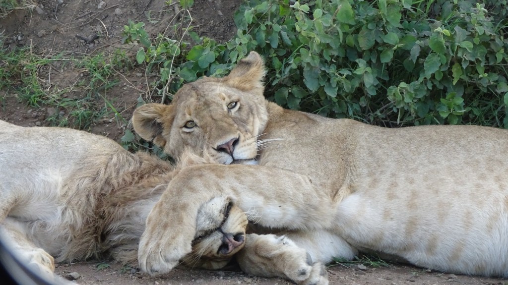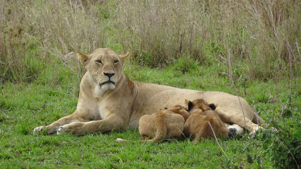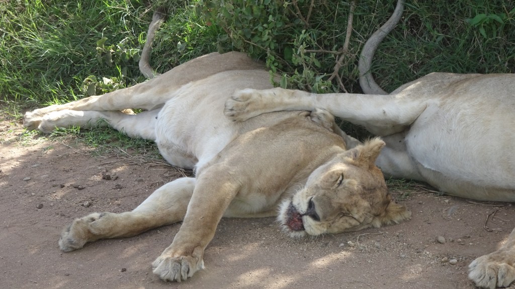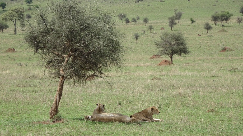 Et comme c’était la journée de rencontre avec les lions, on a vu toute une famille de lionnes avec des lionceaux couchés dans l’herbe.