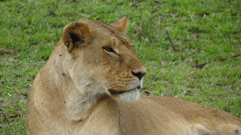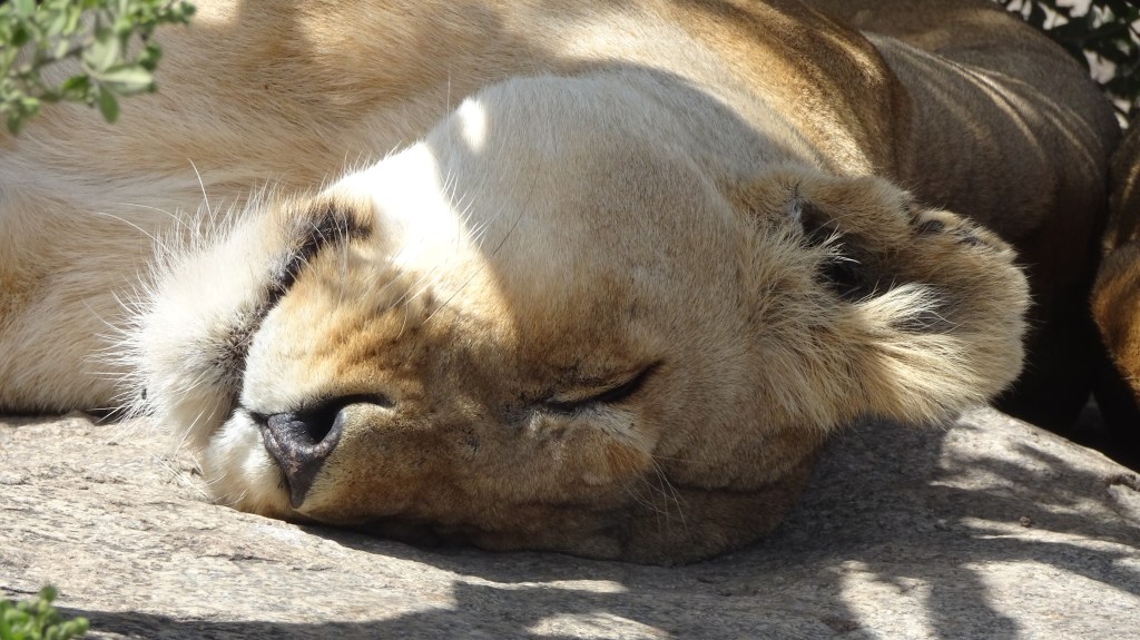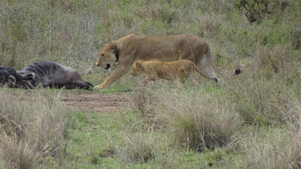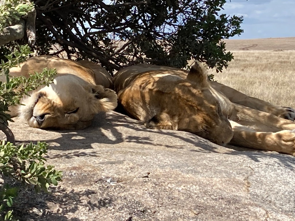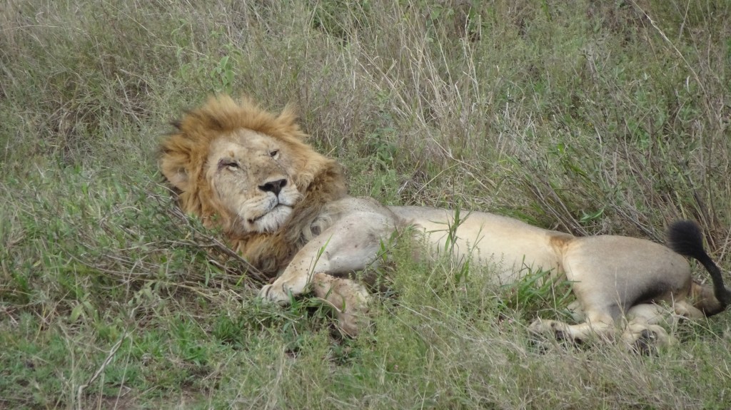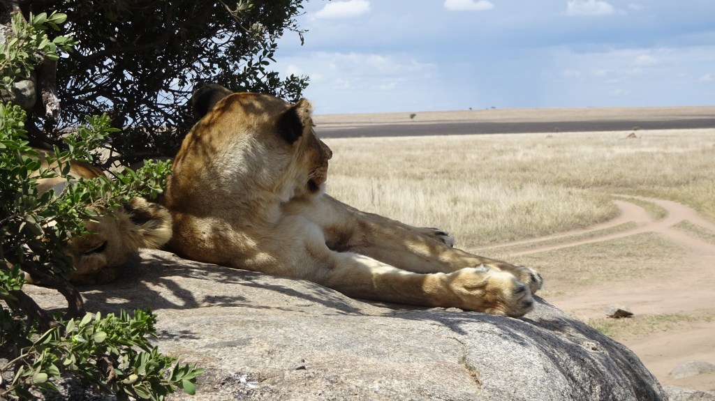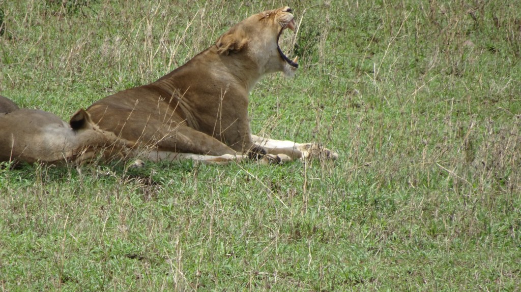 Et comme c’était la journée de rencontre avec les lions, on a vu toute une famille de lionnes avec des lionceaux couchés dans l’herbe.