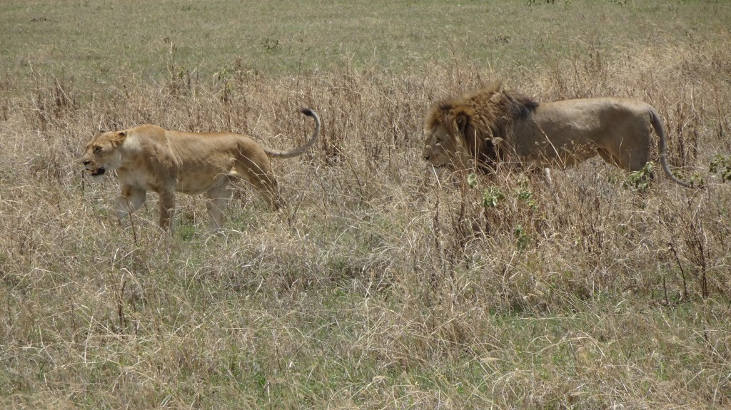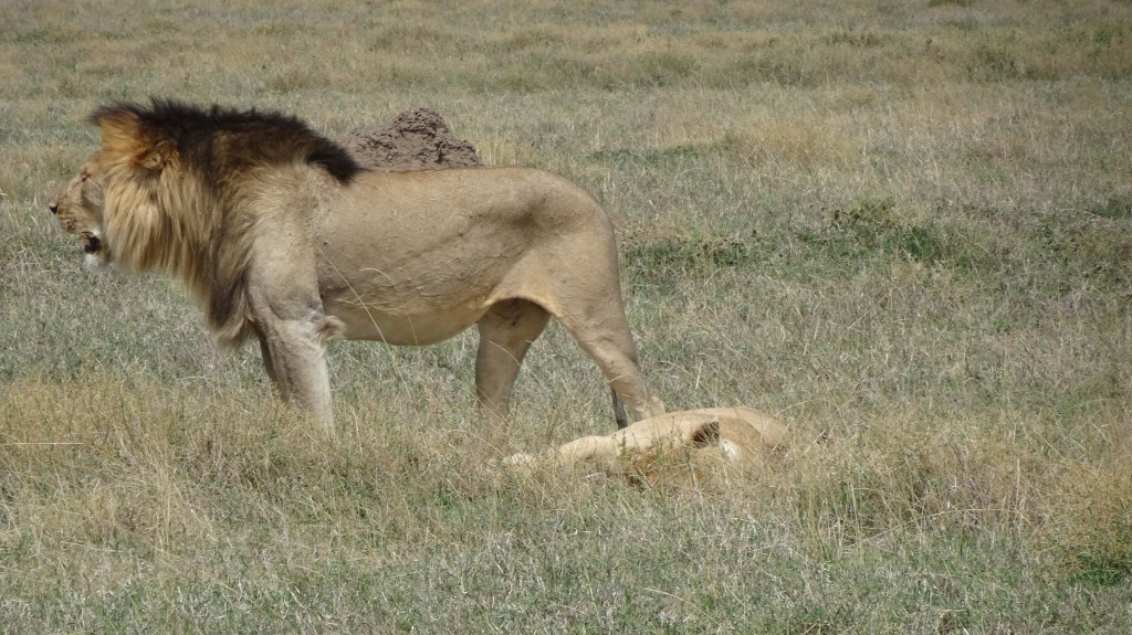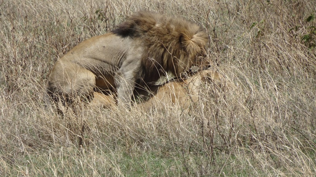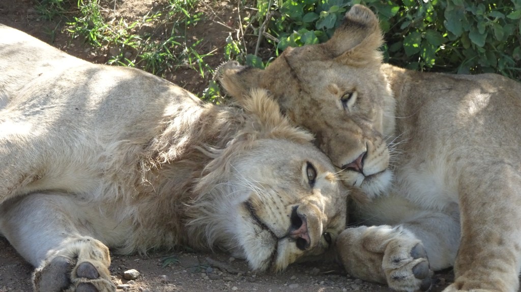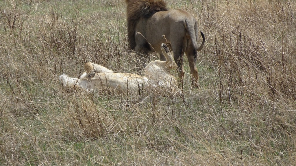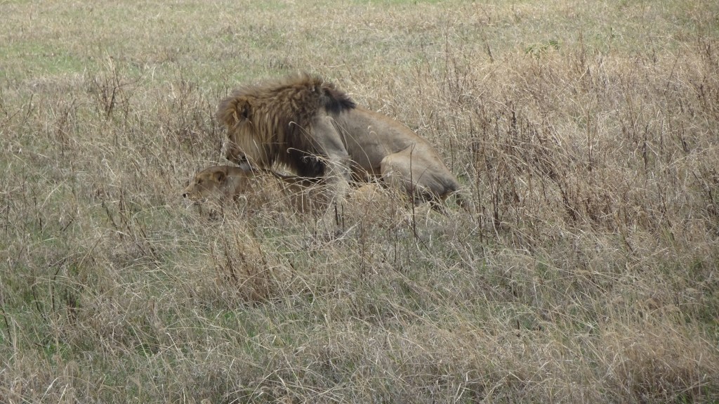 Nous avons encore eu la chance de voir un lion et une lionne s’accoupler. Ils recommencent toutes les quinze minutes, jusqu’à ce que la lionne tombe enceinte.
