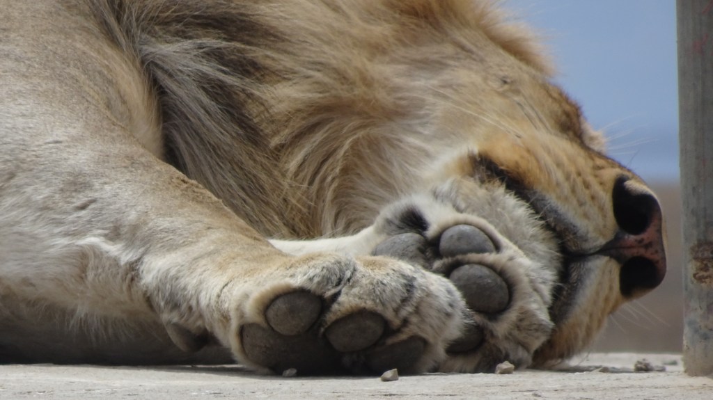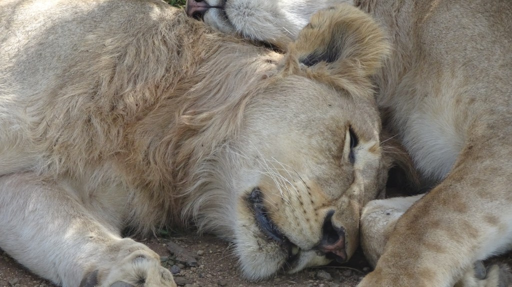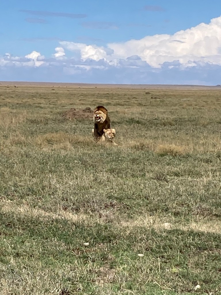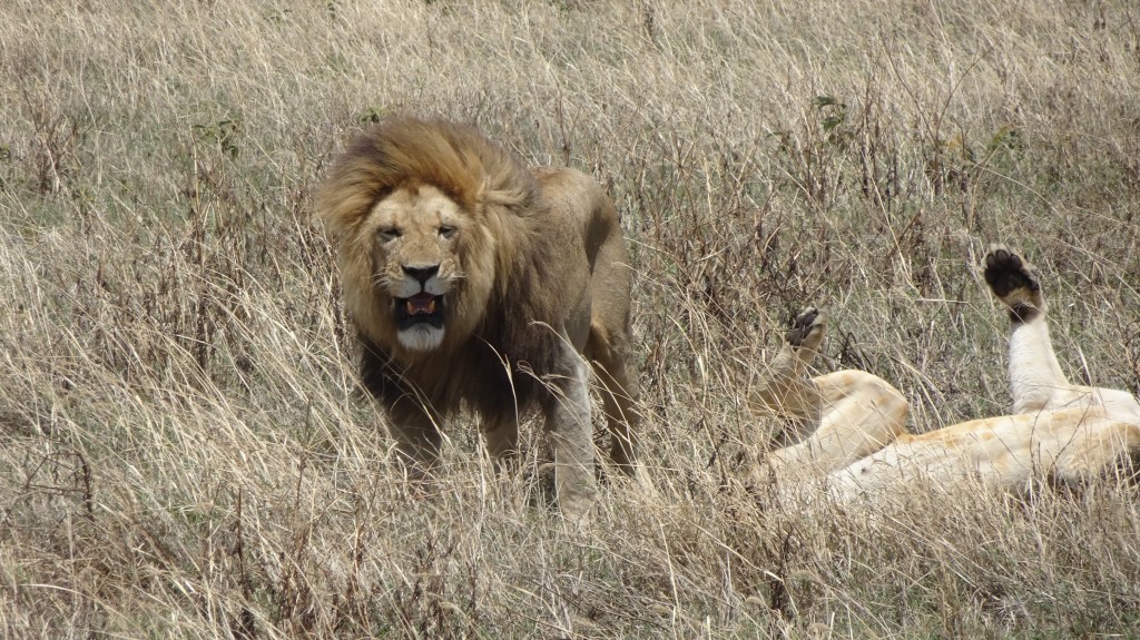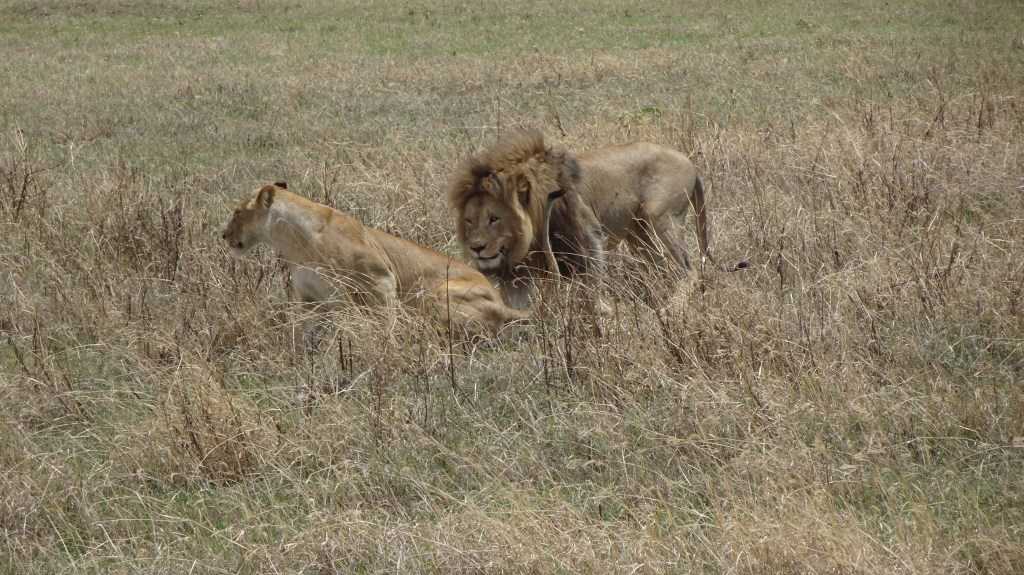 Nous avons encore eu la chance de voir un lion et une lionne s’accoupler. Ils recommencent toutes les quinze minutes, jusqu’à ce que la lionne tombe enceinte.