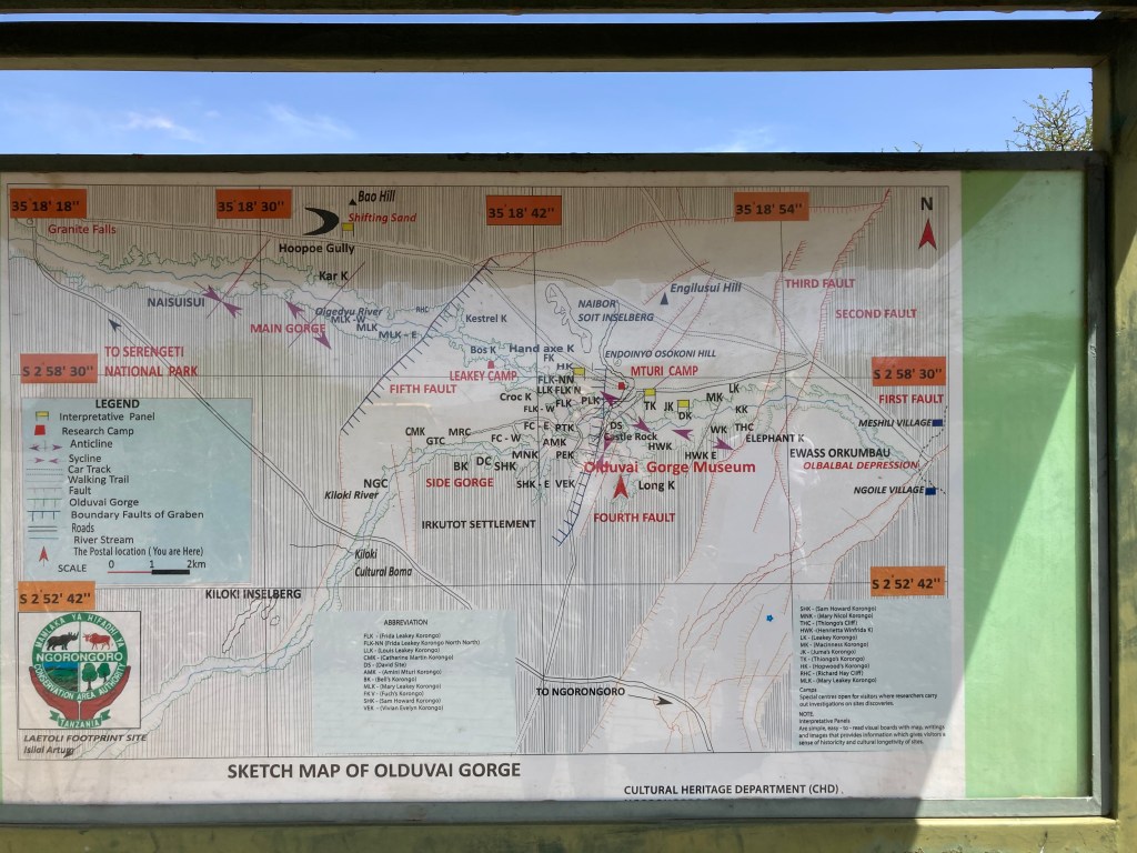 Les gorges d’Olduvai constituent l’un des plus importants complexes de sites préhistoriques d’Afrique de l’Est. La forte activité volcanique de la région à contribuer au dépôt de différents niveaux de cendres pouvant être datés. Olduvai est un canyon sculpté par l’eau. La gorge fait 50 km de long et à certains endroits 90 mètres de profondeur. Nous avons visité le musée qui retrace les principales découvertes effectuées dans les gorges : ossements, pierres, squelettes d’animaux …