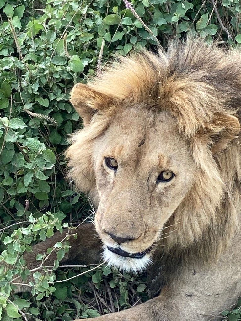 En fin de journée, nous avons croisé un beau lion assoupi et une lionne en train de manger une proie.