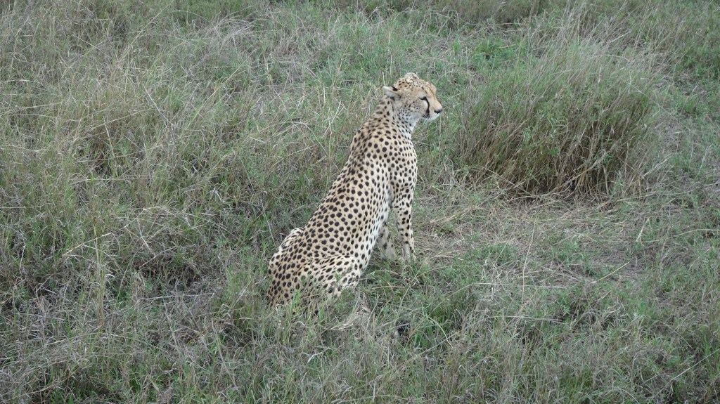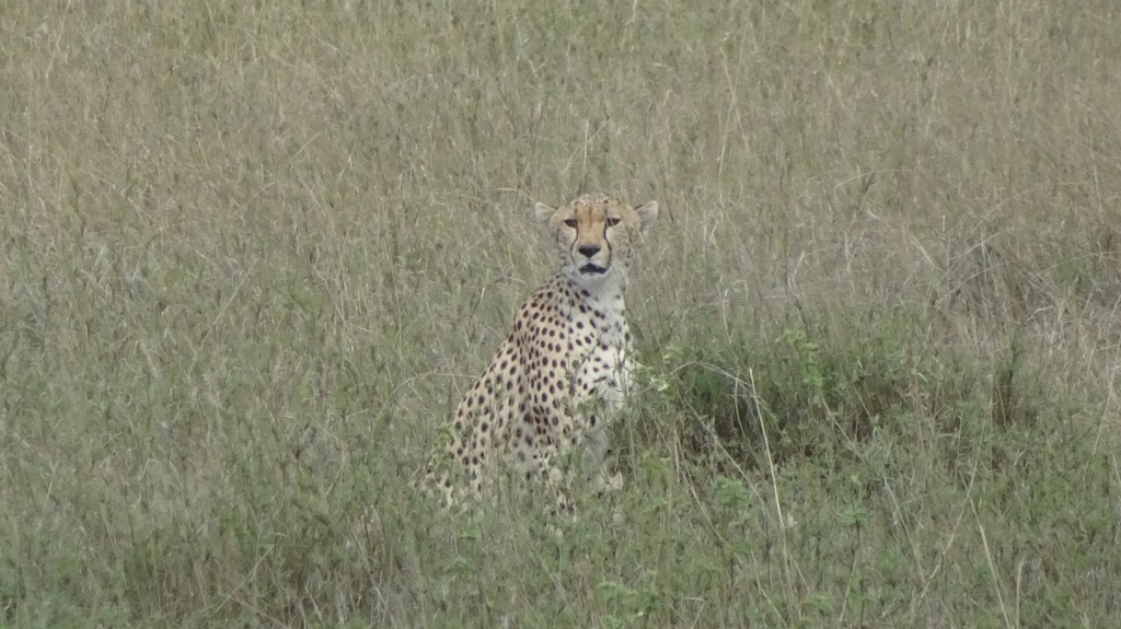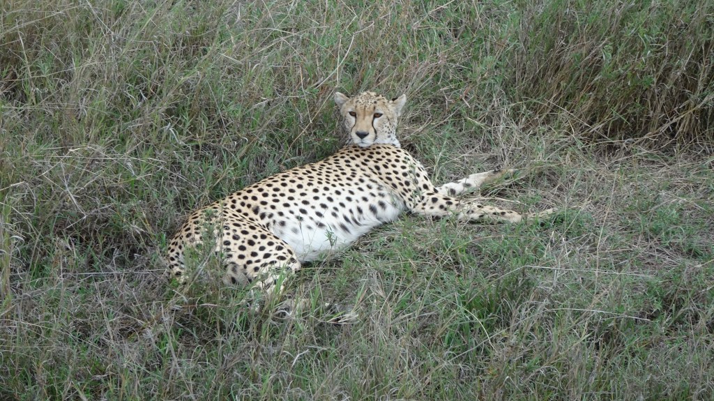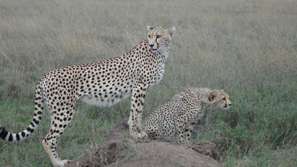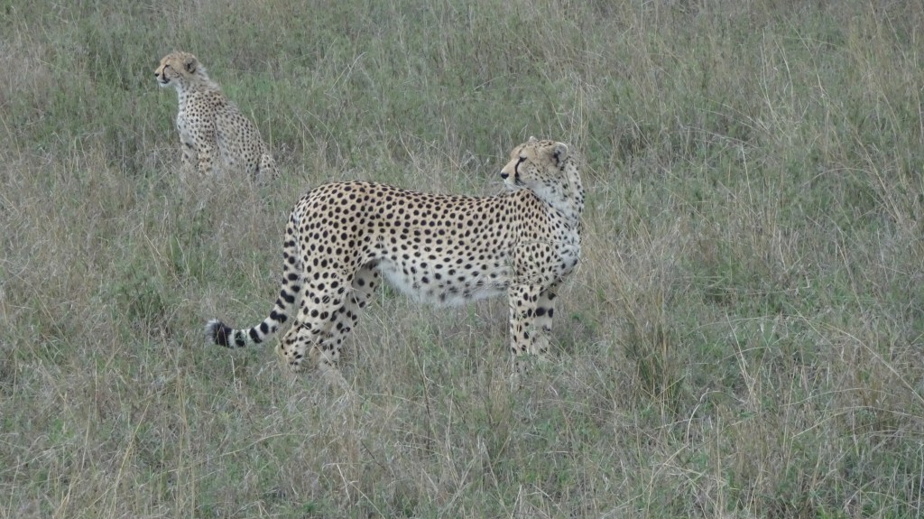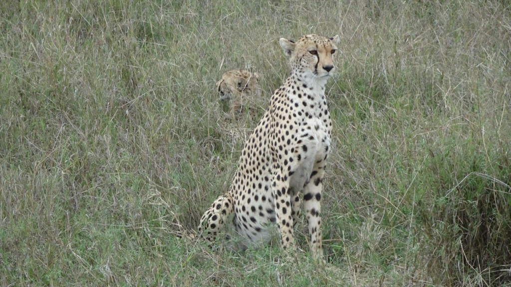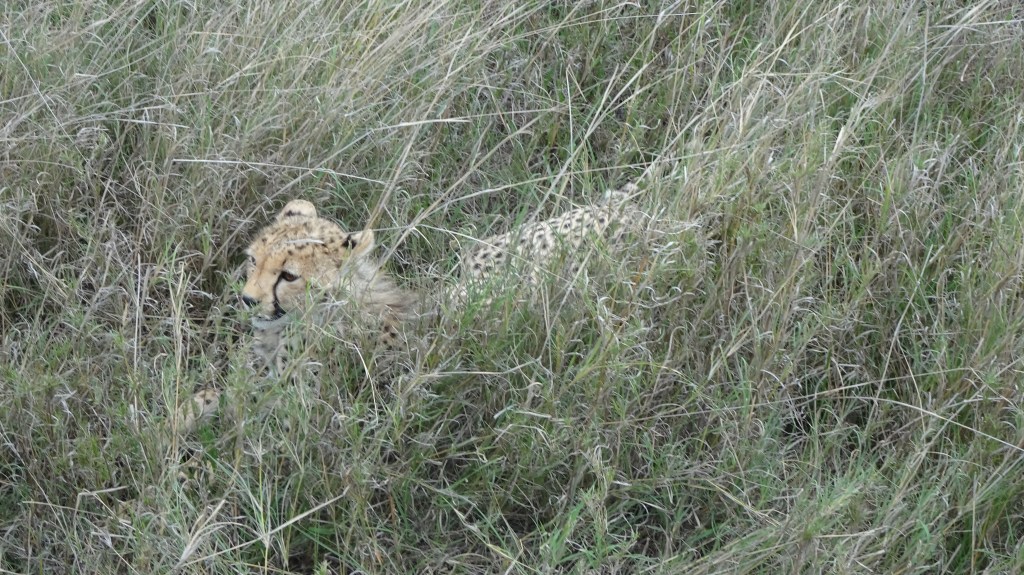 Nous avons tout d’abord trouvé le guépard. Nous avons attendu un moment car on attendait qu’il lève la tête car il était dans les herbes. En fait, il y en avait deux : la mère et son fils.