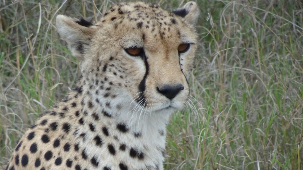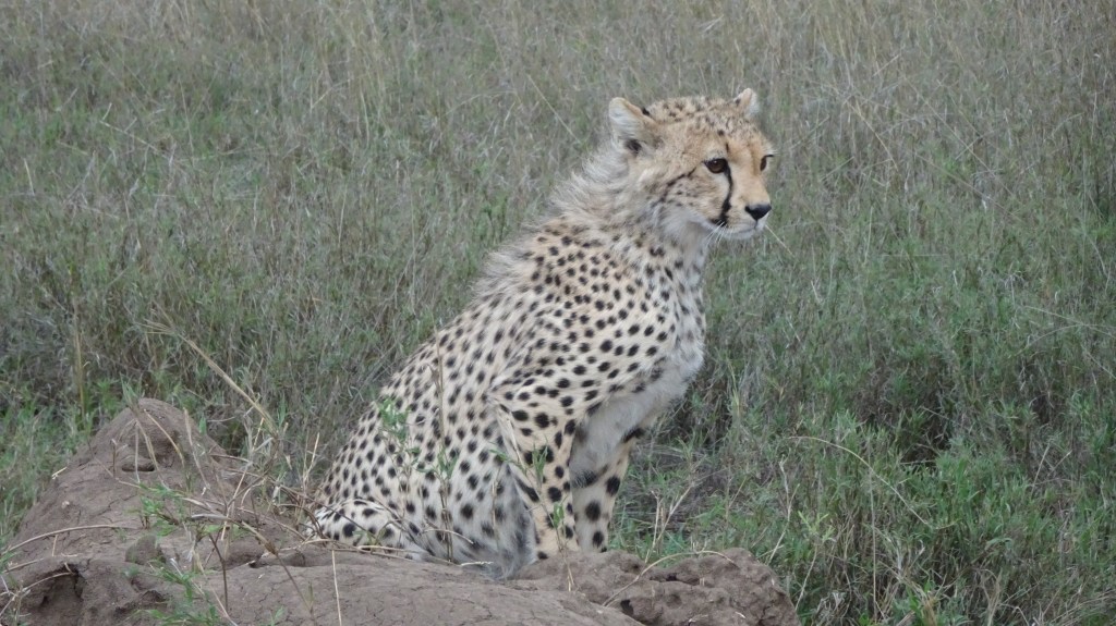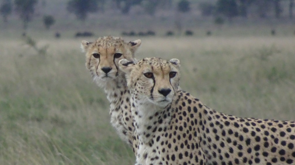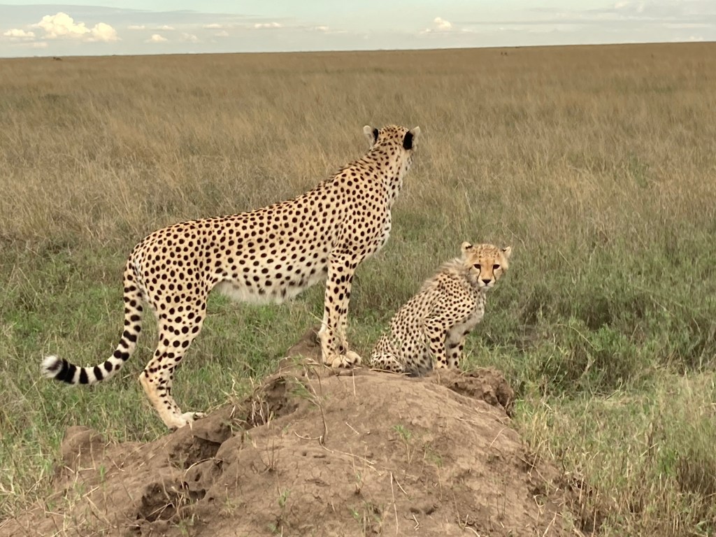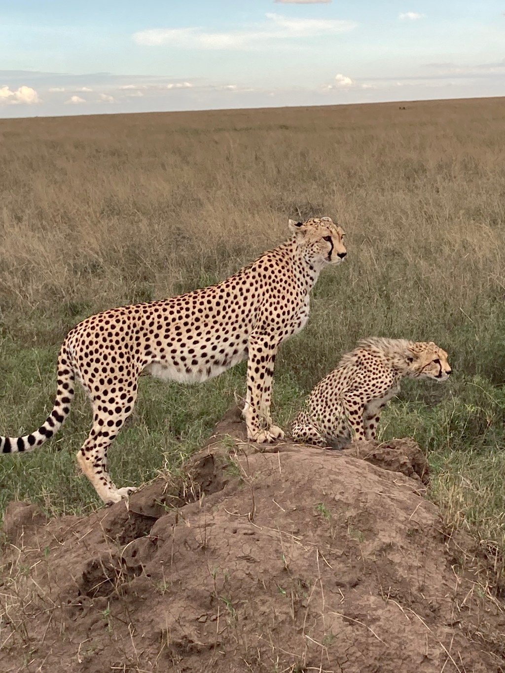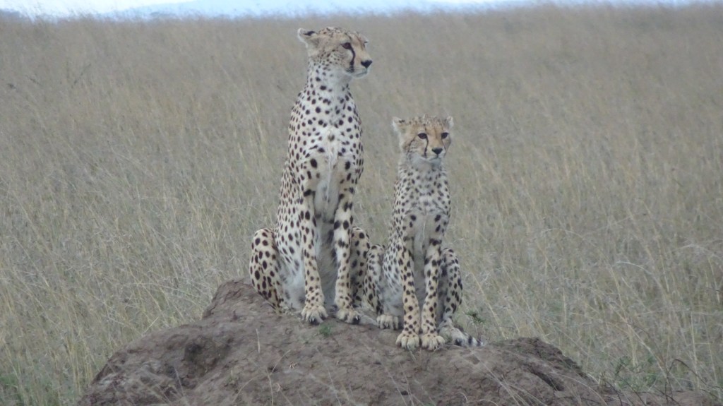 Nous avons tout d’abord trouvé le guépard. Nous avons attendu un moment car on attendait qu’il lève la tête car il était dans les herbes. En fait, il y en avait deux : la mère et son fils.