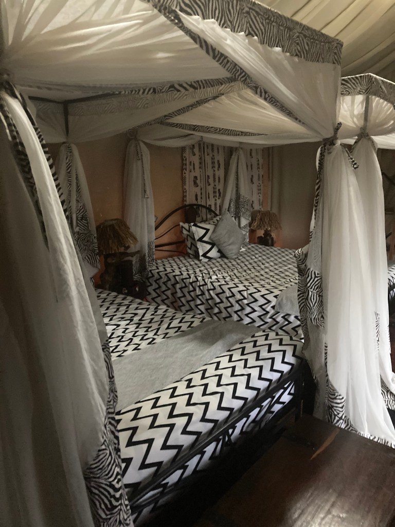 Et voilà, ce premier safari dans le Serengeti se termine par notre arrivée dans notre Bushcamps. Nous allons y rester quatre nuits. Nous prenons possession de nos chambres : Punda (le zèbre) pour nous et Fisi (la hyène) pour Valérie et Éric.