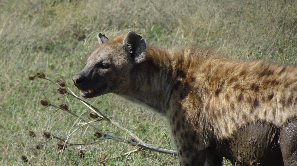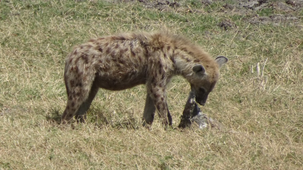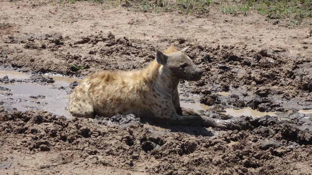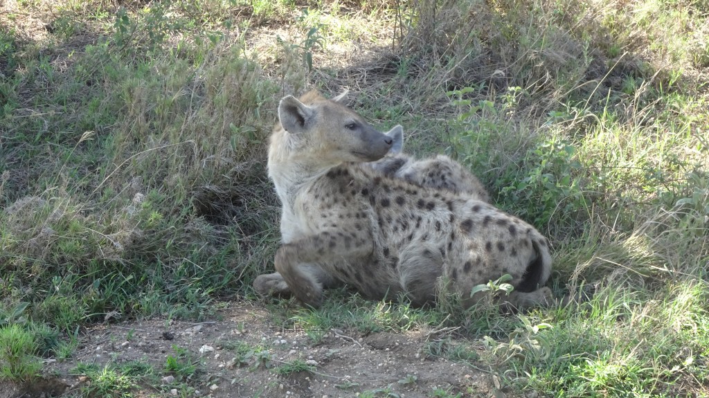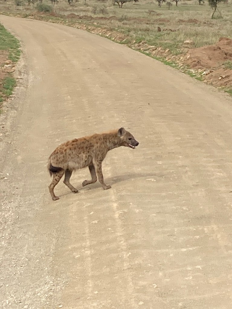 Et c’est parti pour notre nouvelle journée de safari. Nous avons croisé un groupe de hyènes qui était juste au bord de la route.