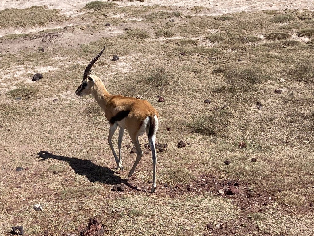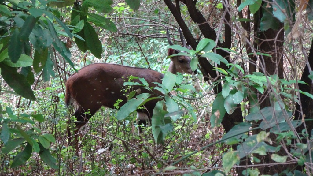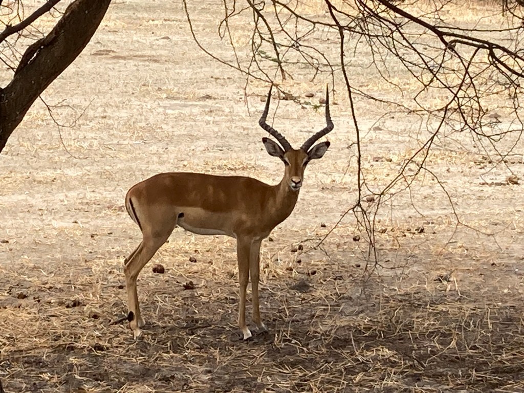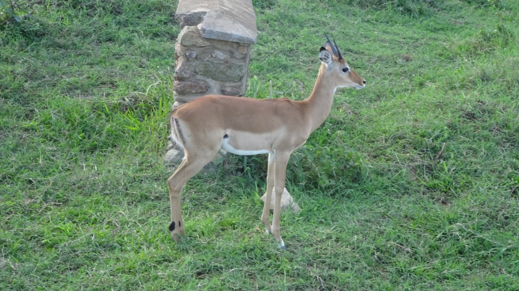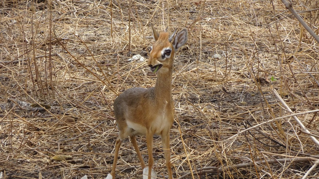 Au retour du petit déjeuner, une femelle guib était juste devant nos chambres.