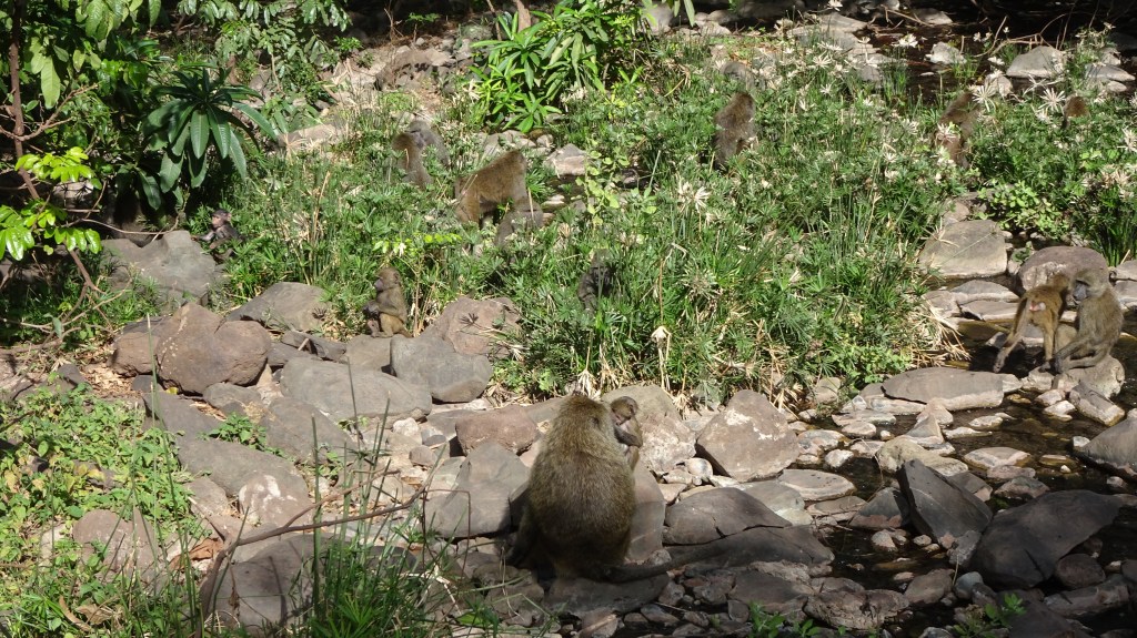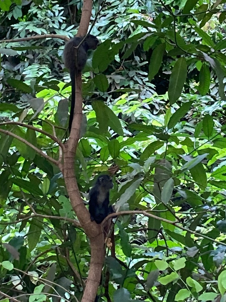 Puis nous avons mangé notre pic nic en faisant attention aux singes voleurs. Malheureusement les biscuits de Valérie ont été volés et mangés par une famille de singes.