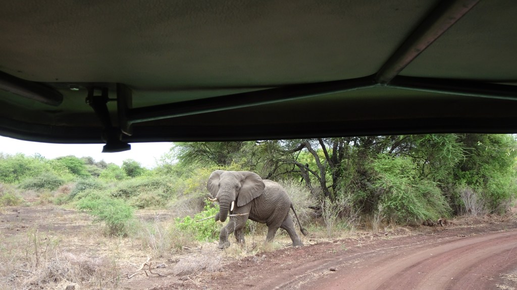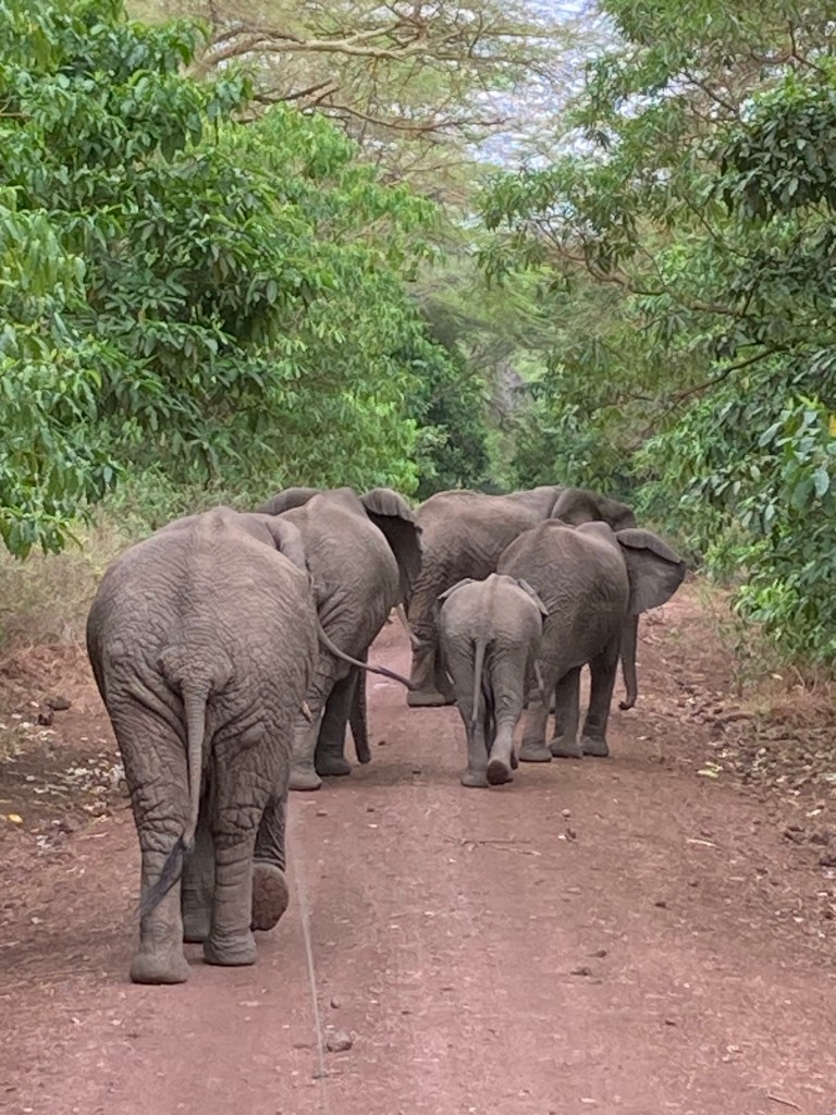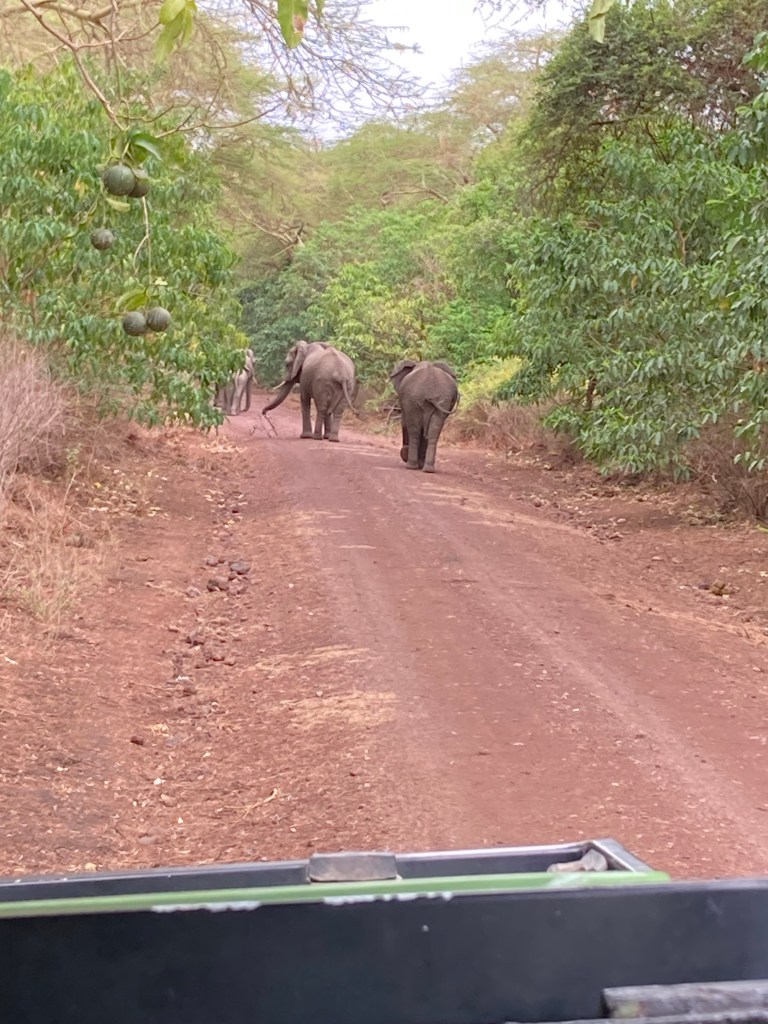 Juste avant de sortir du parc, nous avons croisé un troupeau d’éléphants, avec plusieurs bébés. Ils ont traversé devant et derrière le 4×4.