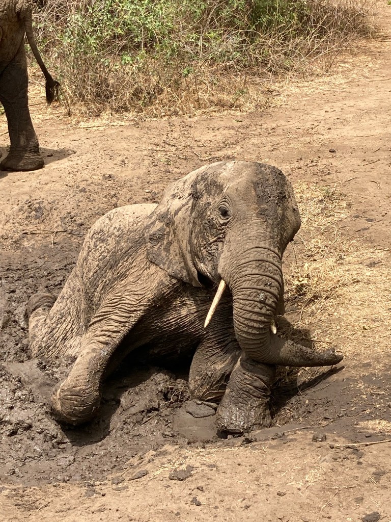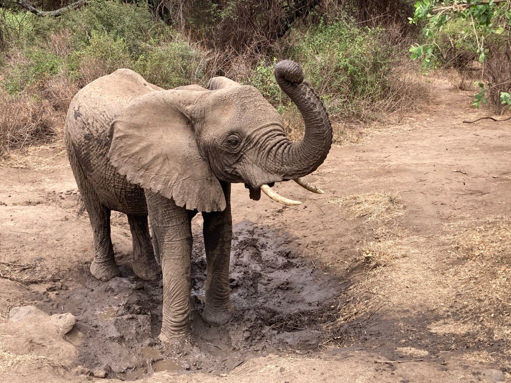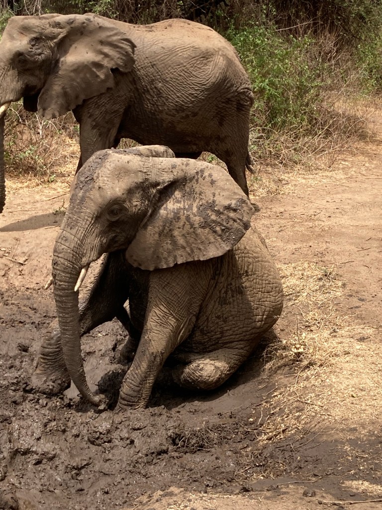 Puis à nouveau des éléphants, dont un qui s’est aspergé de boue à deux pas du 4×4, on aurait pu le toucher.