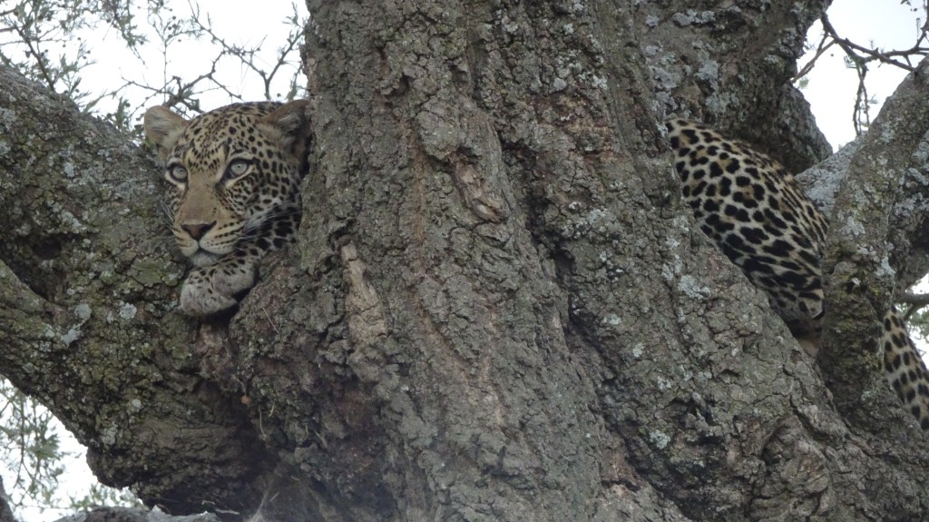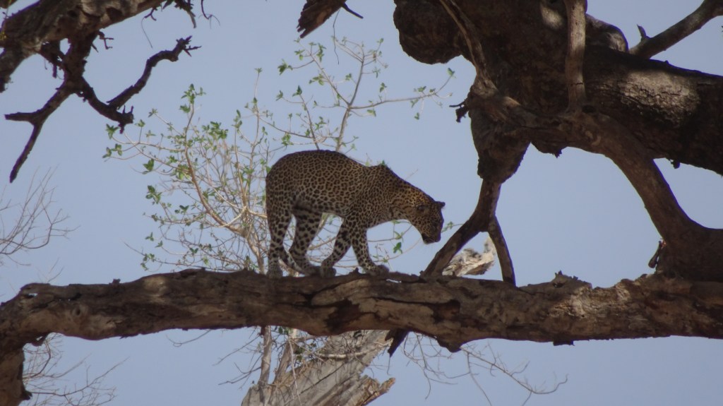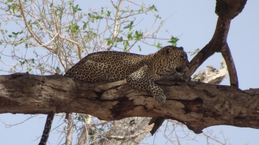 Nous avons eu ensuite la chance d’apercevoir un léopard dans un arbre.