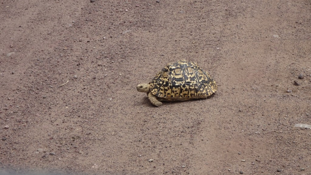 Nouvelle rencontre sur le bord de la route avec la tortue léopard et un peu plus loin avec un varant et un crocodile.