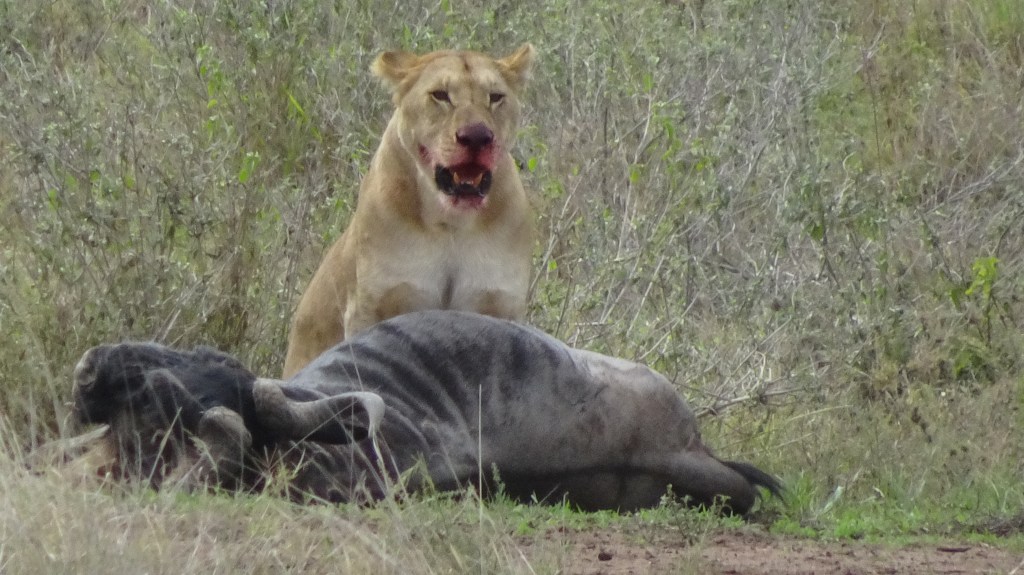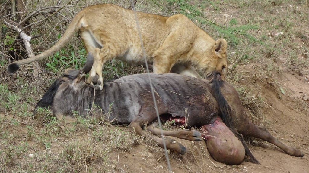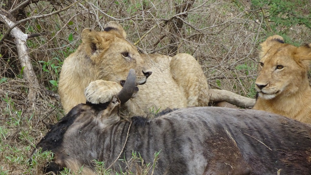 Nous nous sommes rapprochés de l’hotel et là, à nouveau des lions avec un cadavre de gnou.