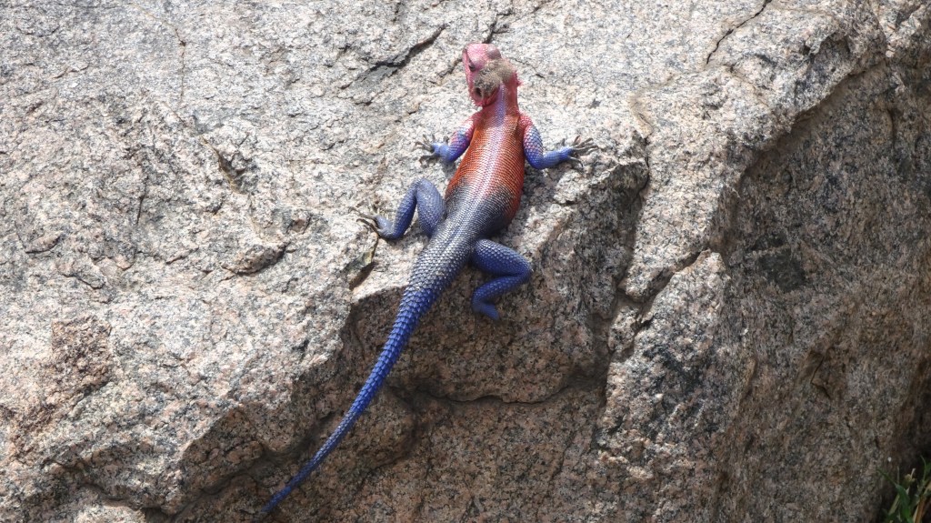 Nous avons pique-niqué sur une aire vers l’entrée du parc. Nous y avons vu un très joli lézard.
