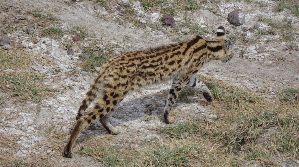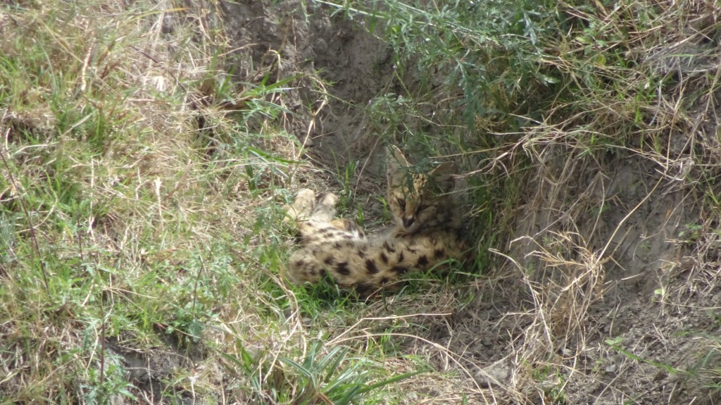 Nous n’avons pas eu la chance de voir le rhinocéros mais par contre nous avons vu un animal rare : le serval.