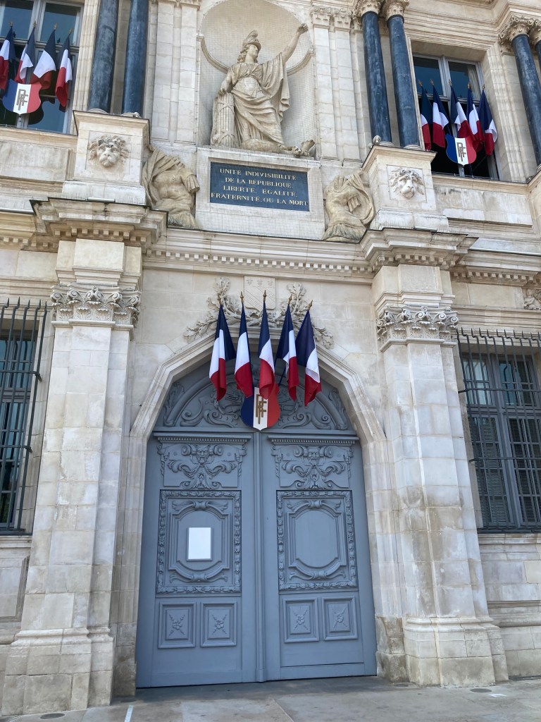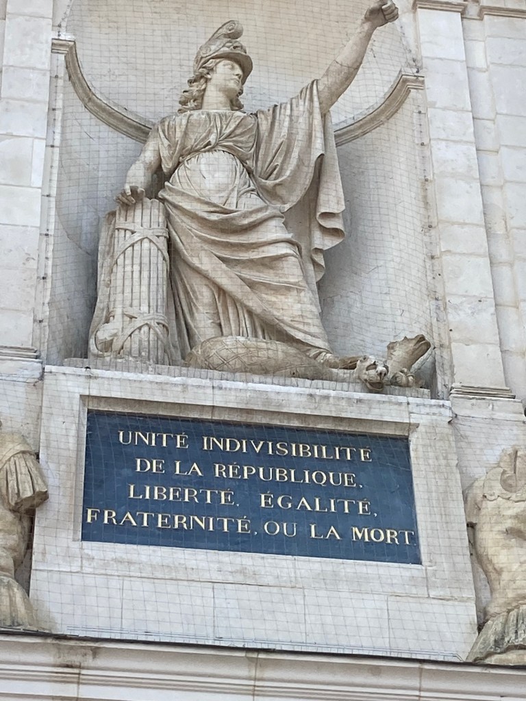 Sur la grande place Alexandre-Israël, on trouve l’hôtel de ville. Au-dessus du porche, la devise révolutionnaire est restée sous sa forme initiale : « Liberté, Égalité, Fraternité ou la Mort ».