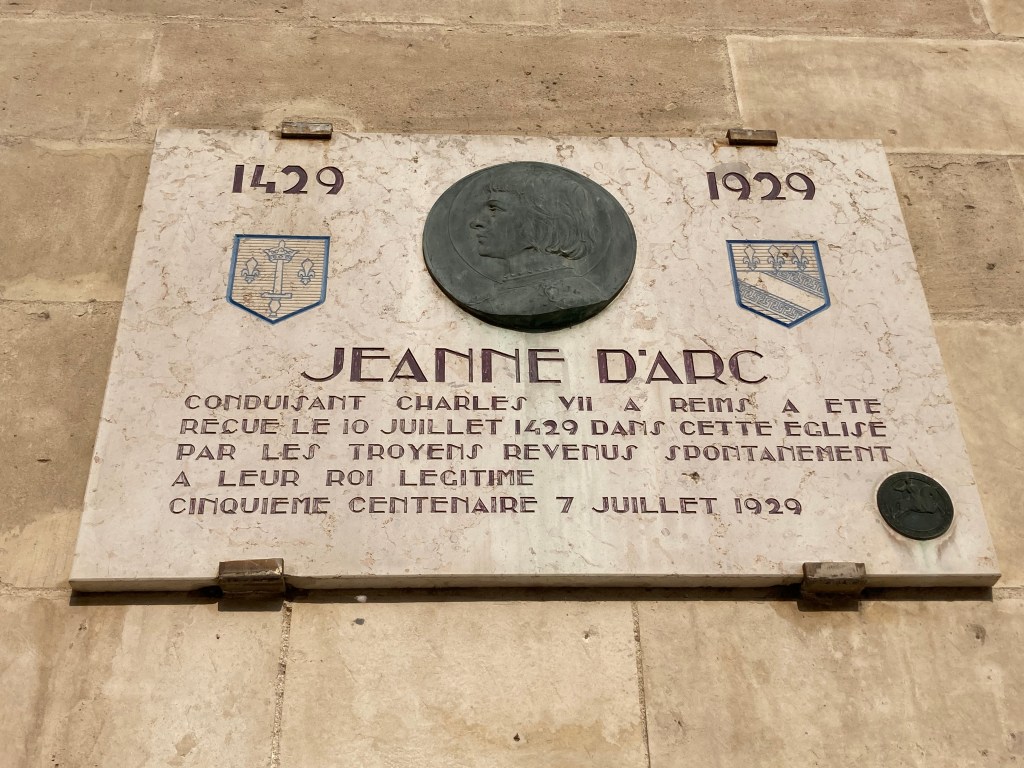 Une plaque rappelle le passage de Jeanne d’Arc à Troyes, le 10 juillet 1429.