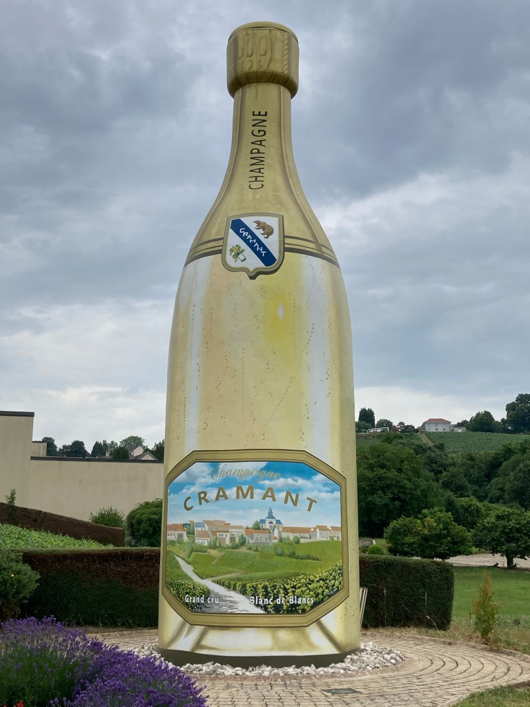 A l’entrée du village de Cramant on trouve une énorme bouteille de champagne.