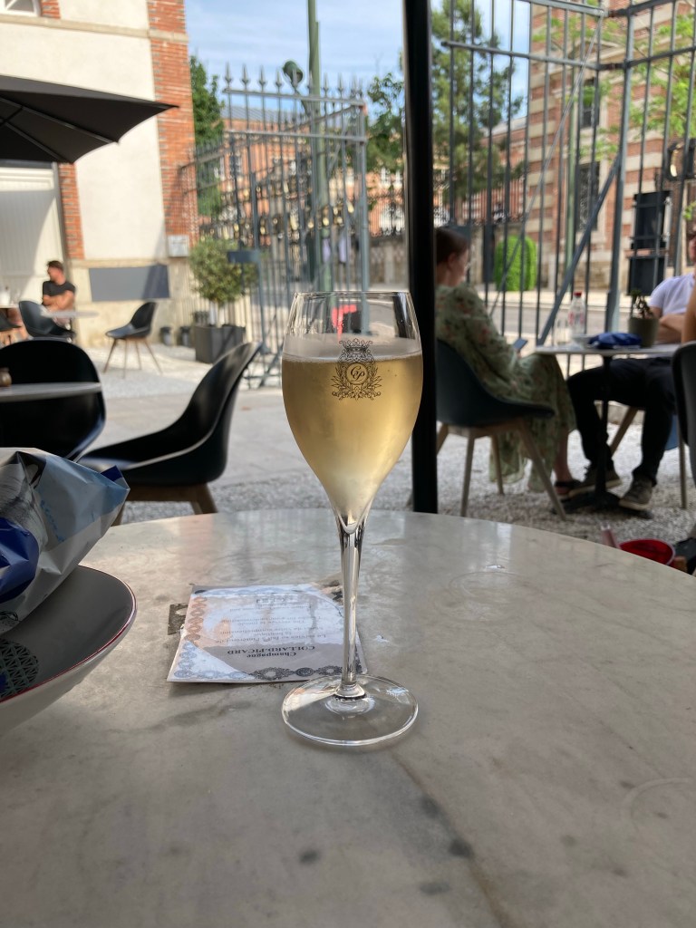 Nous finissons la journée par une dégustation de champagne au bar « Chez Philippe ». Nous avons goûté trois champagnes différents : un blanc de blanc (uniquement cépage Chardonnay) un blanc de noir (cépage pinot noir ou pinot meunier ou les deux assemblés) et un rosé.