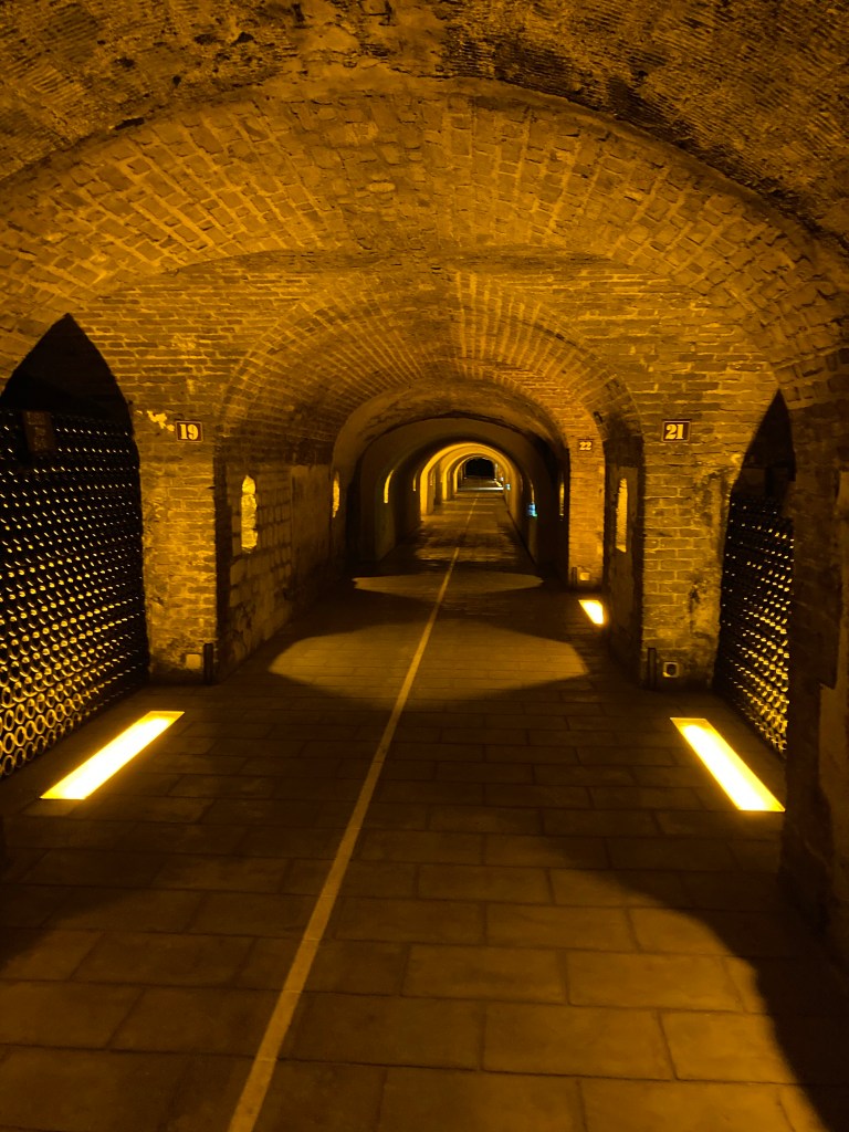 La visite commence par l’histoire de la famille Moët et Chandon puis on descend dans les caves pour une explication sur la vinification du champagne. Les caves sont longues de 28 km sur 3 étages. Napoléon y est venu.