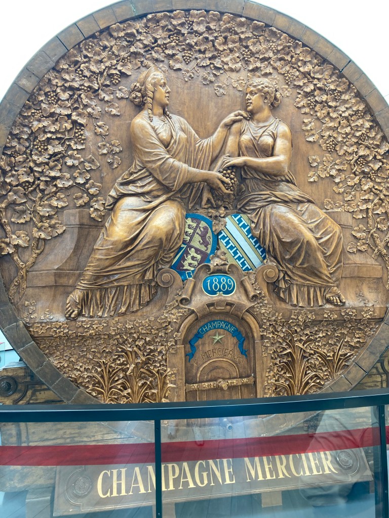 Dés l’entrée, on est impressionné par l’immense foudre (tonneau) en bois. Eugène Mercier, le fondateur de la maison Mercier, l’a fait construire pour l’exposition universelle de 1889.