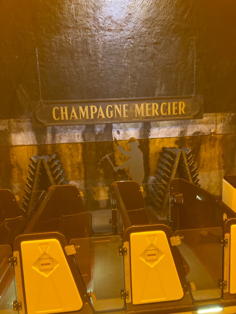 Aujourd’hui, nous avions réservé la visite des caves Mercier (20 euros par personne). La visite comprend un parcours des caves en petit train ainsi qu’une dégustation de trois crus : le brut, le brut réserve et le brut rosé.