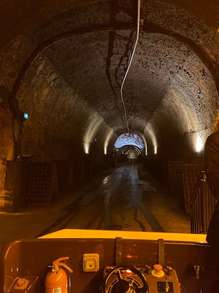 La visite débute par un petit film racontant la création de la Maison Mercier puis on prend un ascenseur pour descendre 30 mètres plus bas. Au niveau des caves, nous montons dans un petit train qui nous mènera au travers des caves. Les explications sont faites au travers d’un audio guide. Très peu d’explications sur la fabrication du champagne par rapport à la visite chez Moët et Chandon.