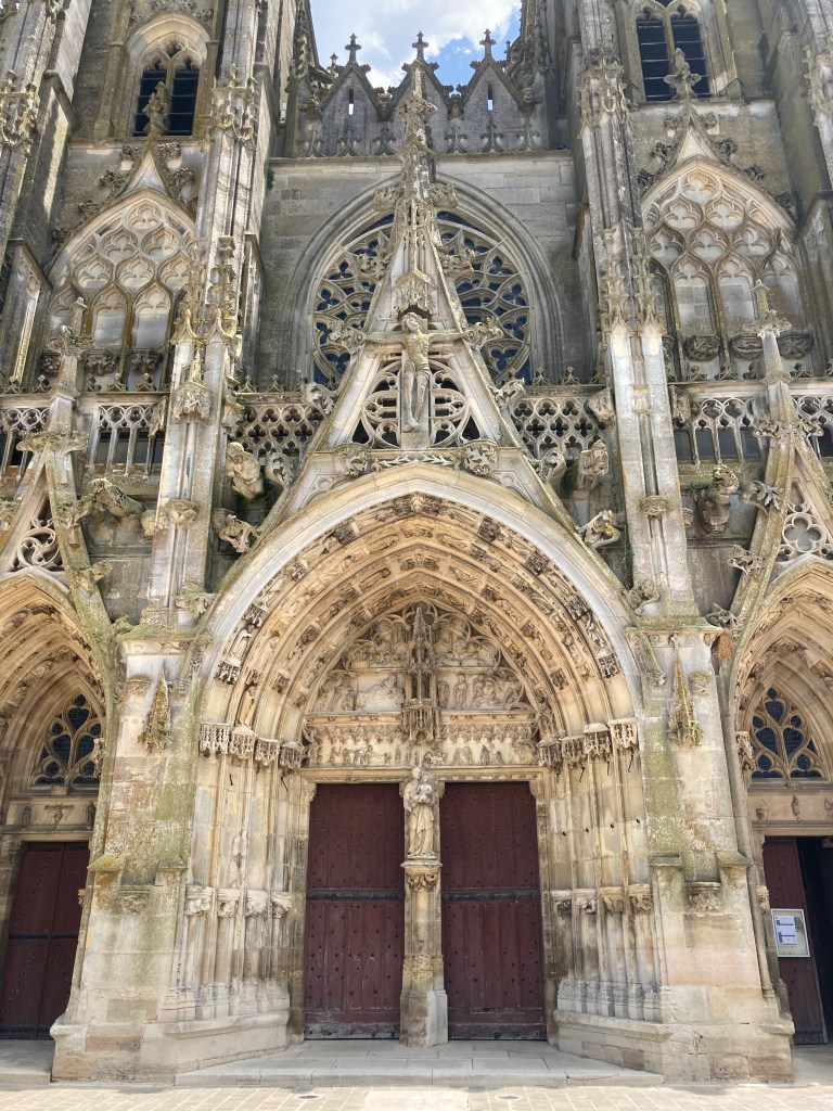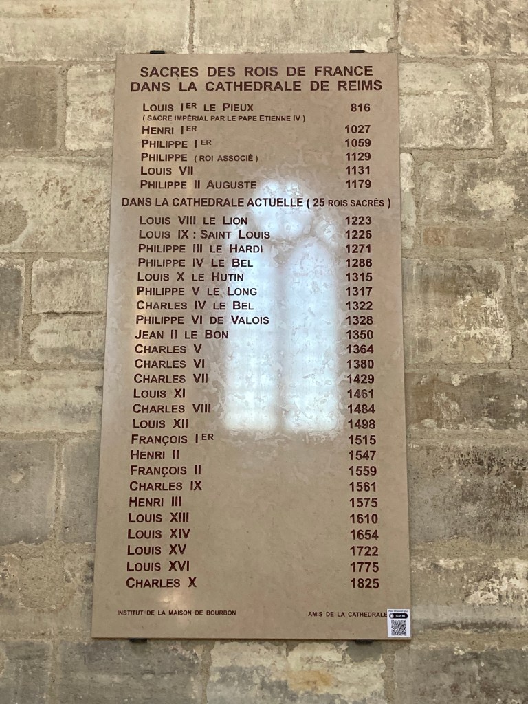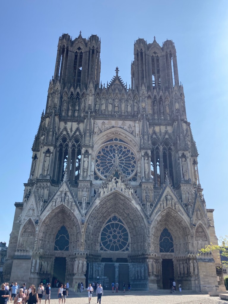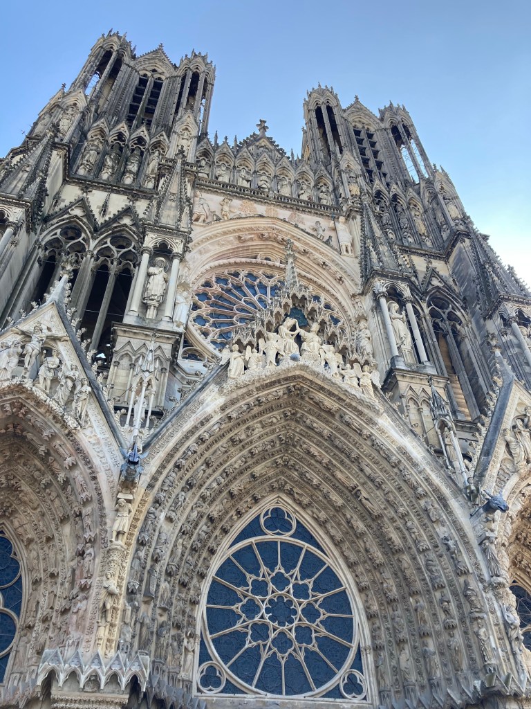 On débute par la cathédrale Notre-Dame de Reims. Elle fait partie des plus grands édifices de l’art gothique. Trente Rois y ont été sacrés.