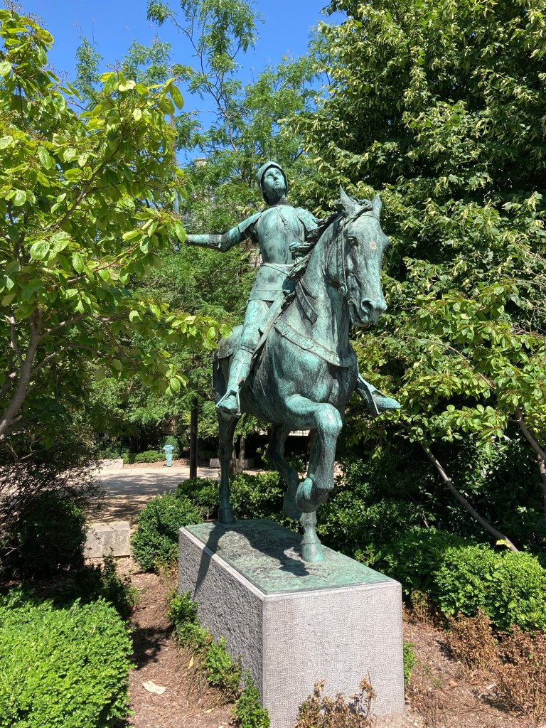 Sur la place devant la cathédrale, on trouve dans un coin une statue de Jeanne d’Arc. Elle assista ici au sacre de Charles VII en 1429.