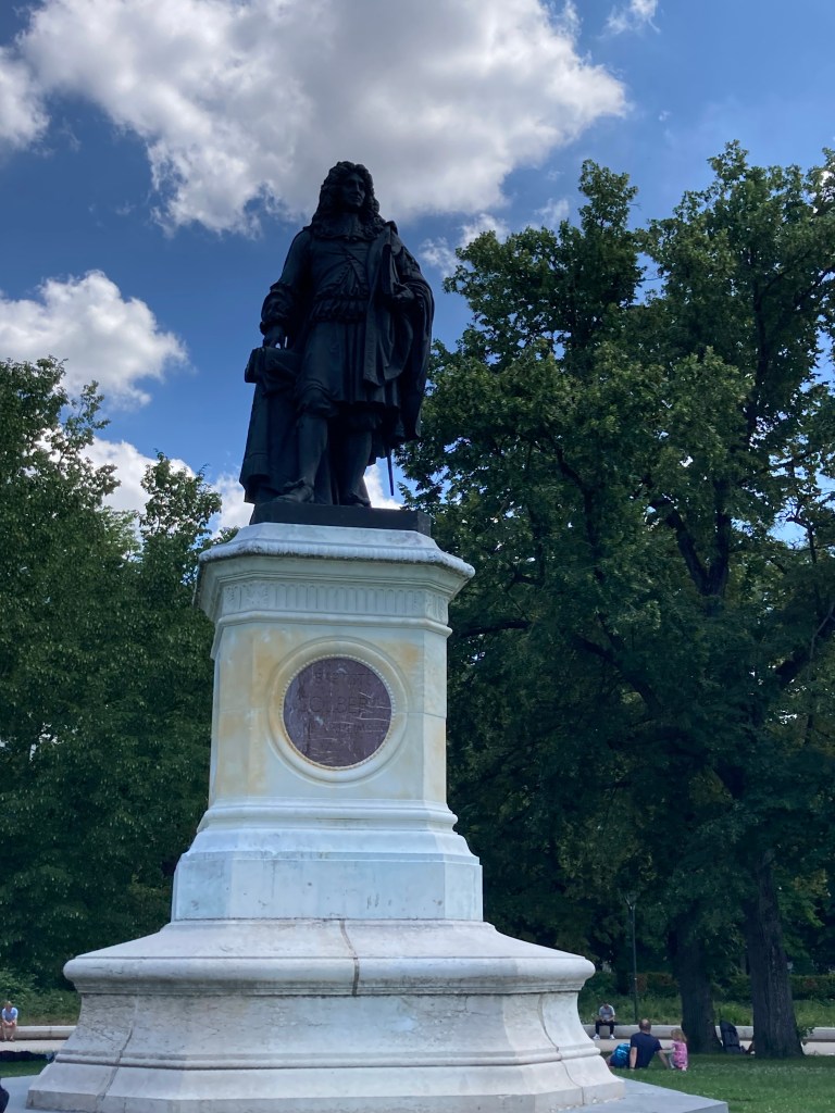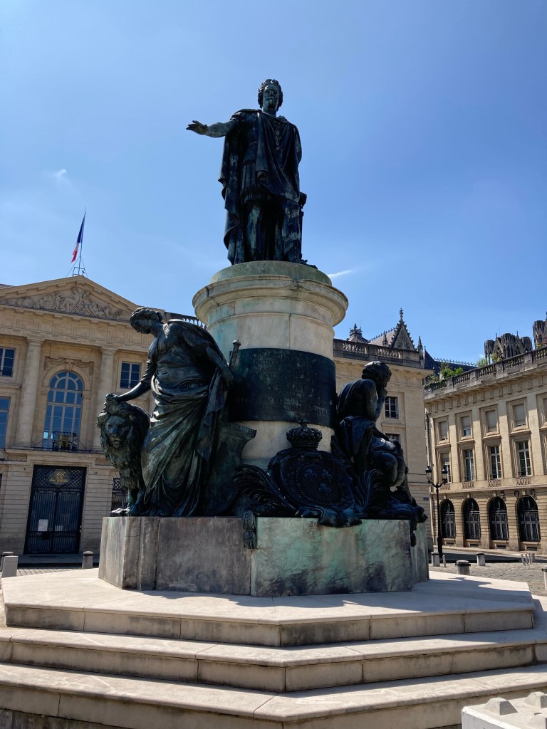 Au centre de la Place Royale se trouve une statue de Louis XV en tenue d’empereur romain.