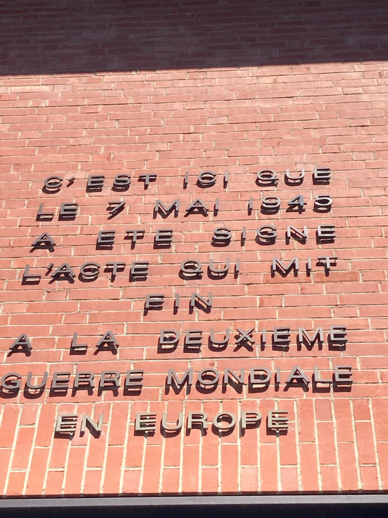 Ce matin, nous avons visité le Musée de la reddition. Le 7 mai a été signé à Reims la fin de la Seconde Guerre mondiale. Cette signature a dû être tenue secrète pendant 24 heures afin de permettre aux troupes allemandes de se replier vers l’ouest afin d’éviter d’être prisonniers des soviétique.