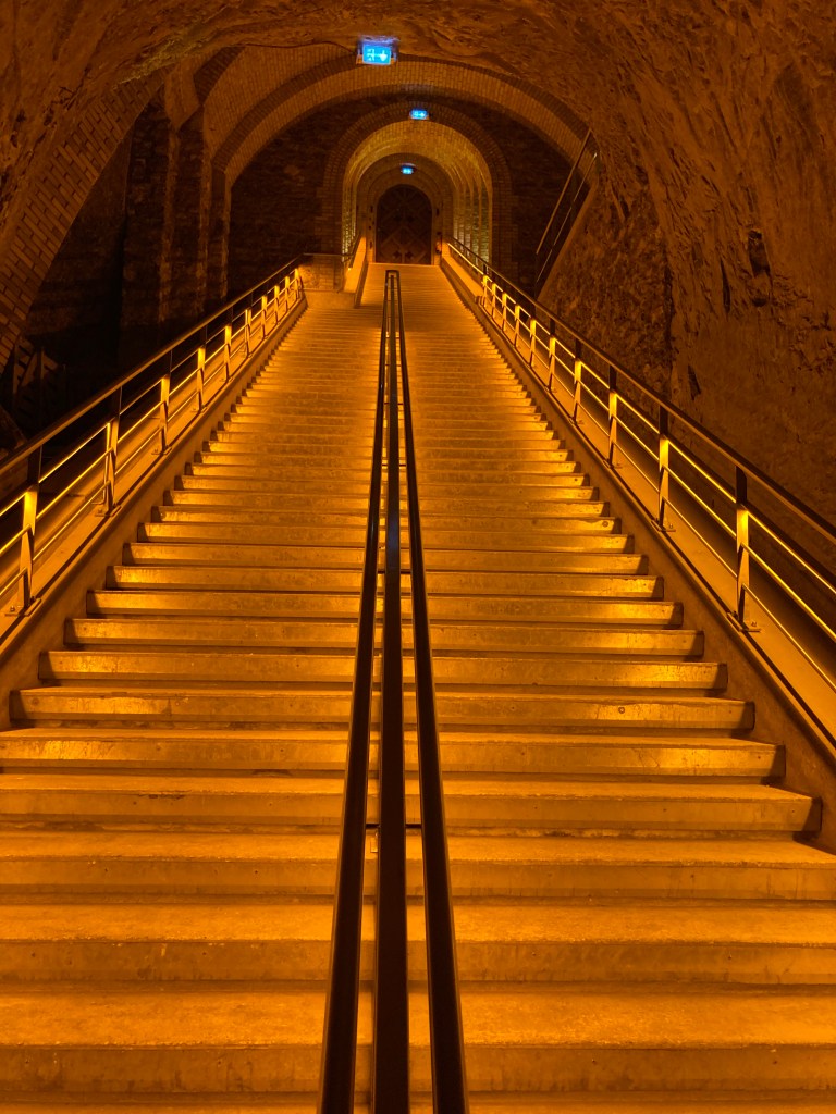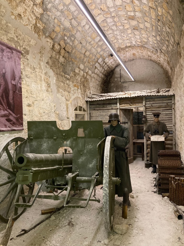 Dernière visite à Verdun : la citadelle souterraine. La citadelle pouvait abriter au départ 2 000 hommes, une vraie ville souterraine, capable de vivre en autonomie. Les sous-sols abritent un réseau de galeries souterraines aménagées et animées. La visite dure environ 30 minutes. On se balade dans une sorte de wagonnet équipé d’un casque de réalité augmentée. Attention il fait très froid pendant la visite ! Honnêtement ce n’est pas la visite la plus intéressante que nous ayons faite.