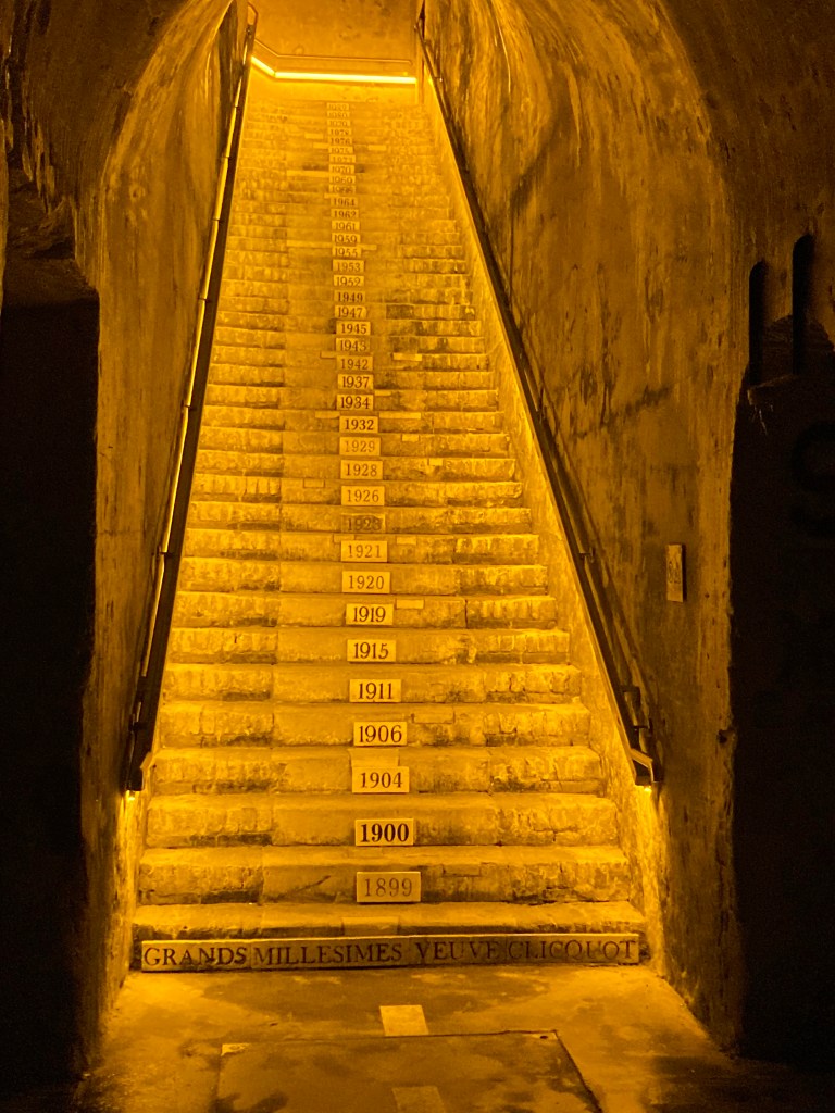 Ensuit, nous avons enchaîné avec notre visite des caves et dégustation de champagne chez Veuve Clicquot. Nous avons payé 75 euros par personne pour la visite et la dégustation de quatre crus différents. La visite est très intéressante et retrace notamment la vie de la Veuve Clicquot. Les crayères sont impressionnantes.