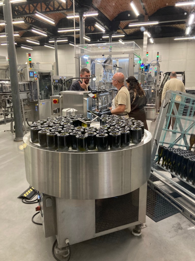Nous avons pu assister en direct à l’étape du dégorgement : moment où l’on extrait de la bouteille les levures. Celles ci par des mouvements répétés de la bouteille, sont ramenées au niveau du goulot puis trempées dans une solution à – 23 degrés. Il se forme alors un glaçon qui est ensuite expulsé en ouvrant la bouteille.