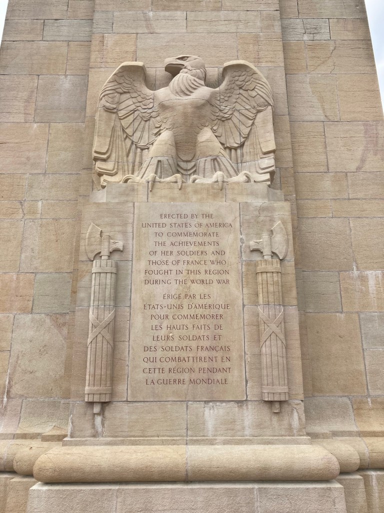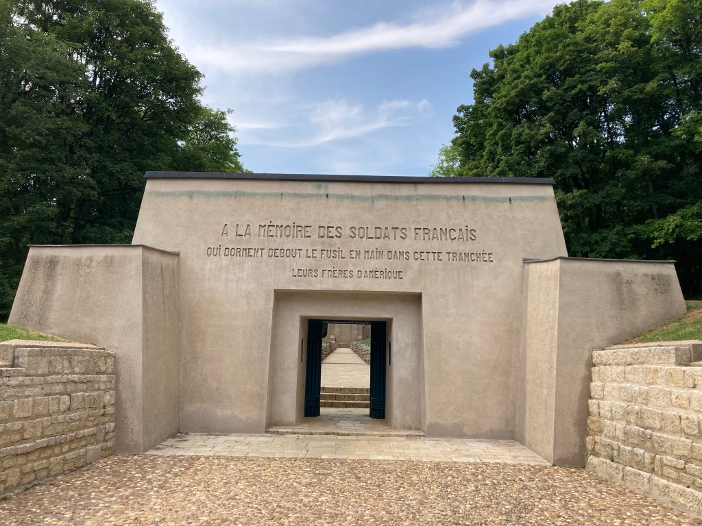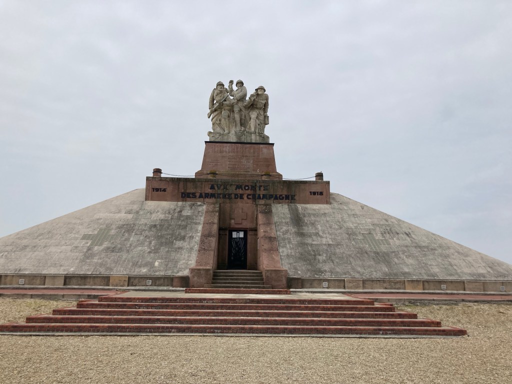 Notre premier arrêt de la journée est au monument américain du Blanc-Mont. Il fut érigé en 1937 pour honorer la mémoire des 70 000 soldats américains ayant combattu en Champagne lors de l’été 1918.