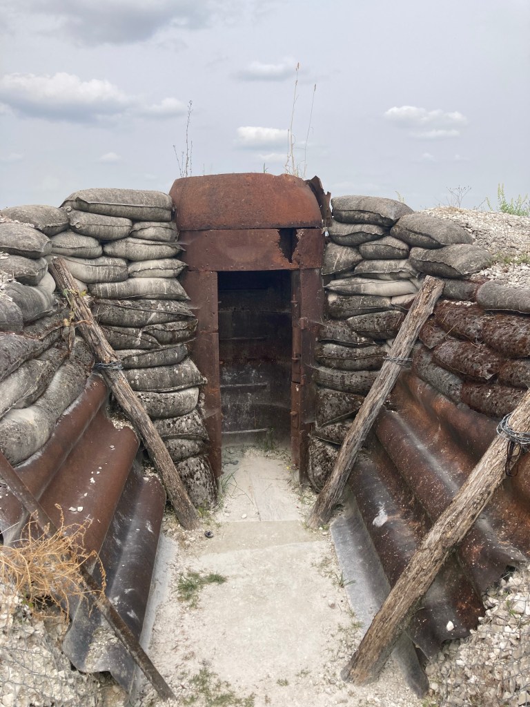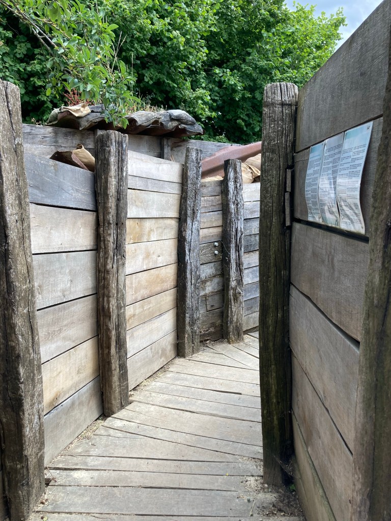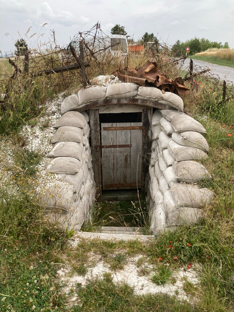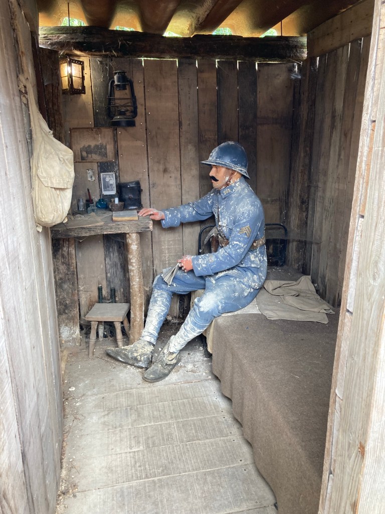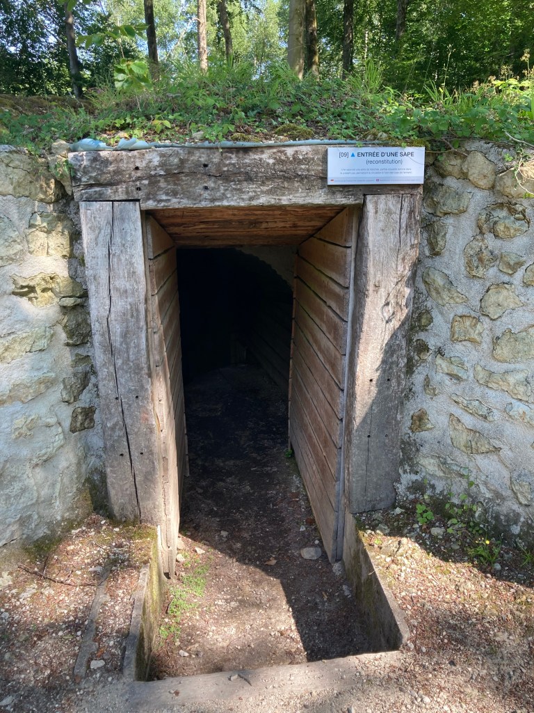 Ensuite, nous avons visité la tranchée de Chattancourt. Dans un village quasi détruit en 1917 mais rebâti depuis, une association a reconstitué sur une centaine de mètres des tranchées. Une immersion intéressante dans la vie des tranchées.