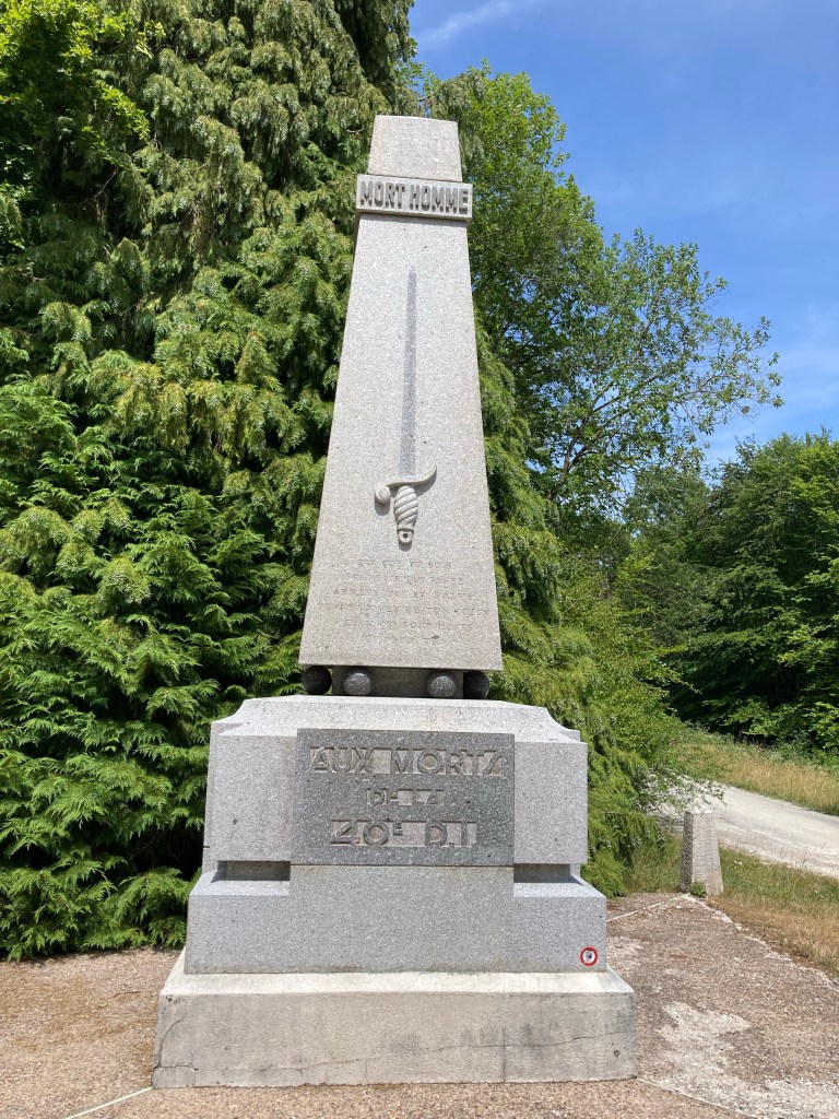 Nous avons repris la route direction la côte 304 : au cœur d’une forêt, un monument en forme d’obélisque rappelle le sacrifice des soldats français. De mars à avril 1916, un déluge de feu s’abat sur les lignes françaises. 120 coups d’obus à la minute.