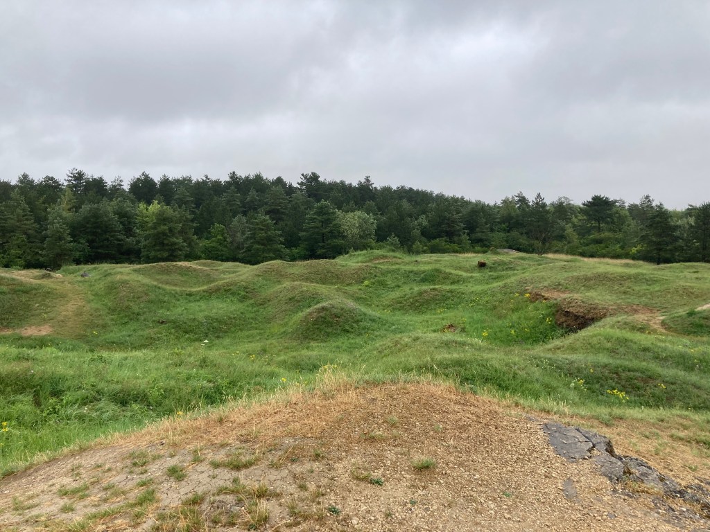Ensuite, nous nous sommes rendus à la butte Vauquois. La butte présente de nombreux cratères. Dessous il y a un énorme réseau de galeries souterraines où les soldats se sont battus à coups d’explosifs entre 1914 et 1918.