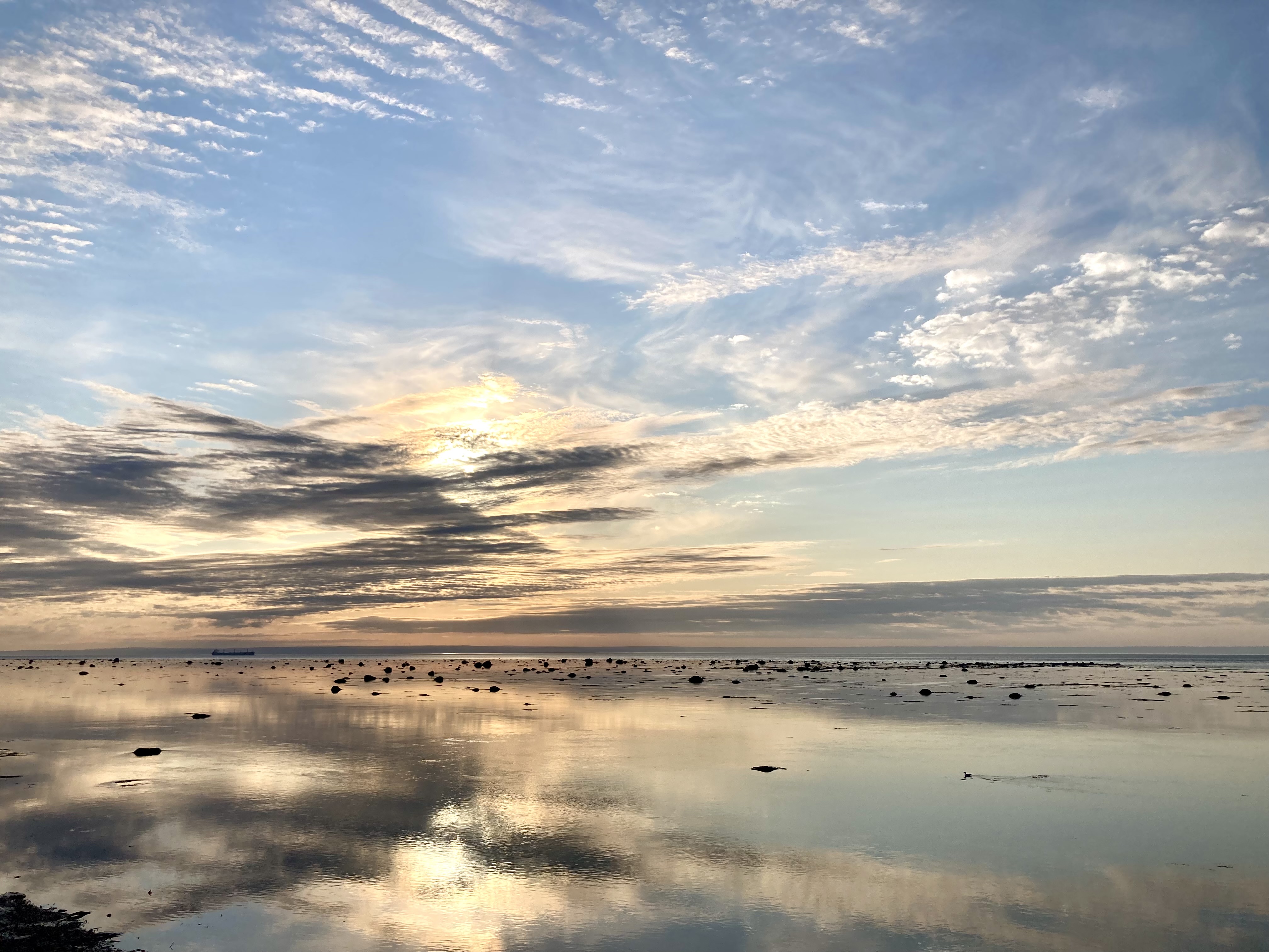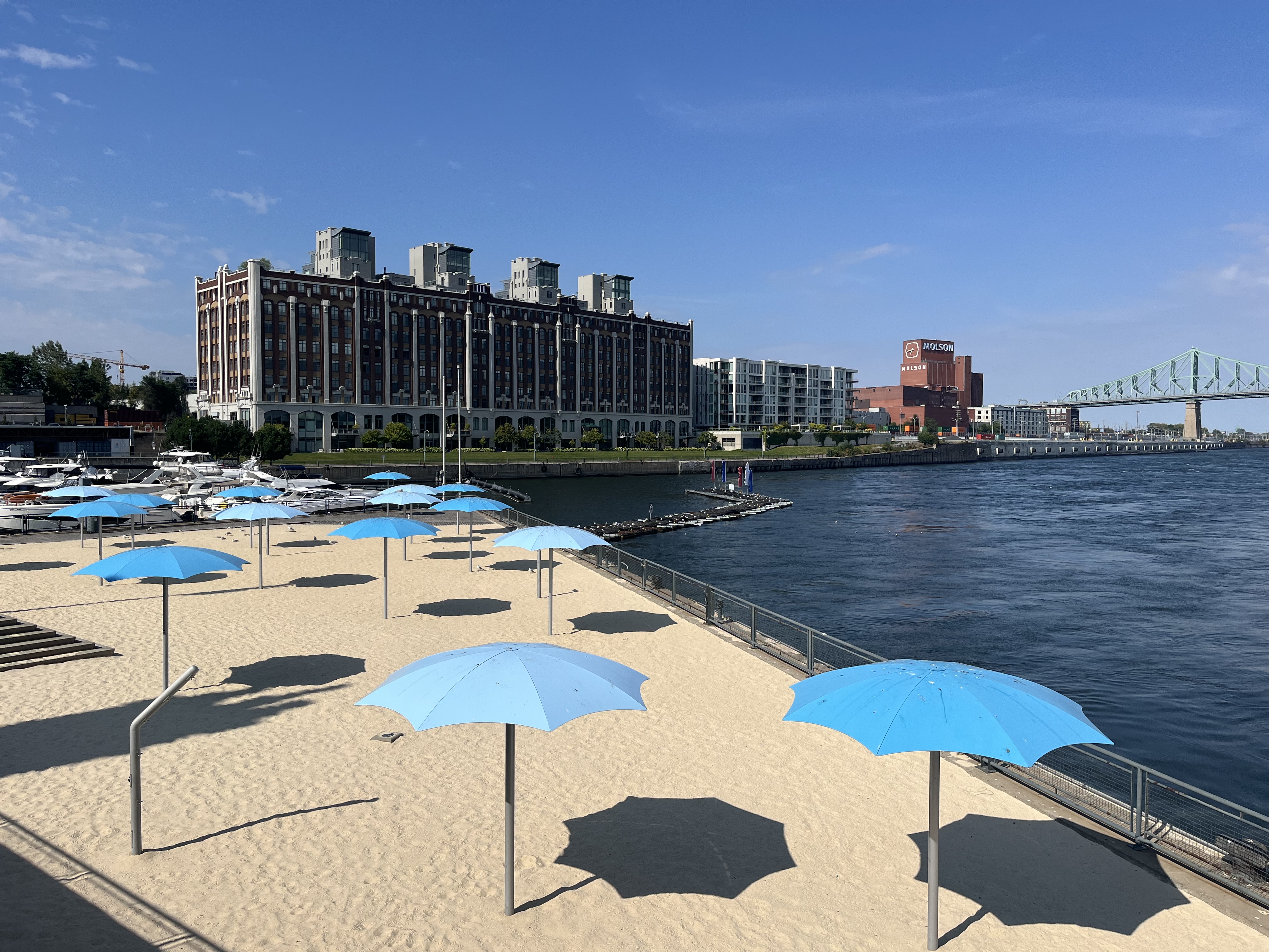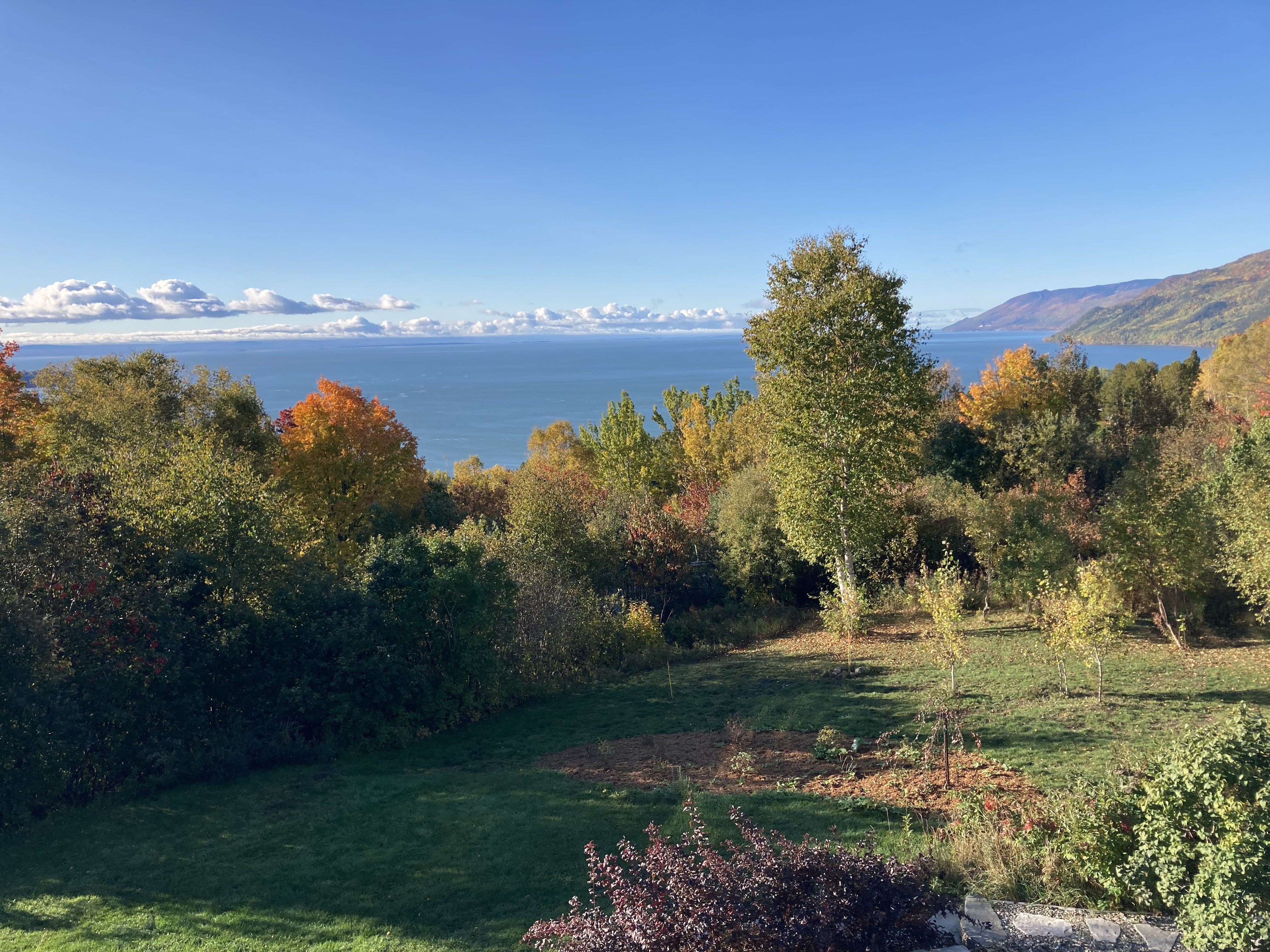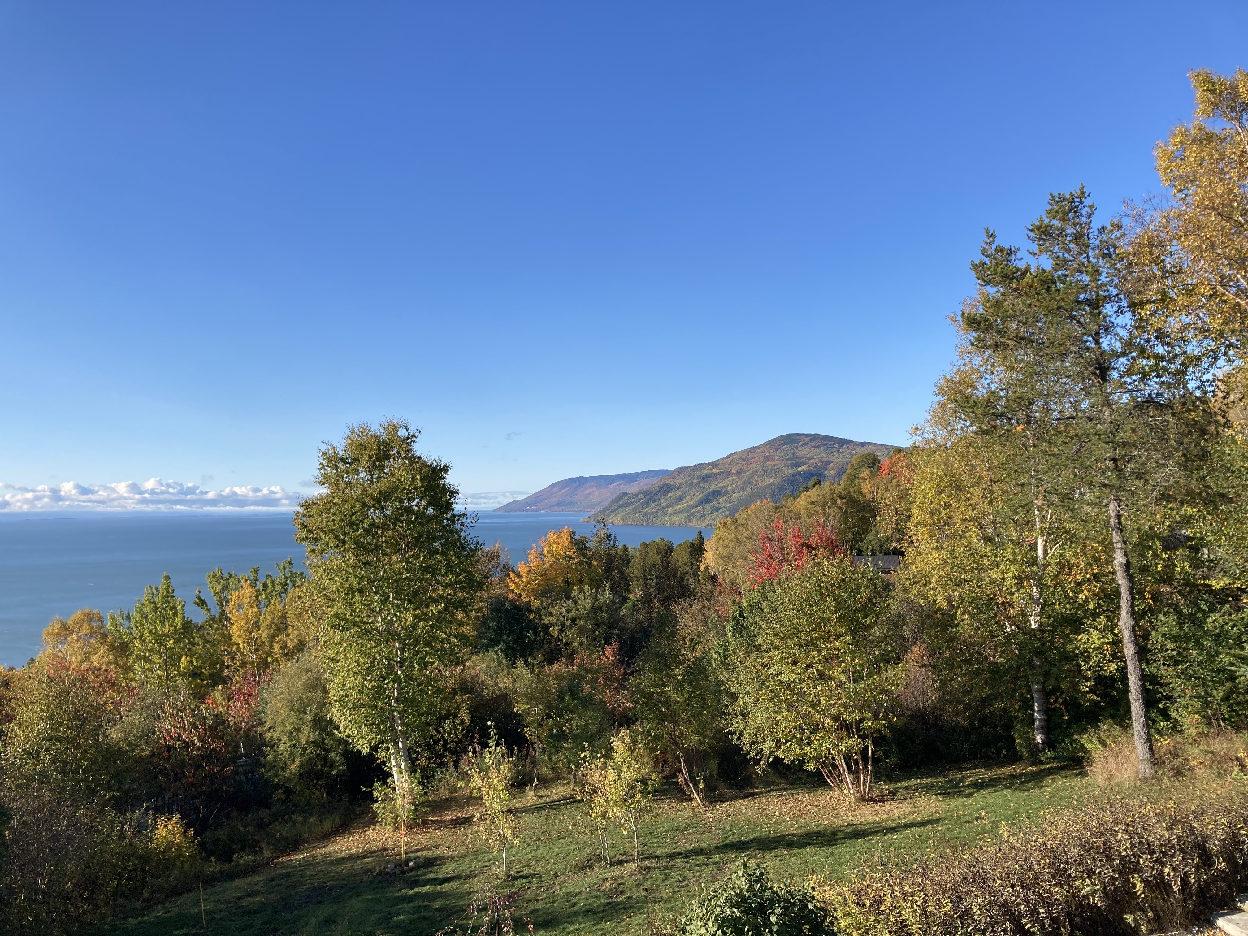Ce matin, un beau ciel bleu nous attendait à notre levée. Nous avons pu profiter lors de notre petit déjeuner d’une très jolie vue sur le Saint Laurent.