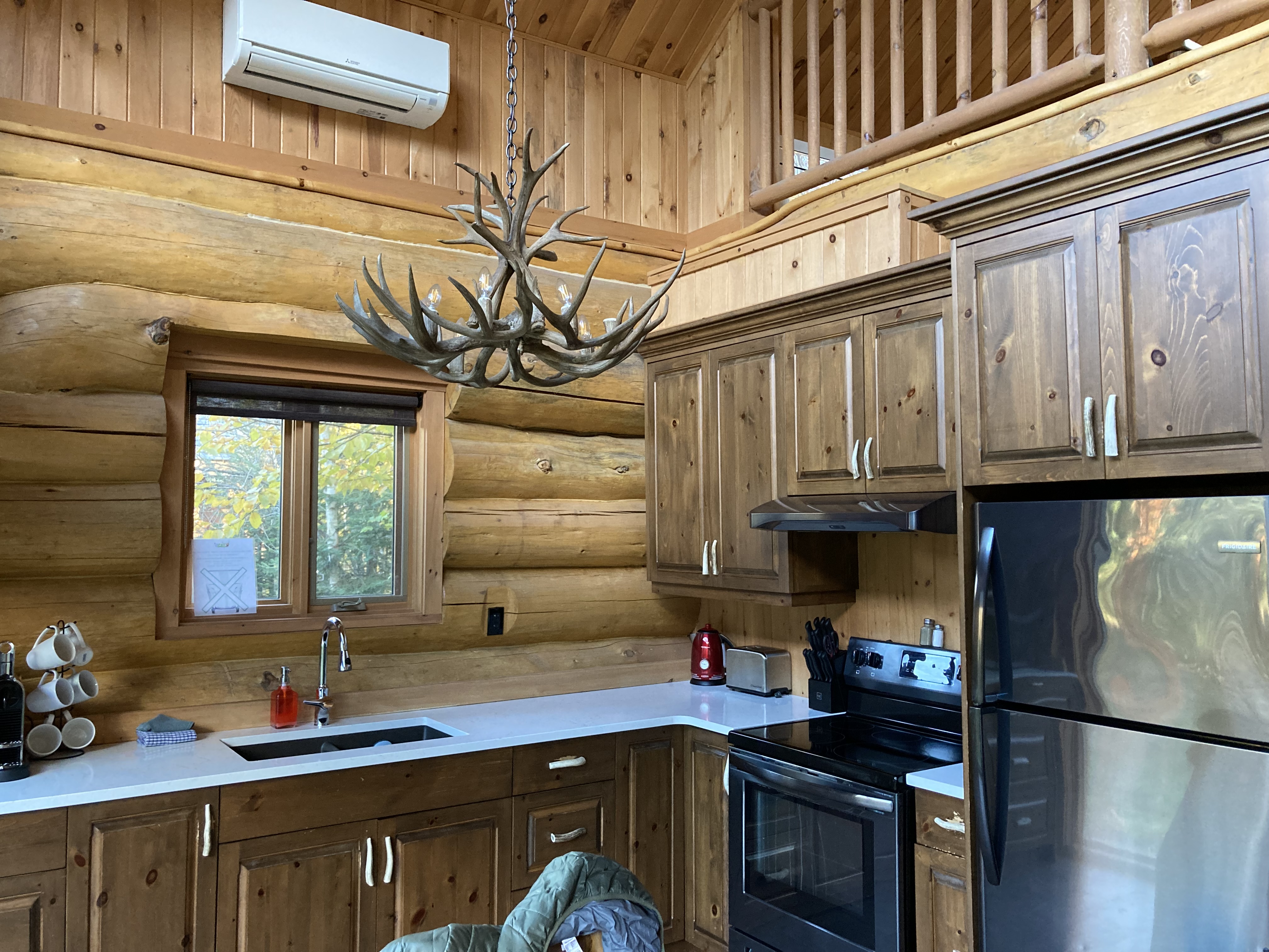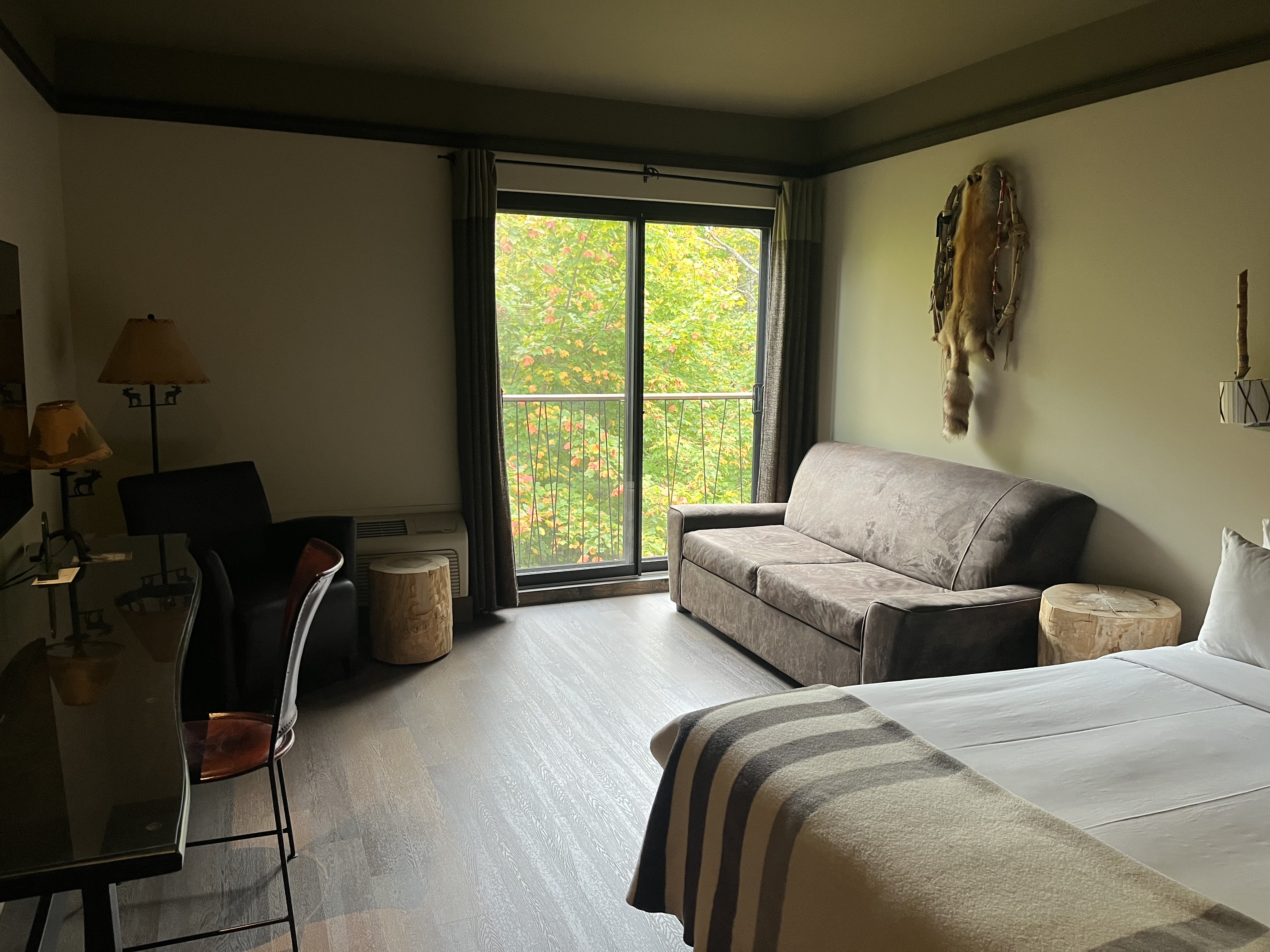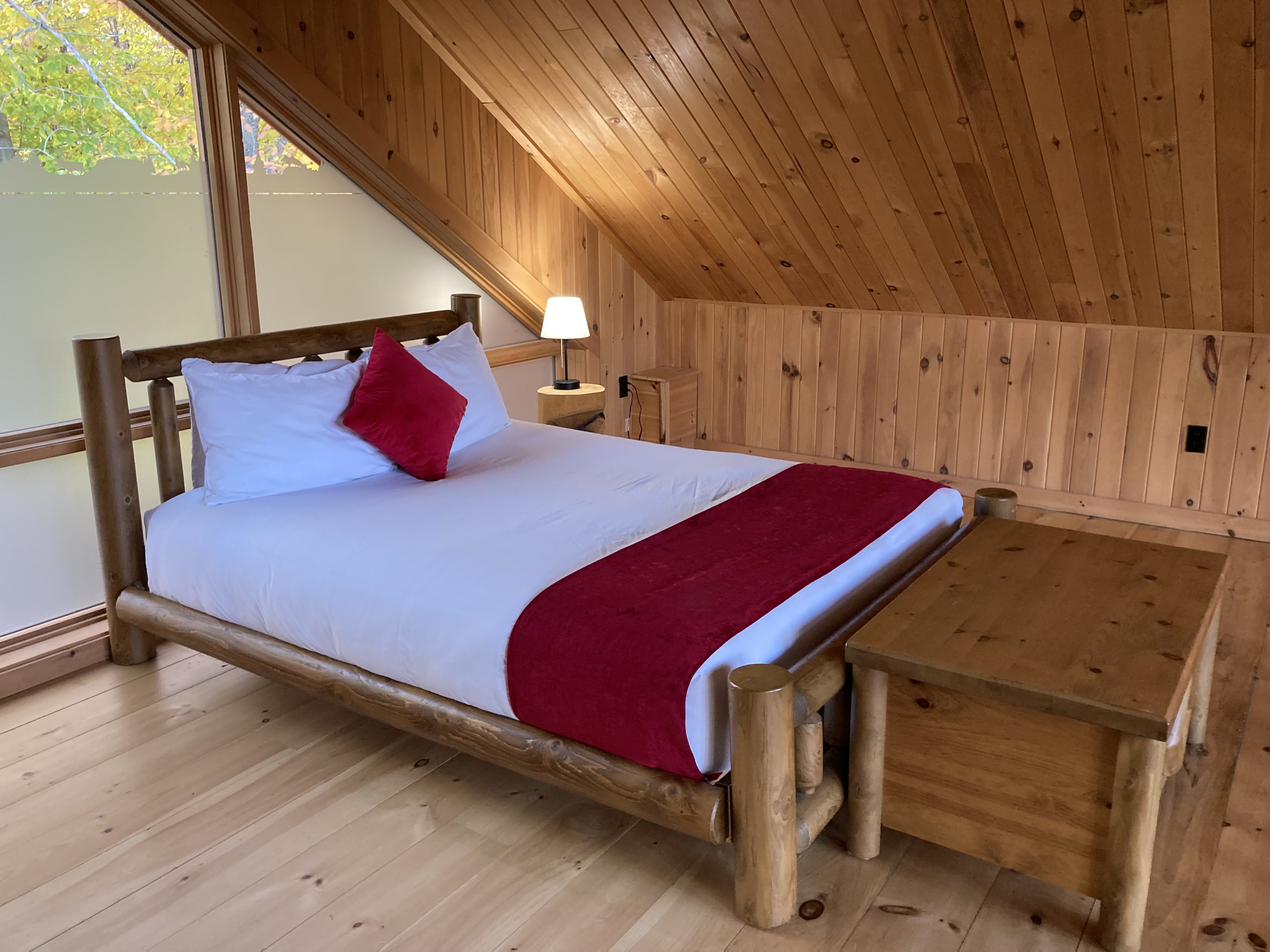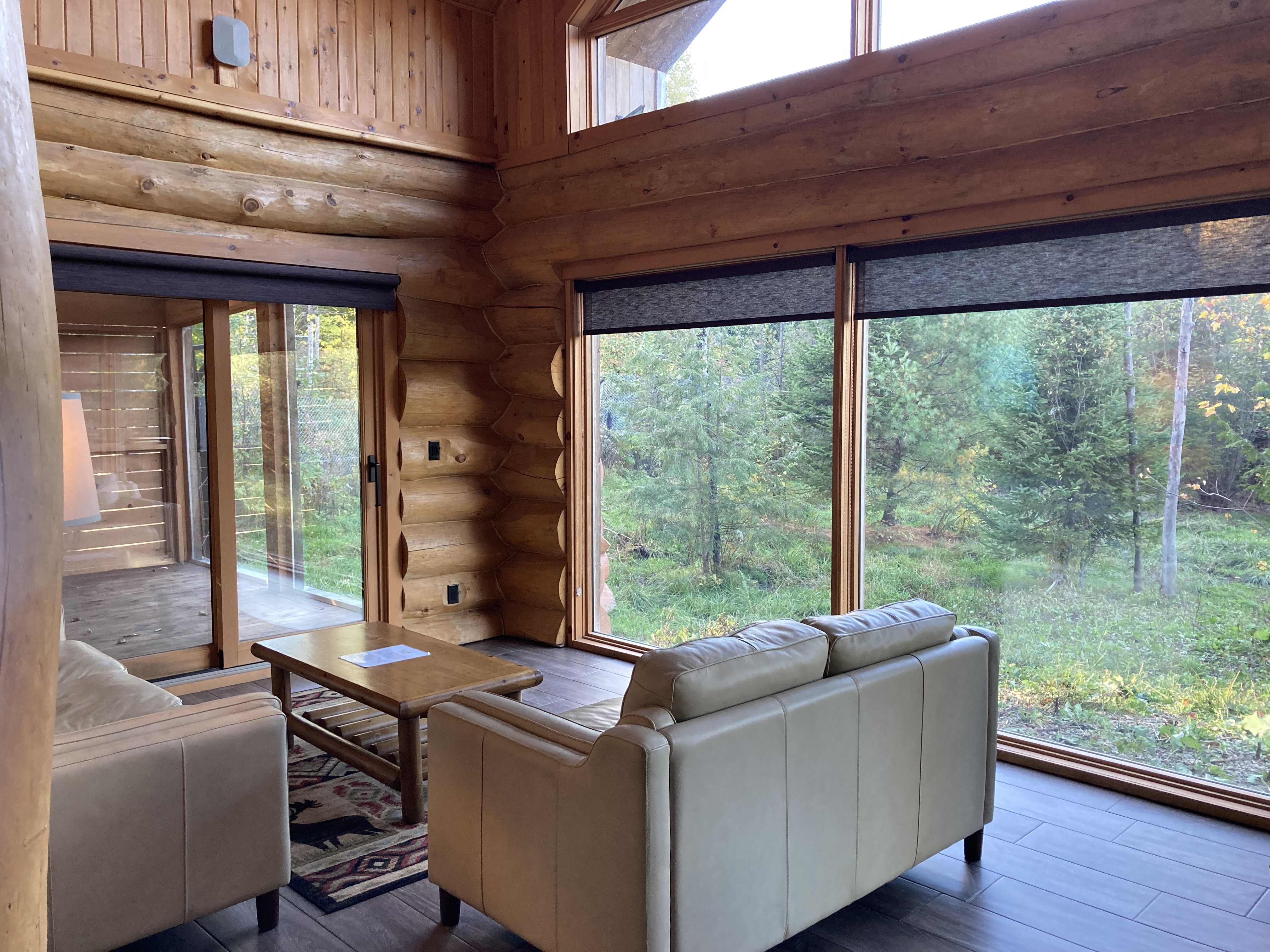 Nous avons dormi dans le Lodge des Loups, un chalet avec une grande baie vitrée donnant sur le territoire d’une meute de loups.
