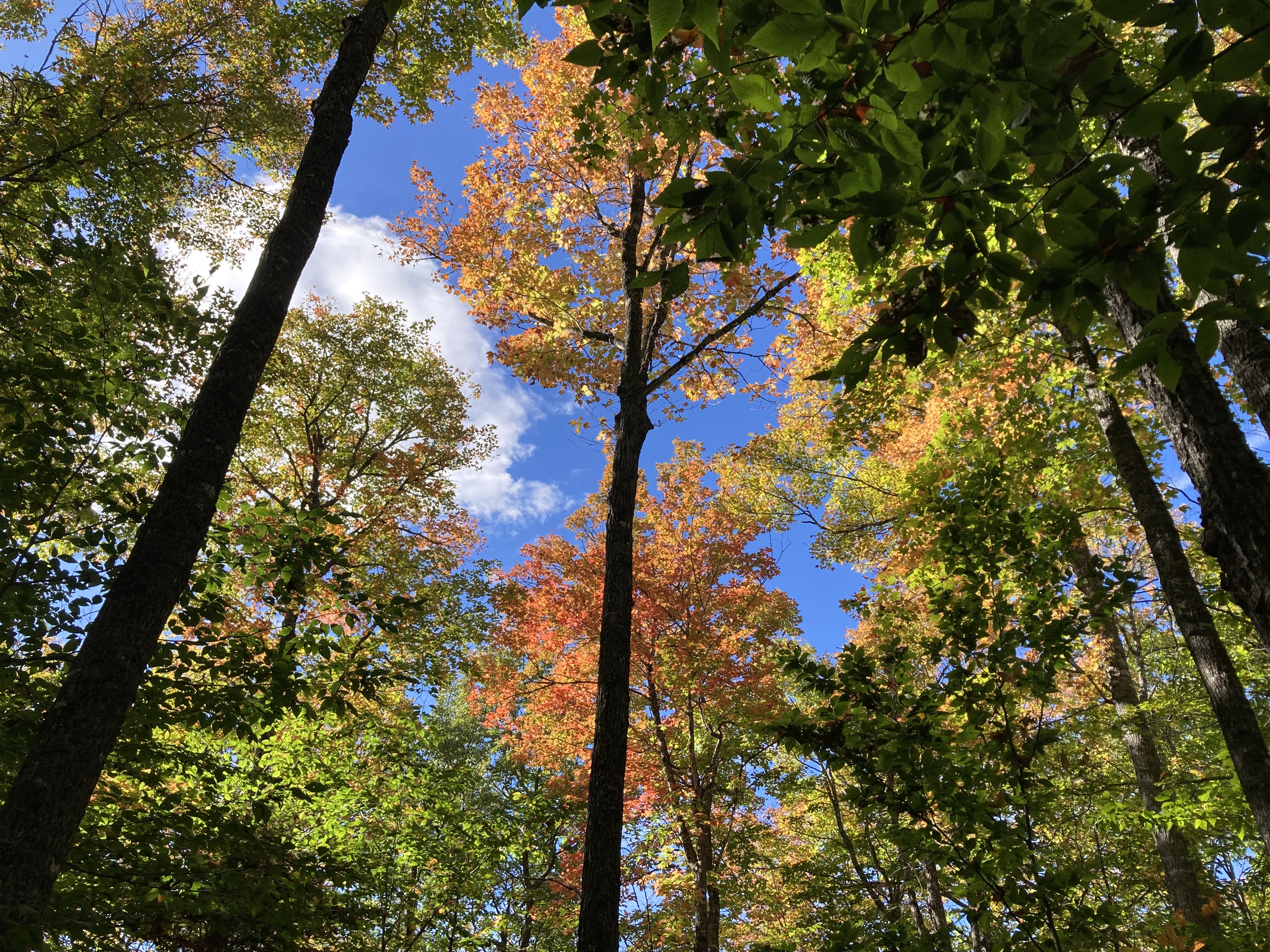 Sur les conseils de la guide à l’entrée du parc, nous avons choisi de faire la randonnée de la Montagne-de-Chert (nous avions hésité avec la Montagne-du-Fourneau). Nous nous sommes baladés sur une boucle de 5,2 km au travers d’une vieille érablière. Très jolie balade.