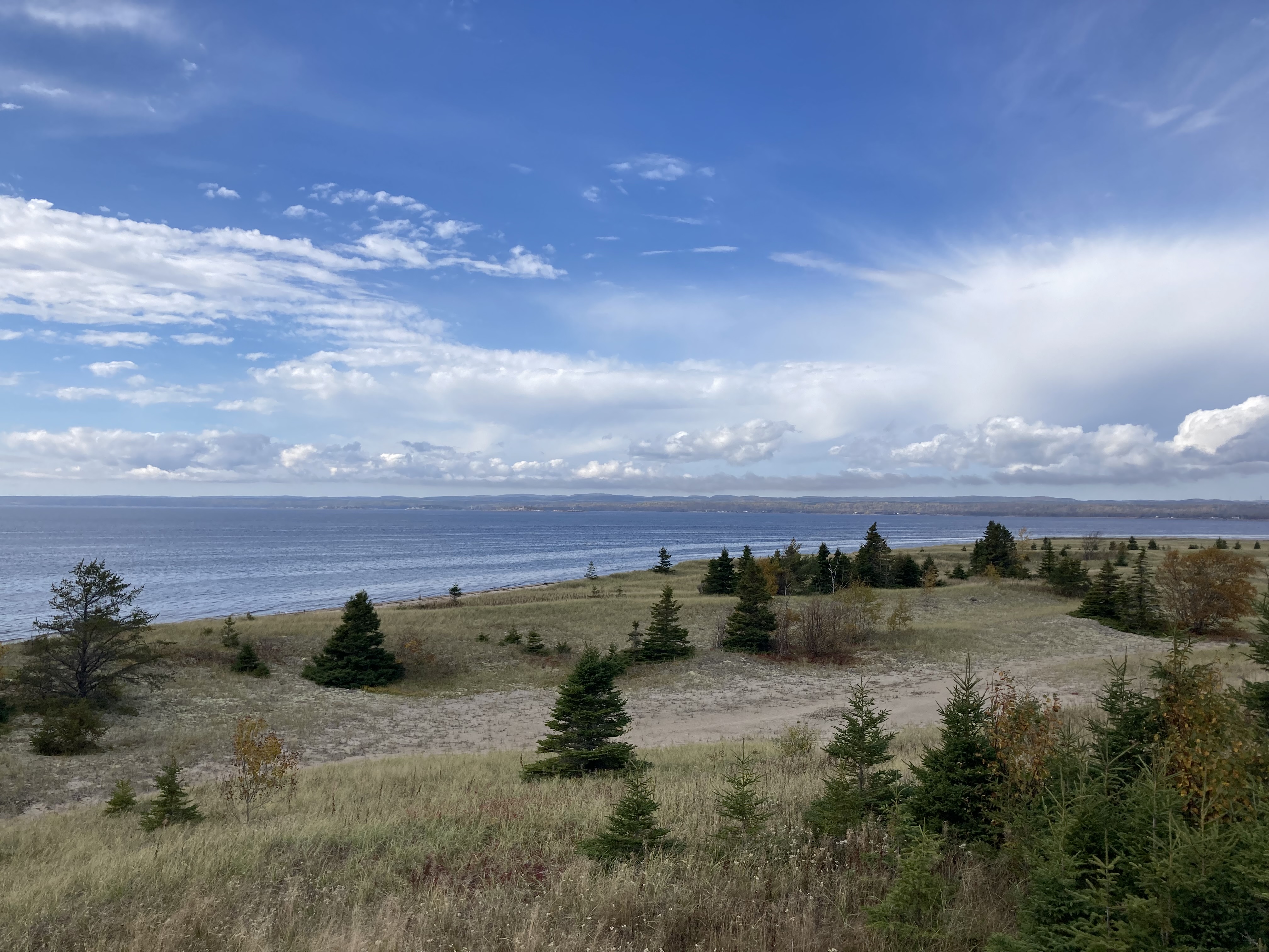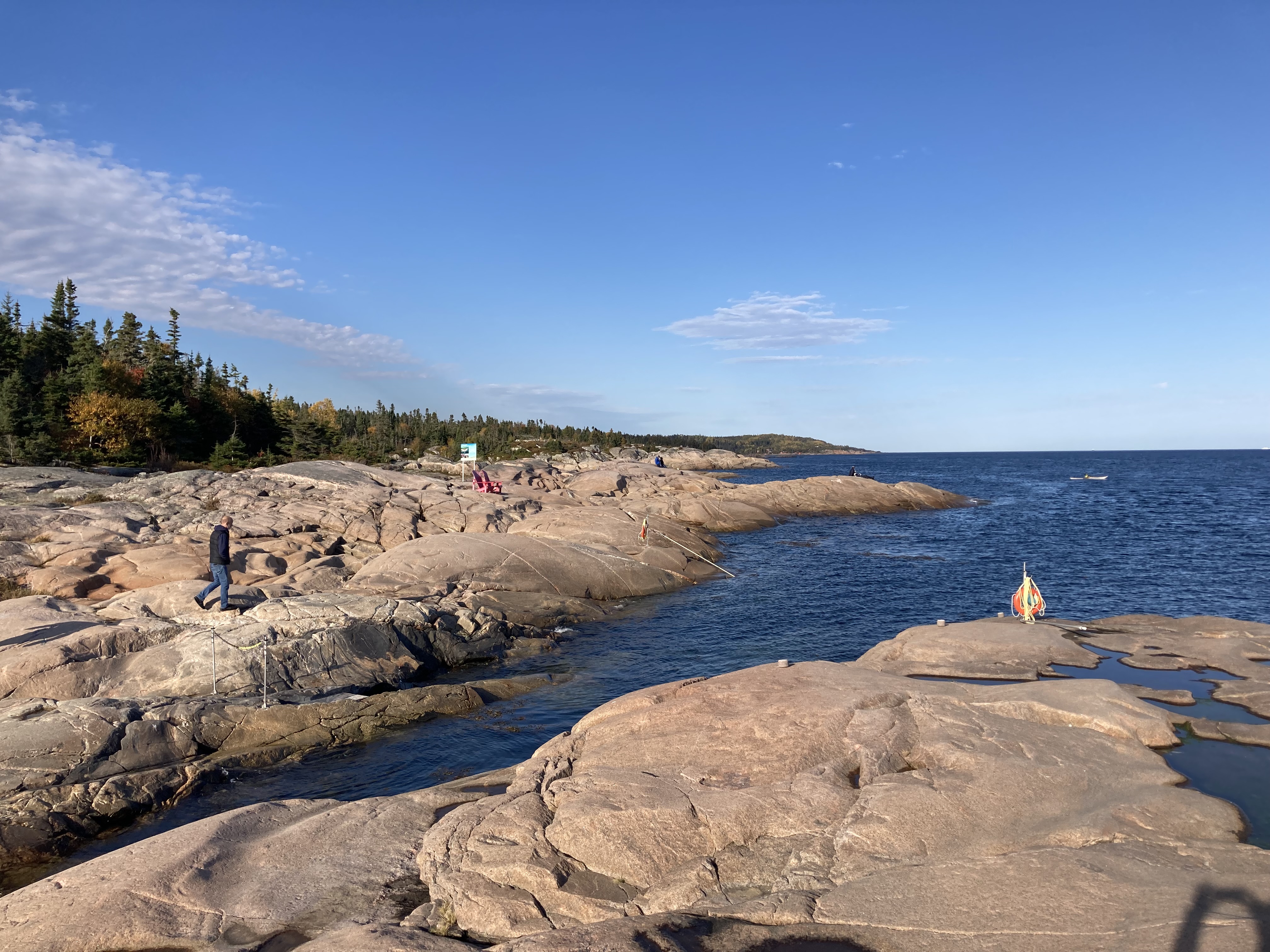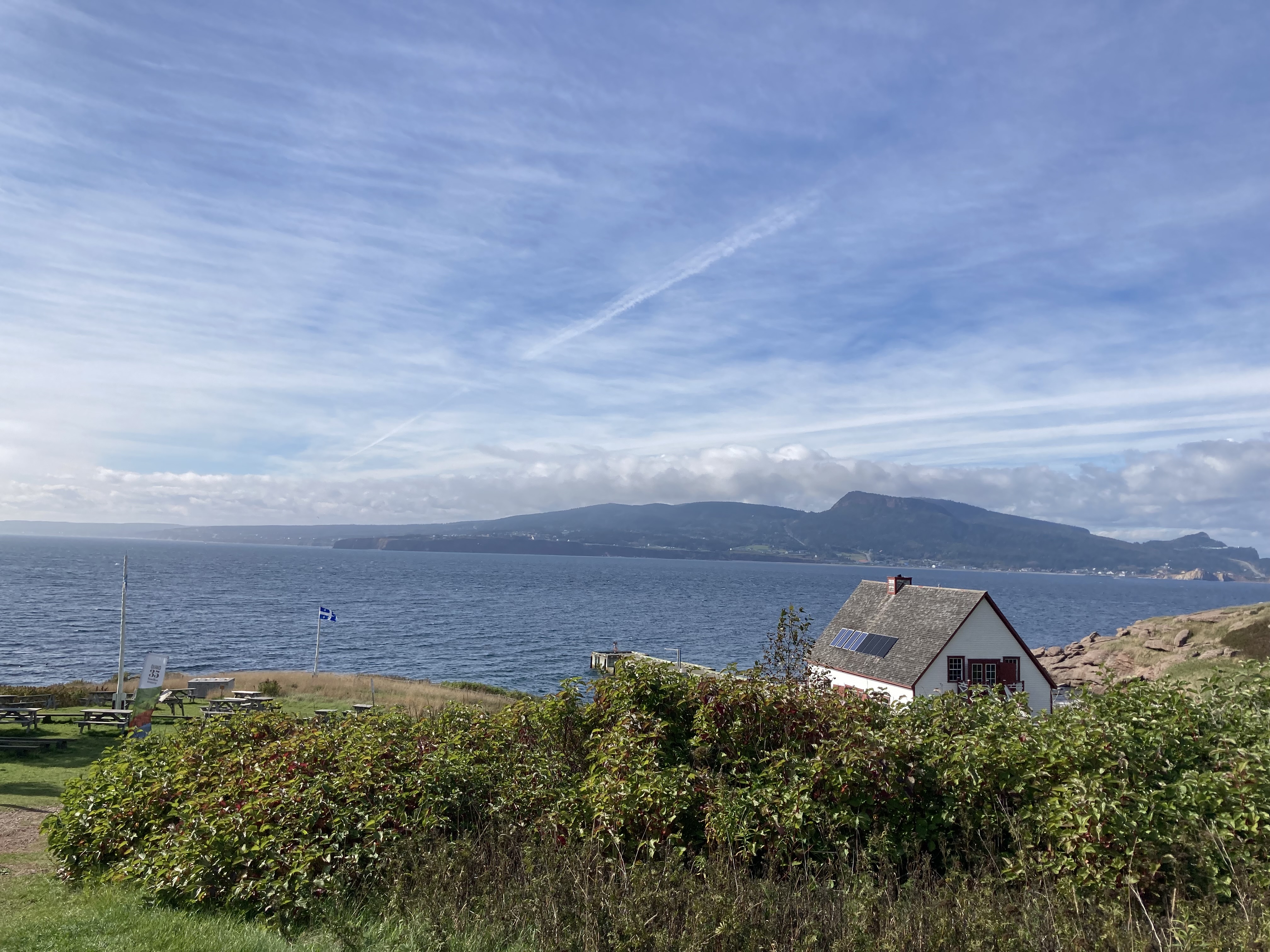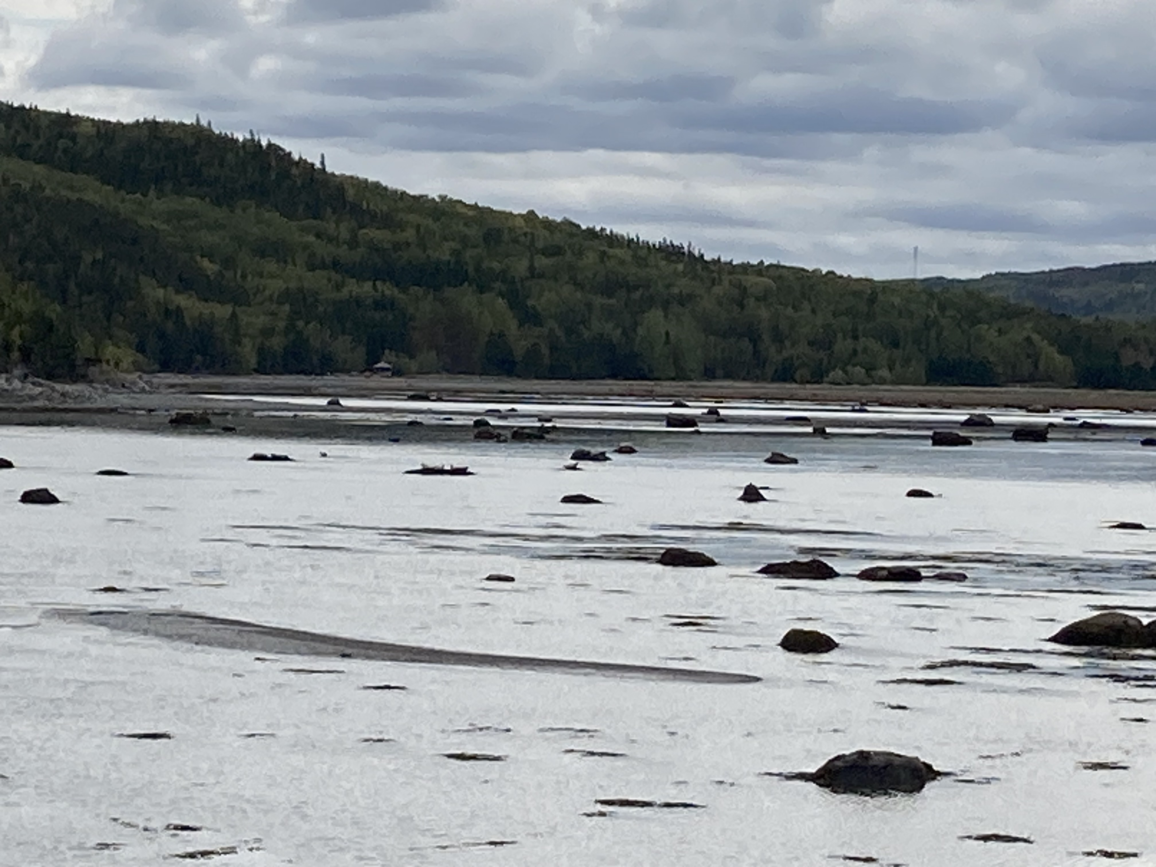 Premier arrêt à la Pointe aux Épinettes , zone d’observation des phoques. Ils n’étaient pas là ! On est tout de même monté au petit belvédère pour avoir une jolie vue.