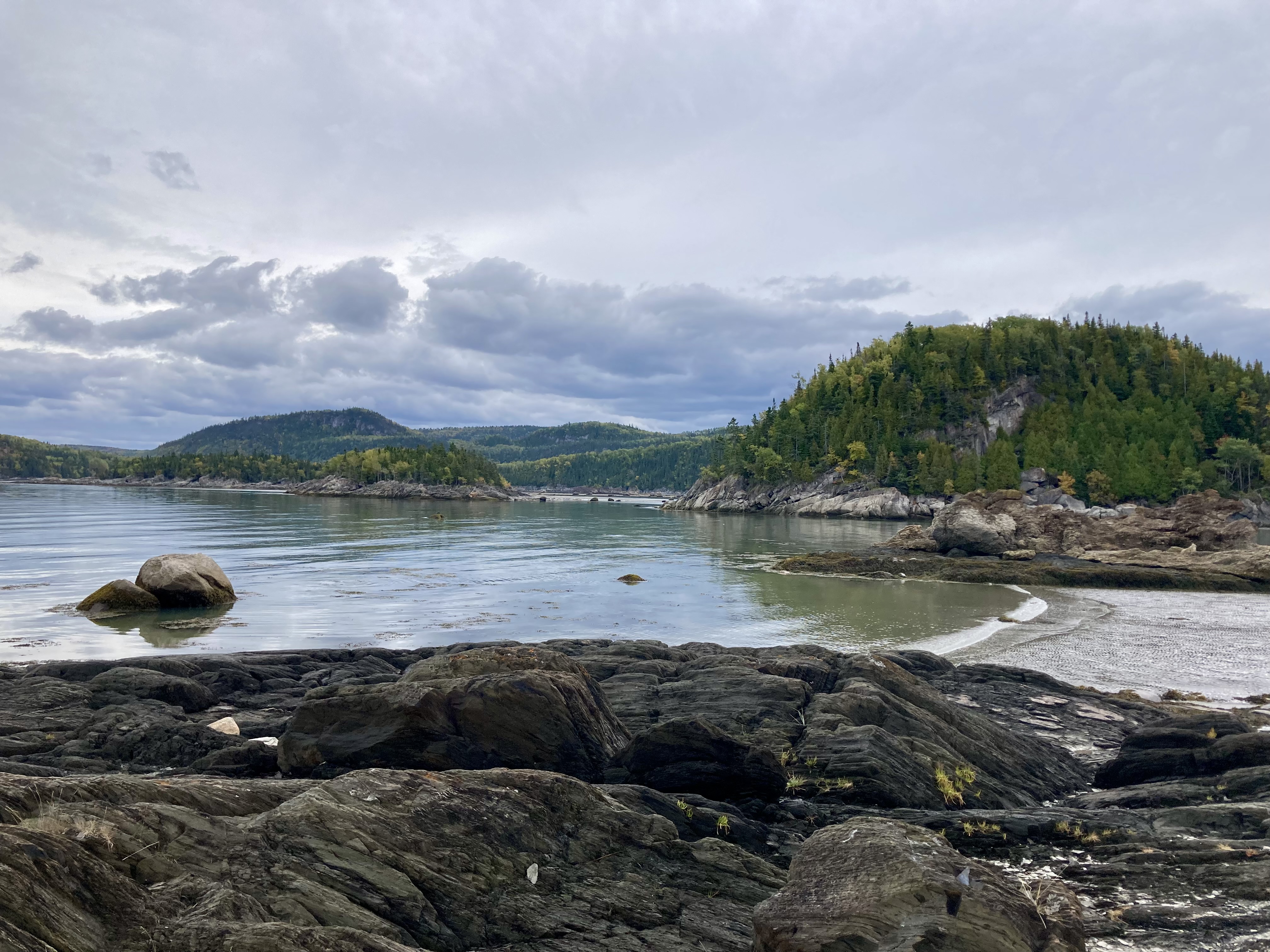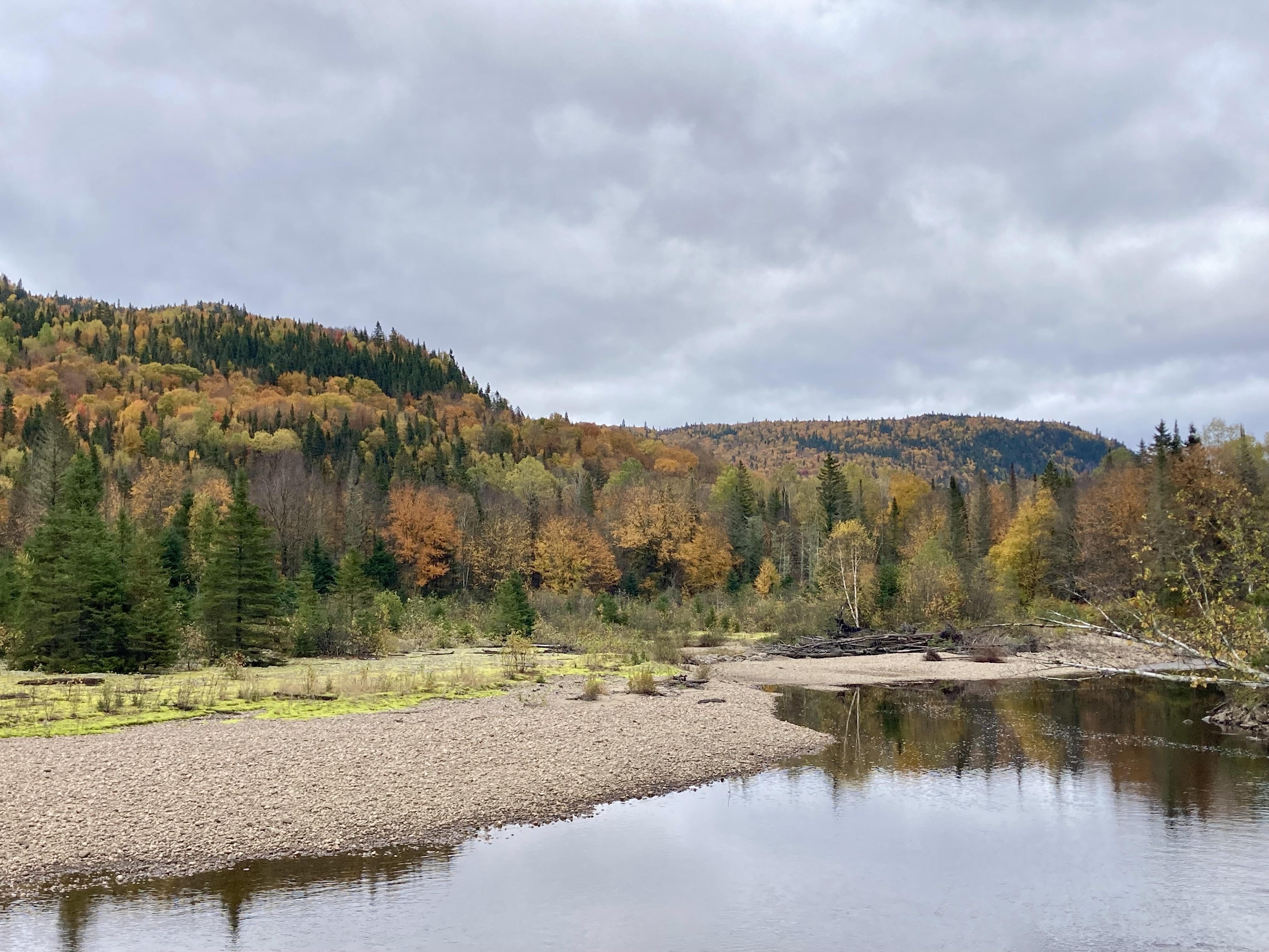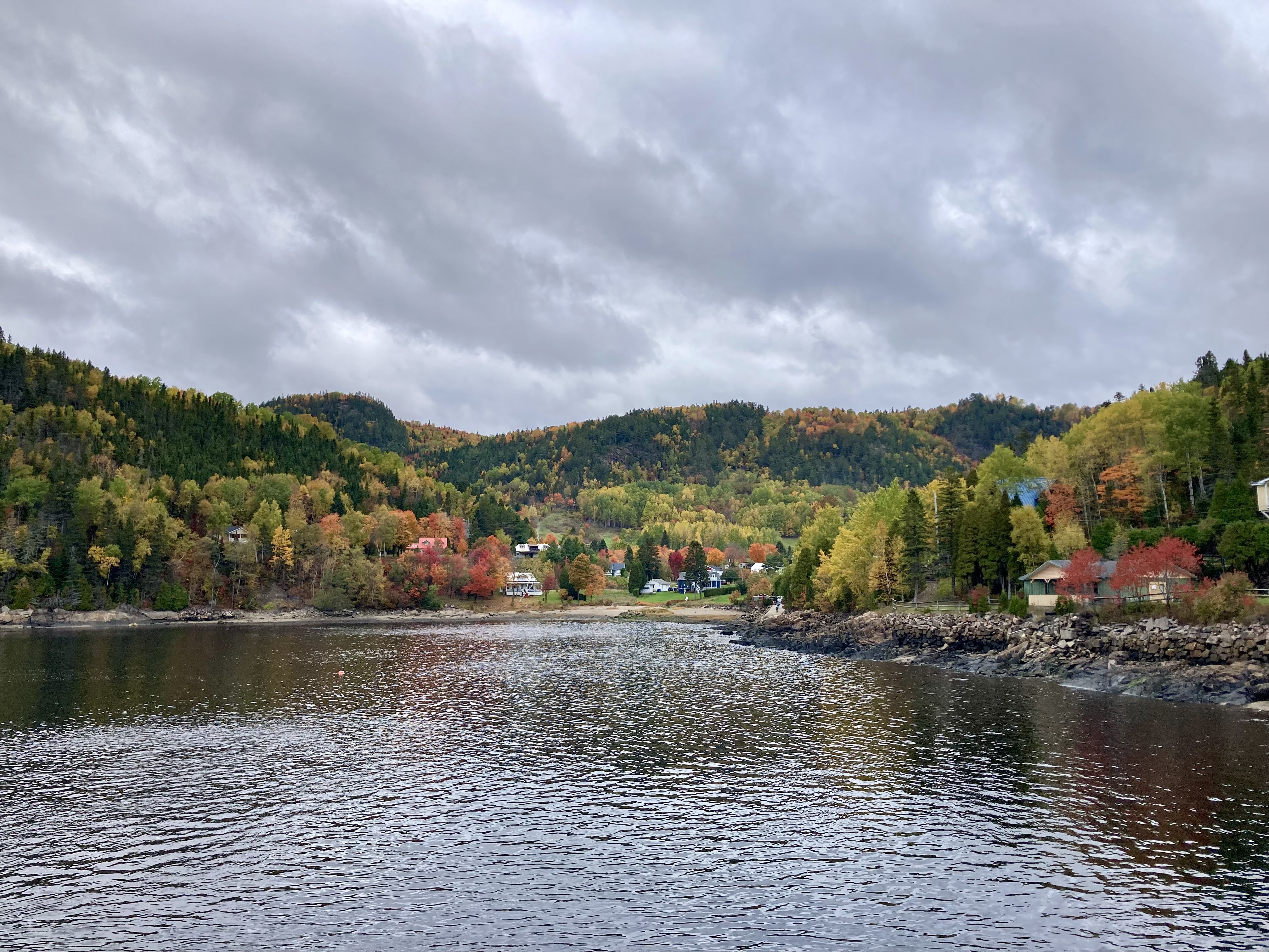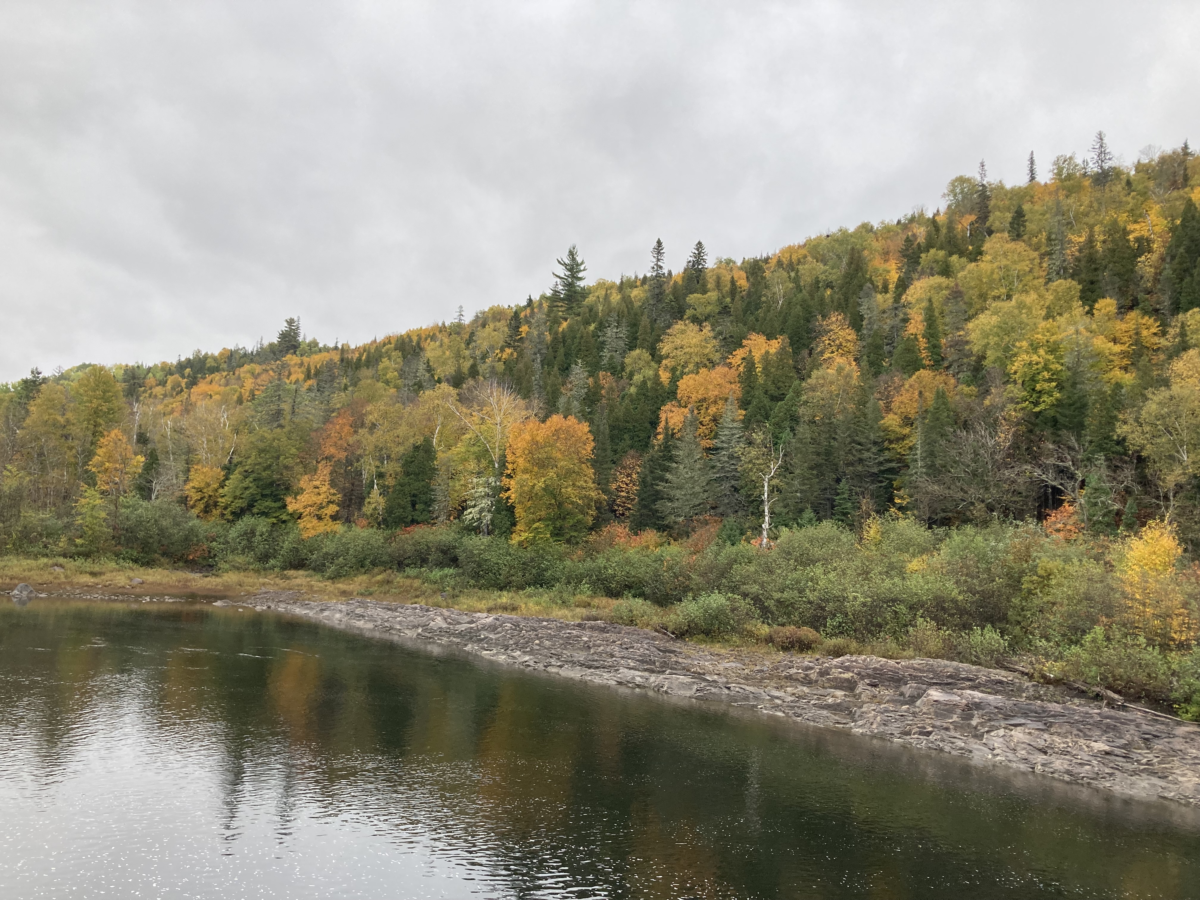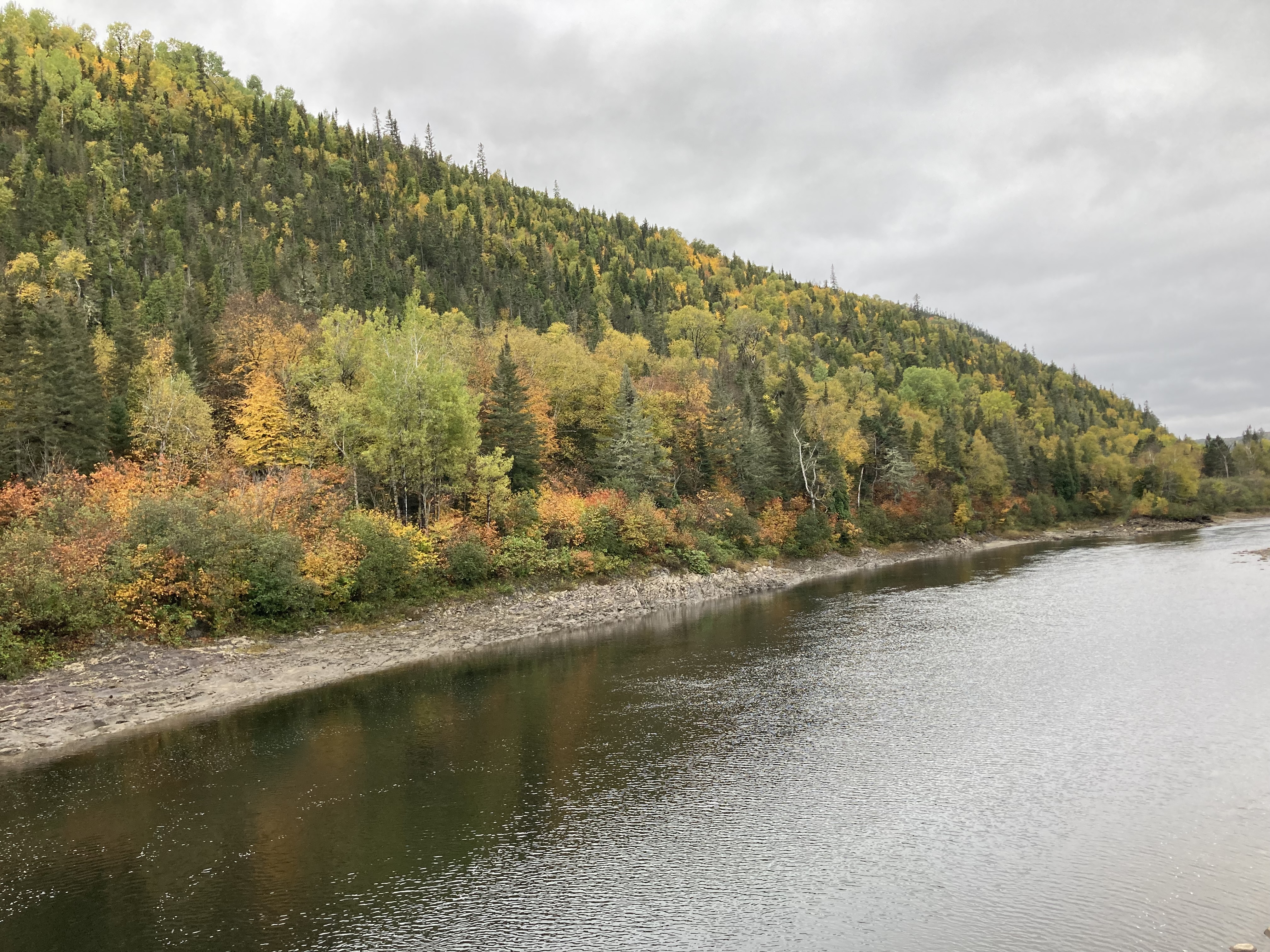Ensuite, nous avons fait la route jusqu’à Chicoutimi avec un arrêt à Sainte-Rose-du-Nord. Nous nous sommes arrêtés régulièrement sur la route car les paysages avec les lacs et les arbres de toutes les couleurs étaient magnifiques malgré le temps couvert.