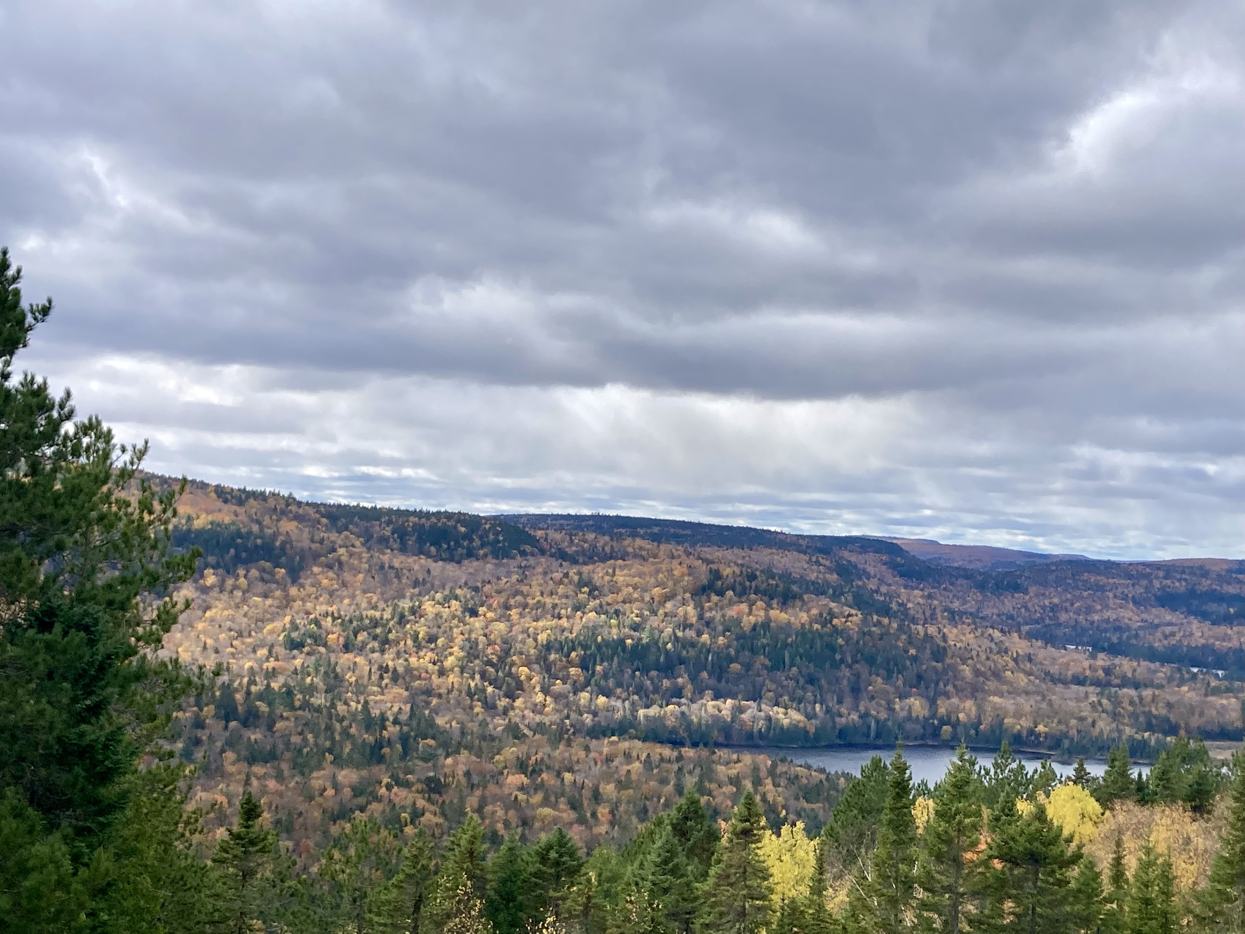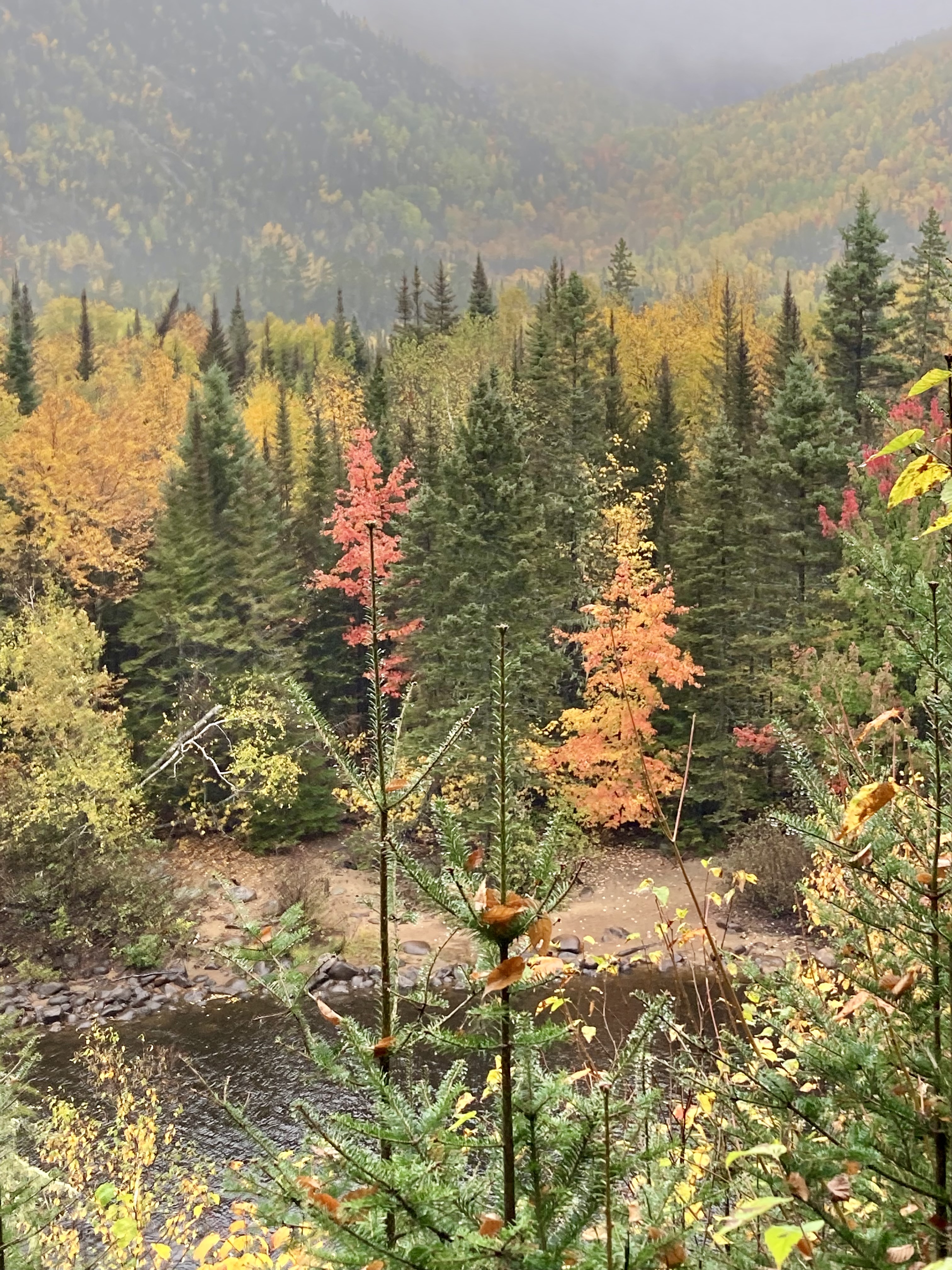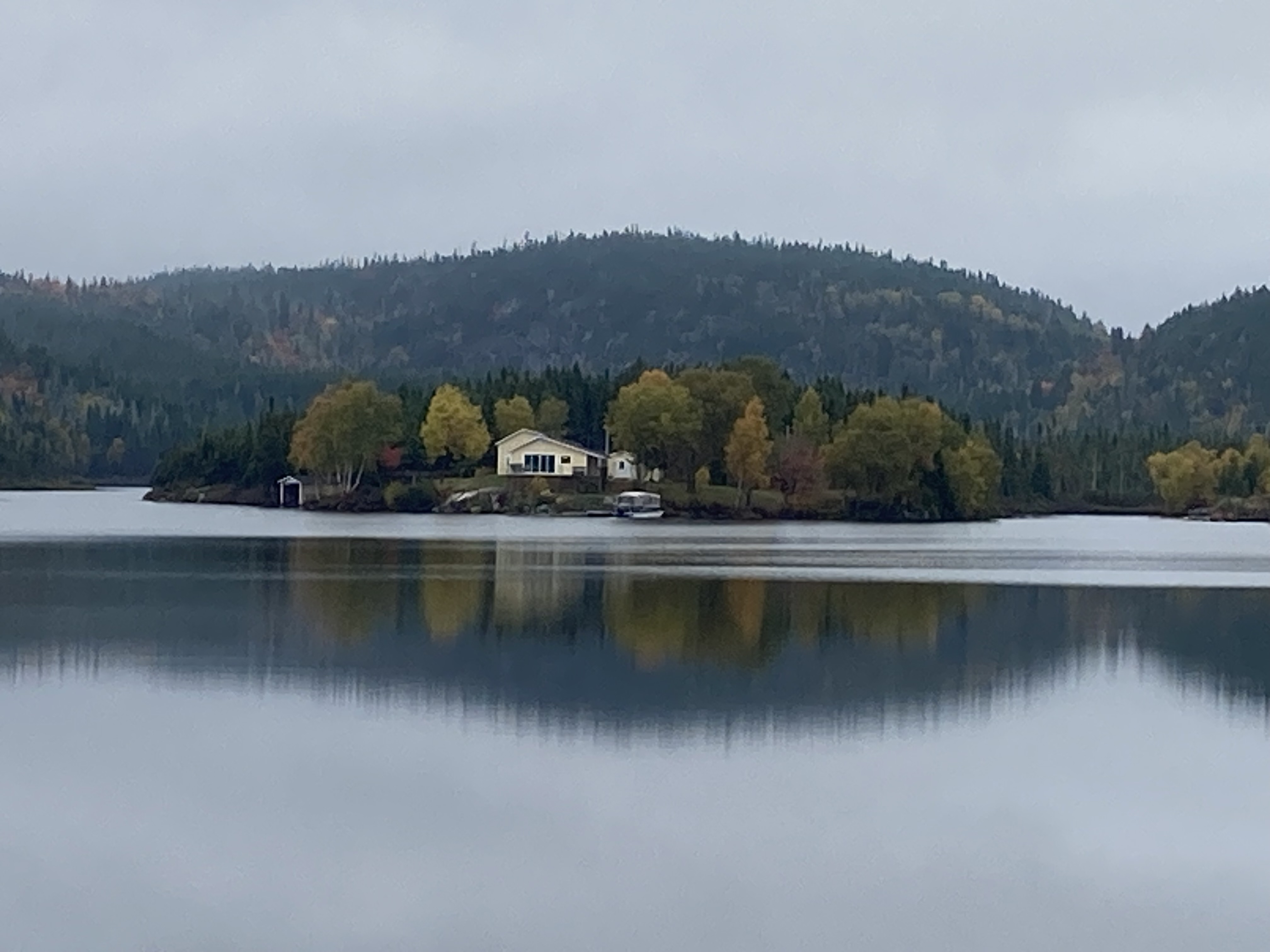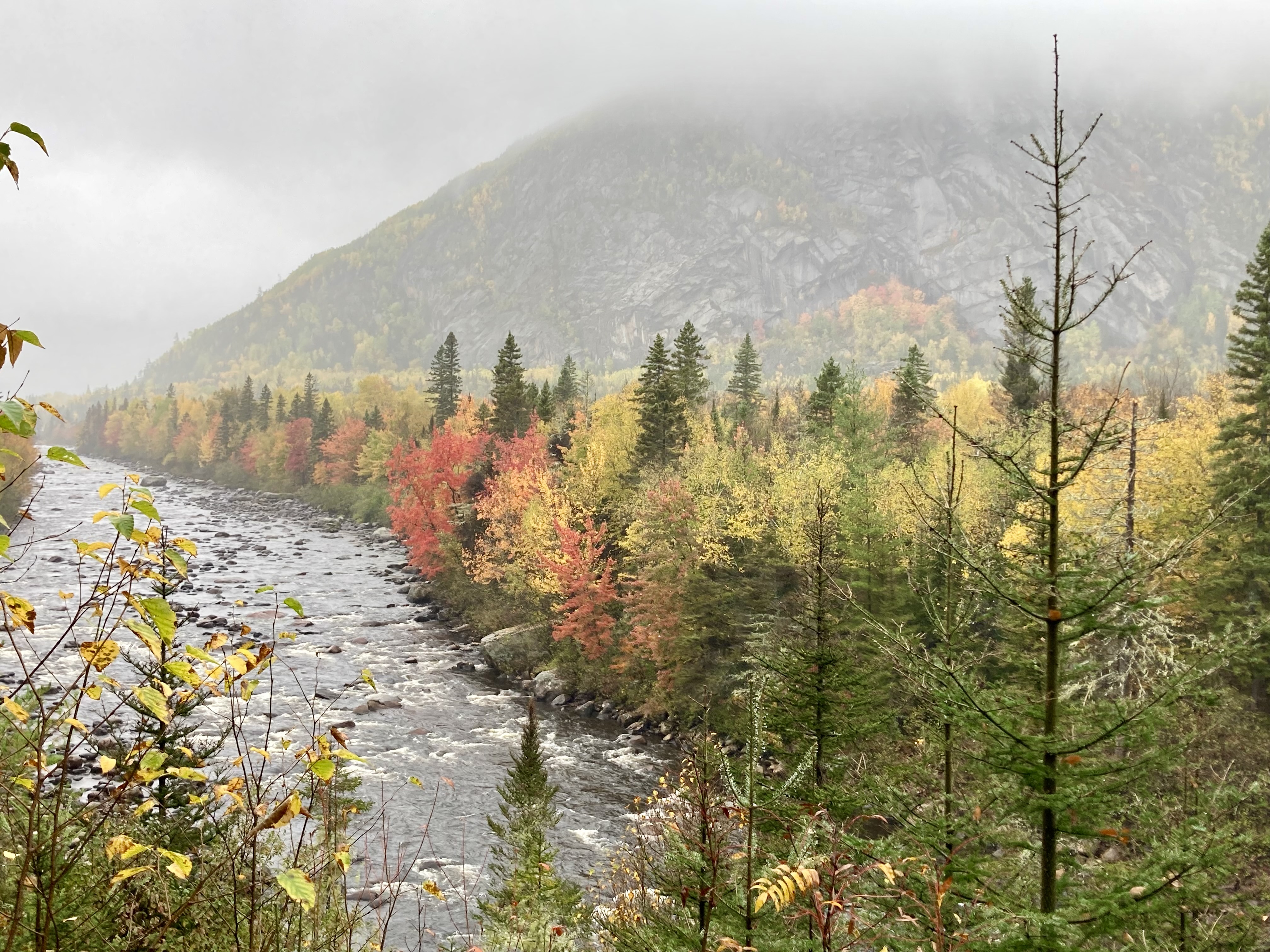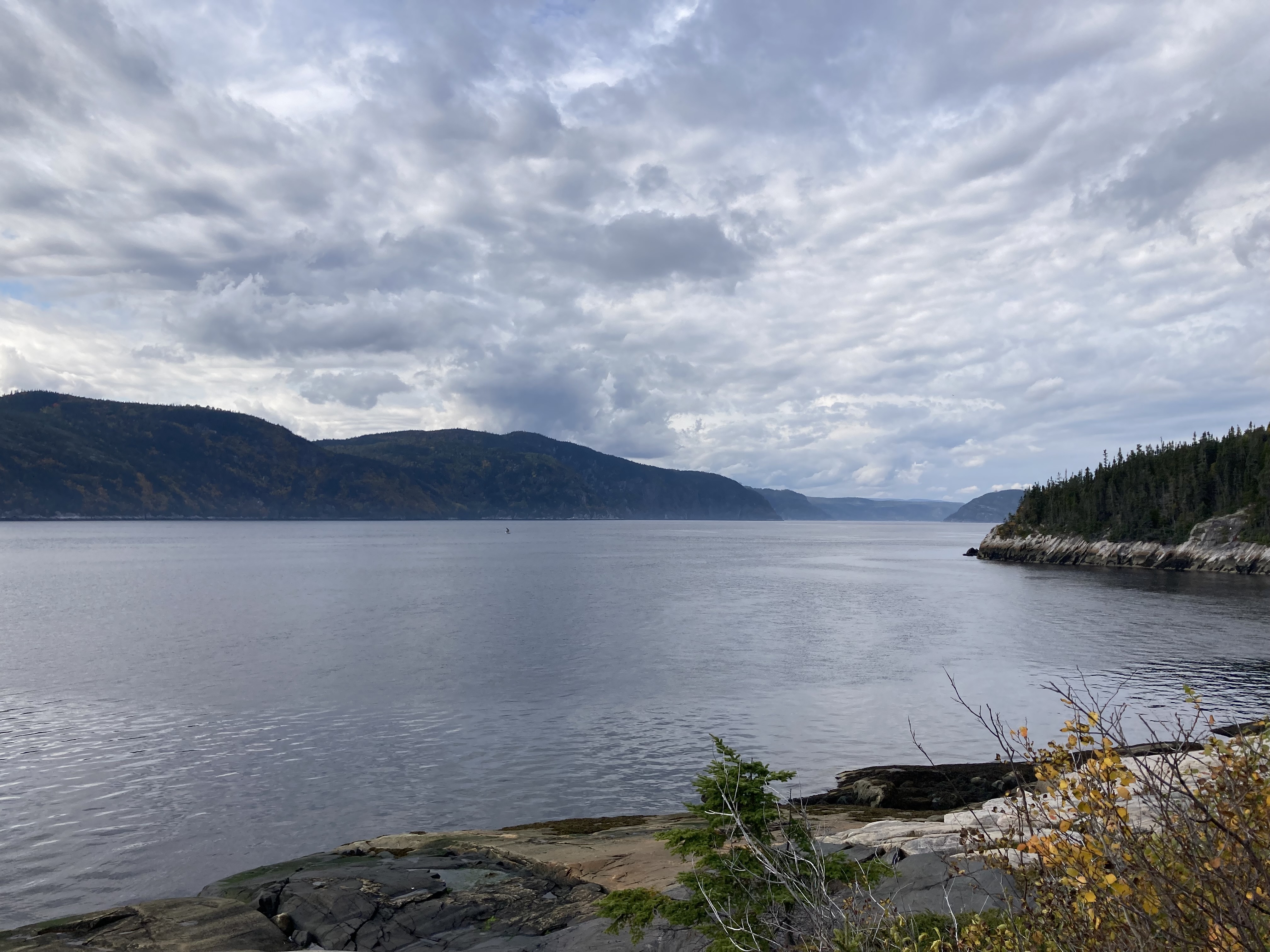 Ensuite, nous avons fait la route jusqu’à Chicoutimi avec un arrêt à Sainte-Rose-du-Nord. Nous nous sommes arrêtés régulièrement sur la route car les paysages avec les lacs et les arbres de toutes les couleurs étaient magnifiques malgré le temps couvert.